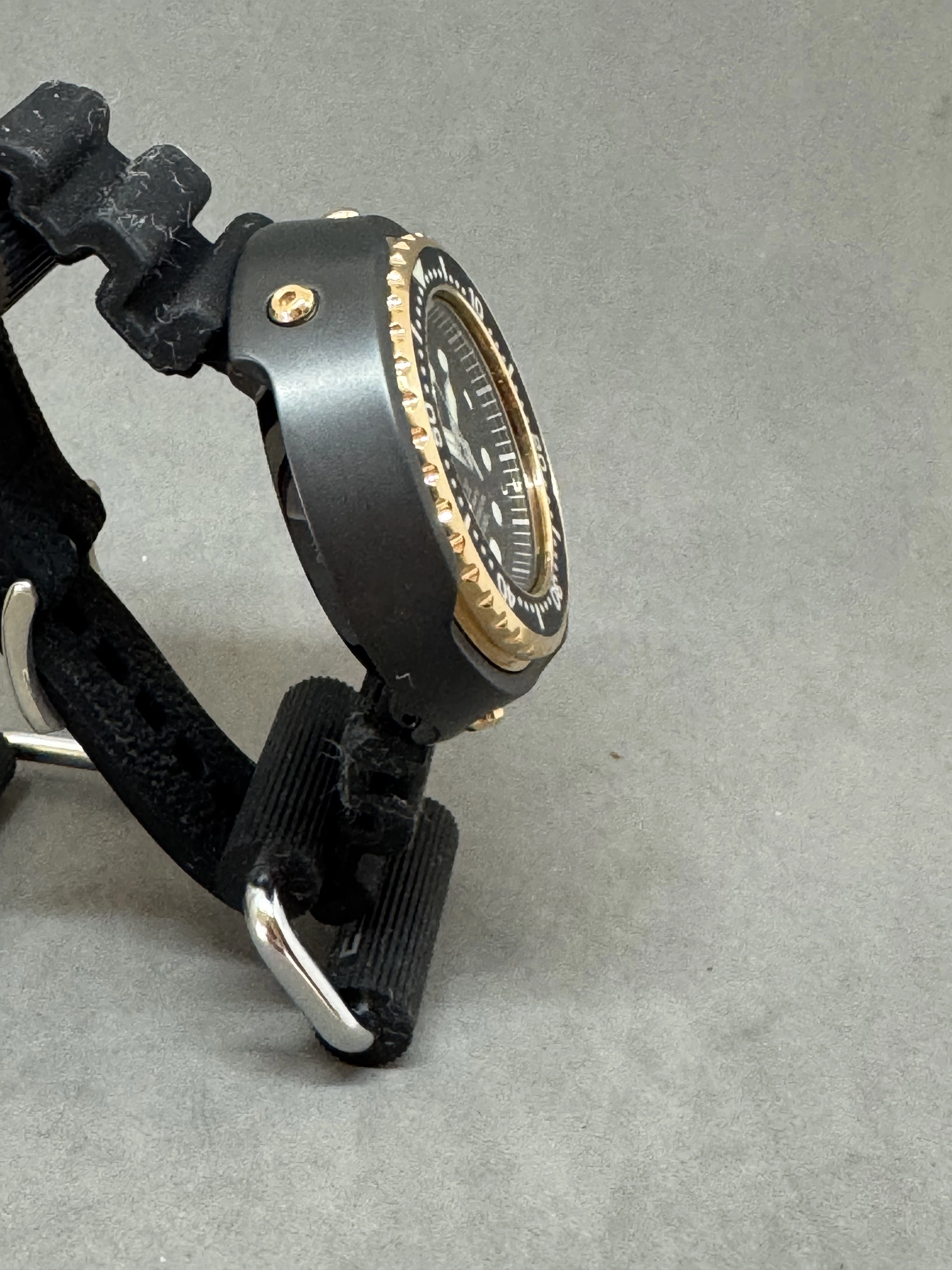 Case: Monocoque titanium with bolted on ceramic shroud, unidirectional bezel.