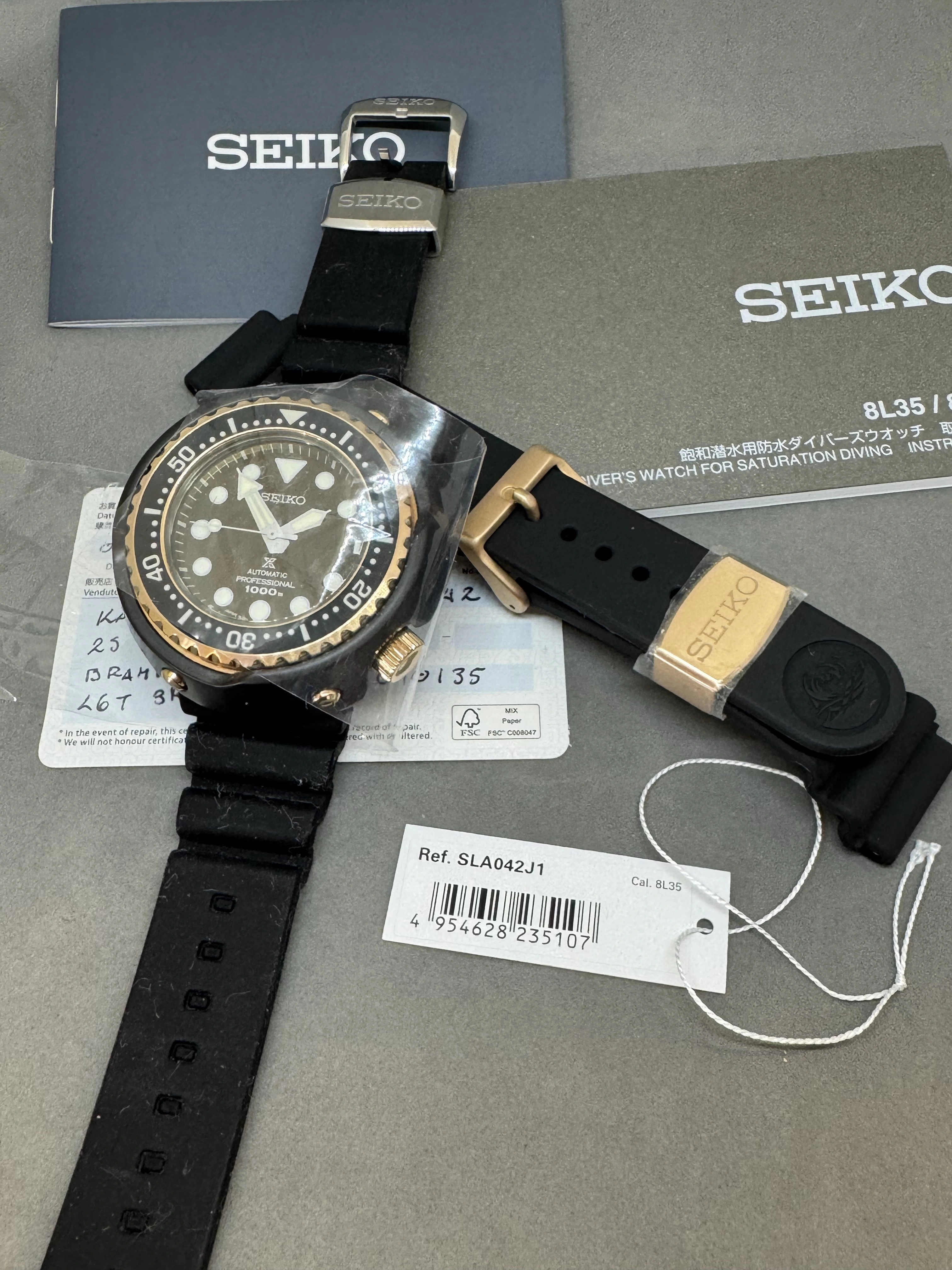Picked this up at the beginning of the summer and just have not been able to wear it for more than a couple of minutes. No open water near me and certainly not 1000m depth rating needed. Pics are below and the watch is in excellent condition but not mint. Asking $3000 CAD, or equivalent, (today that is about 1600 gbp, 2200 usd, 3200 aid) shipped at cost almost anywhere fully insured. Buyer will be responsible for duties or taxes to import. Sending to USA is a PITA as noted in several threads on this forum, but it is possible…..