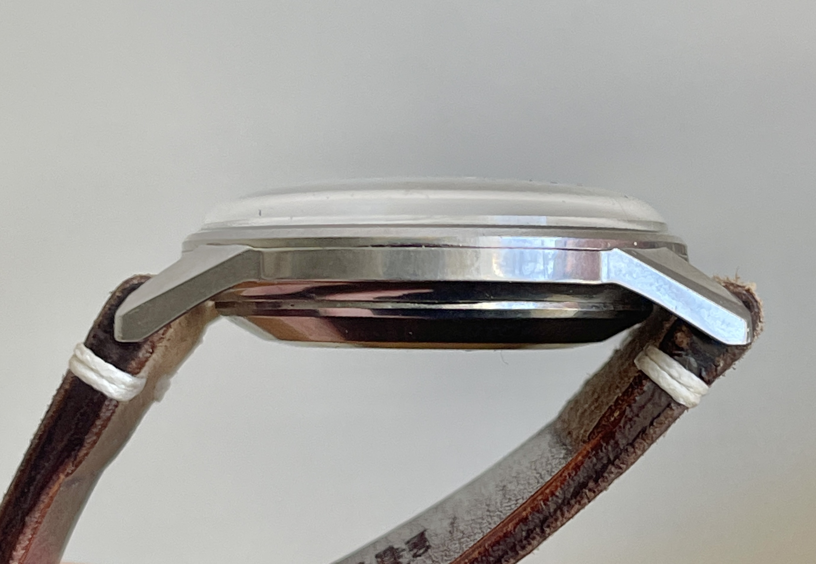 The crystal is acrylic rather than the un-polishable Hardlex crystals that Seiko tended to use a little later on in the decade. It has some light marks here and there, but I’ve chosen not to polish them out.