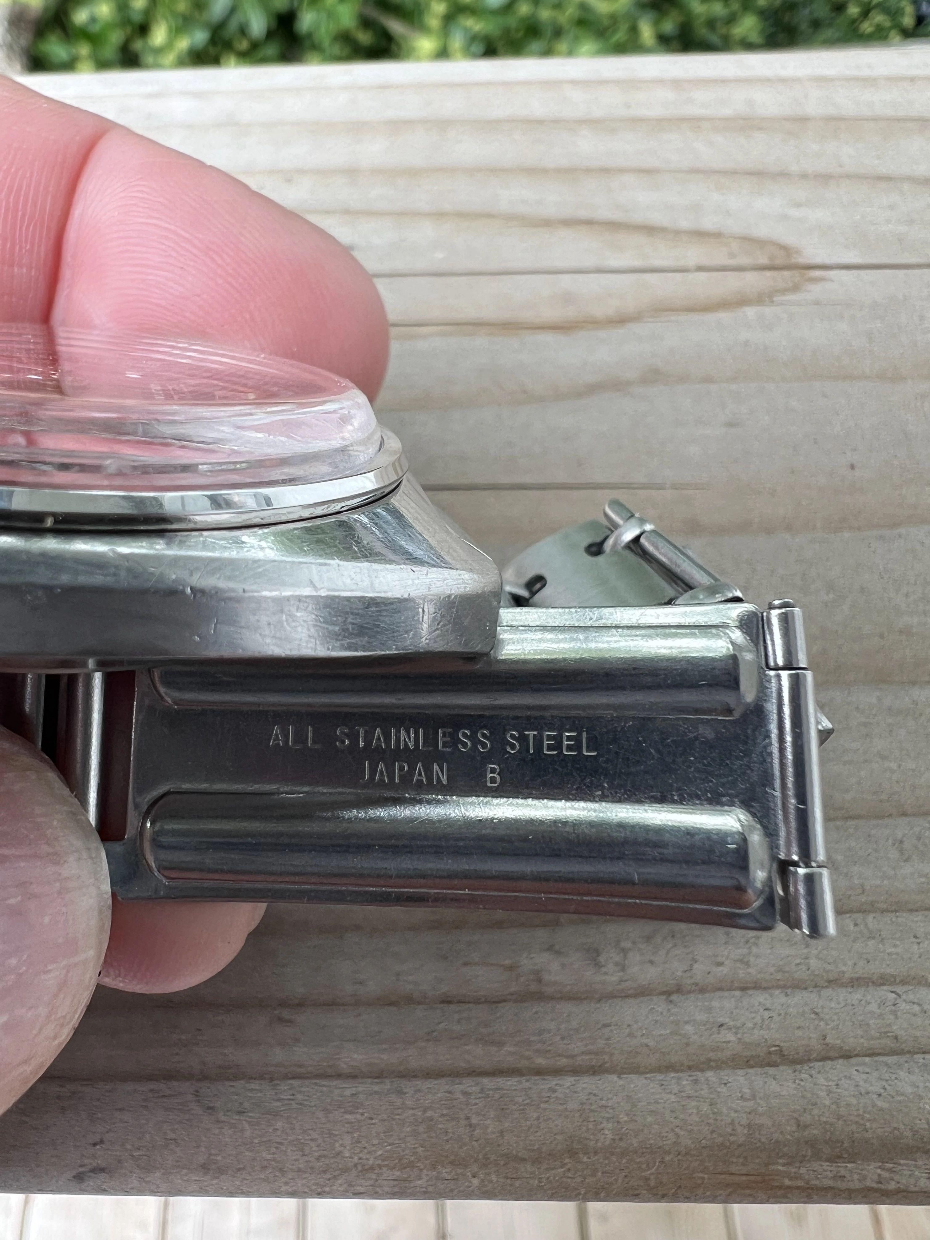 Case: Stainless steel in good condition, some marks consistent with age. Horseshoe caseback with intact text, some opening marks as seen.