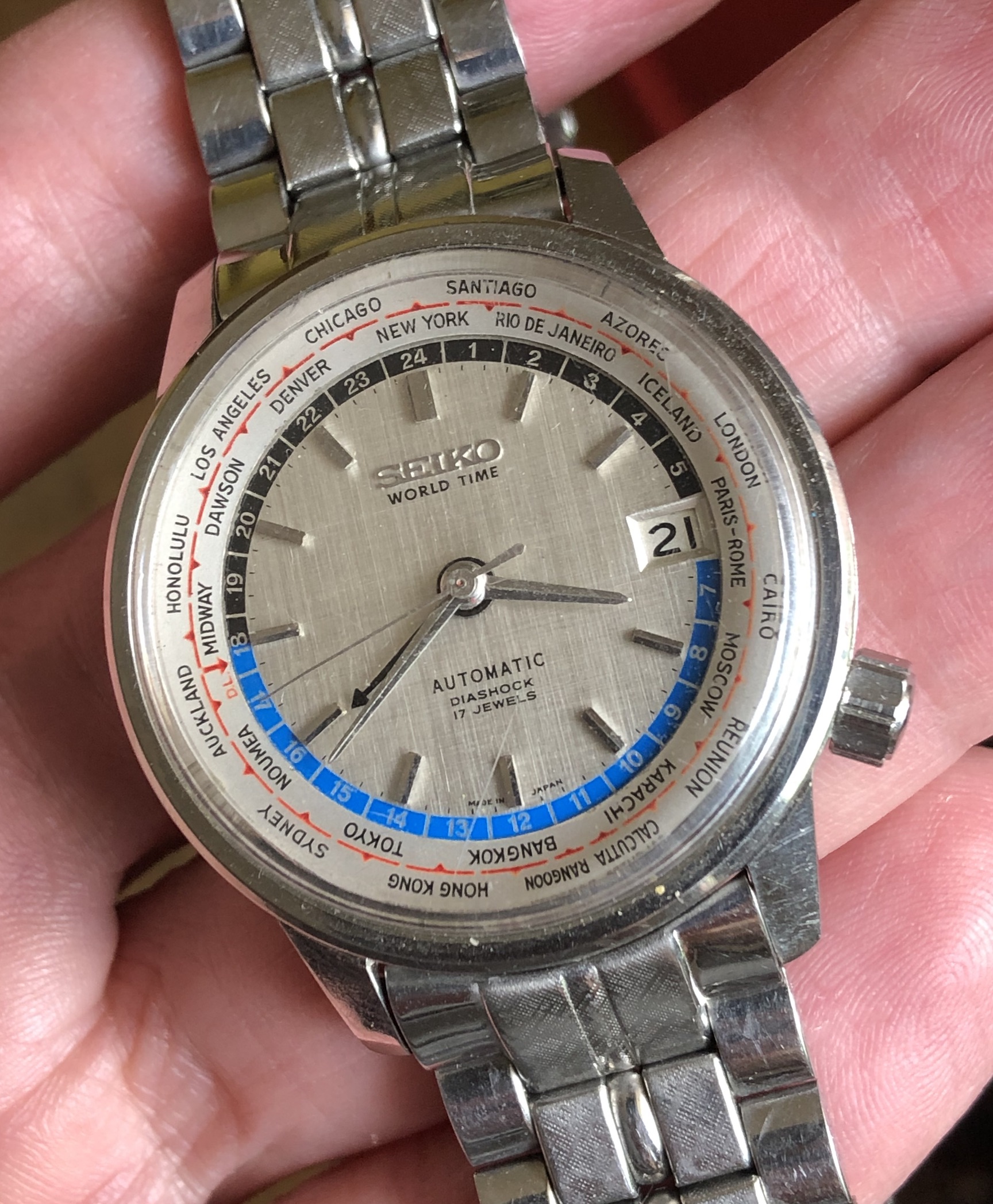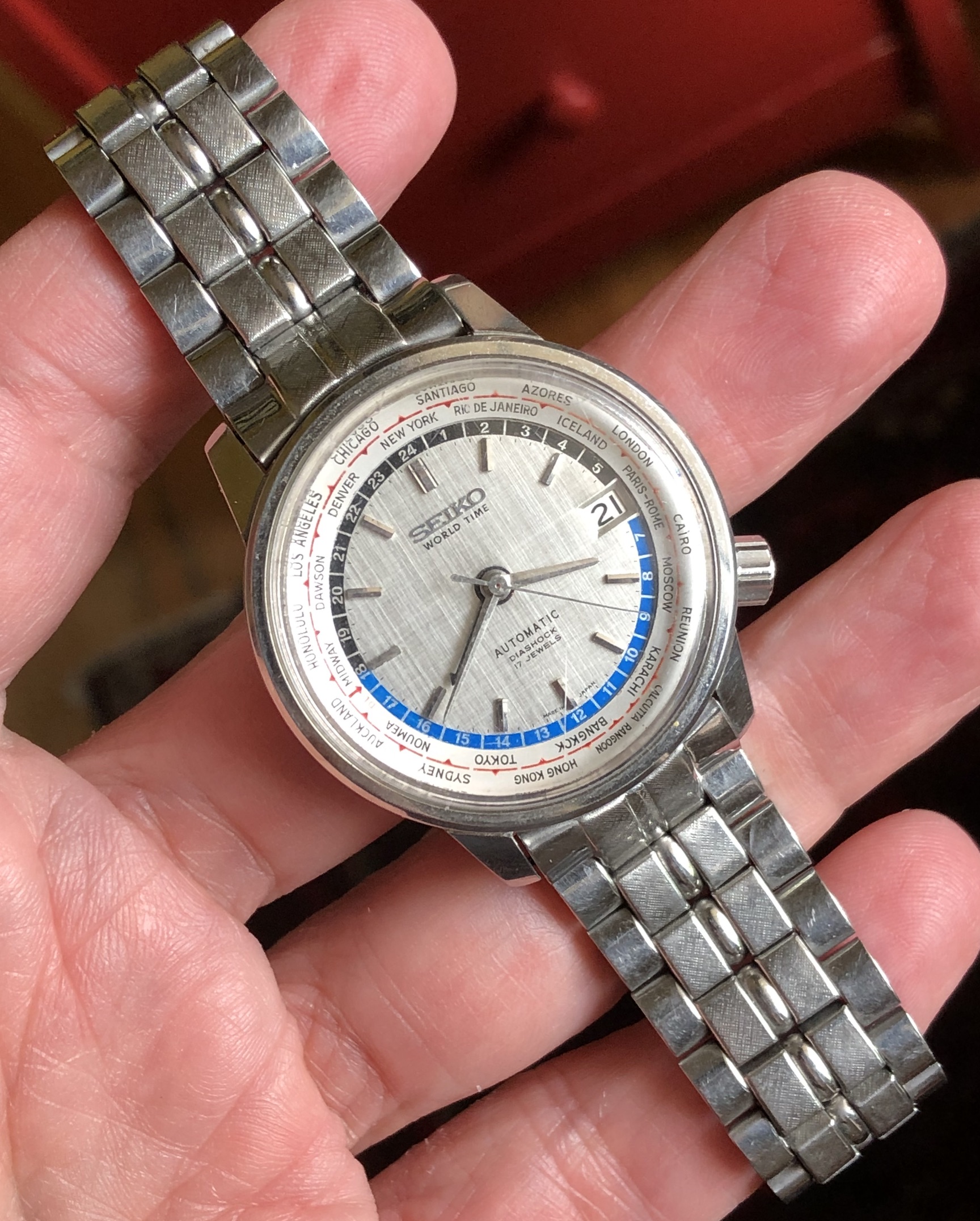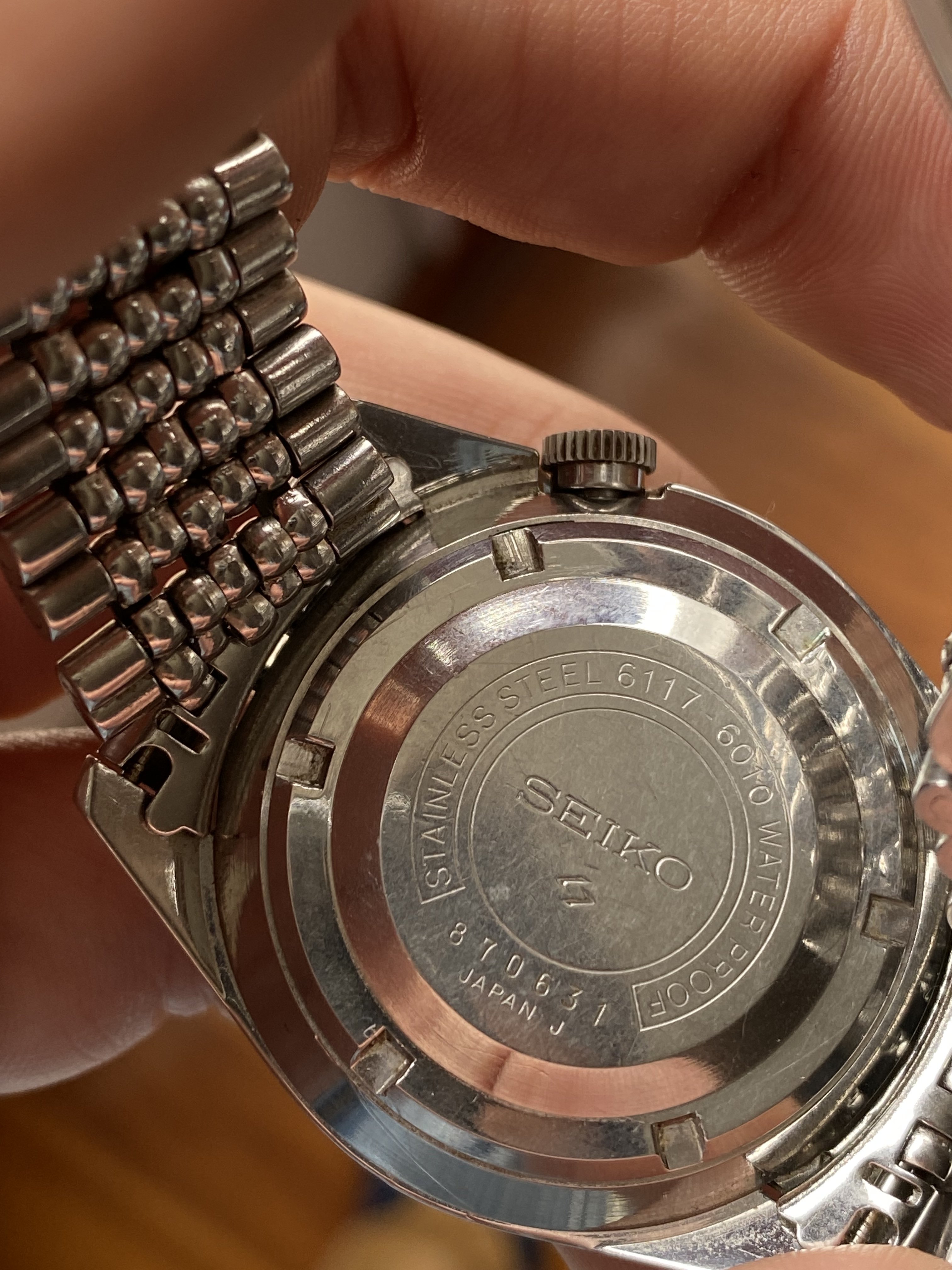 I’m looking for advice whether the dial and hands are original. I’m pretty sure the crown isn’t the correct one. That’s the only photo I have for the moment. Will see it in person before I buy. Comes on a beads of rice Seiko bracelet