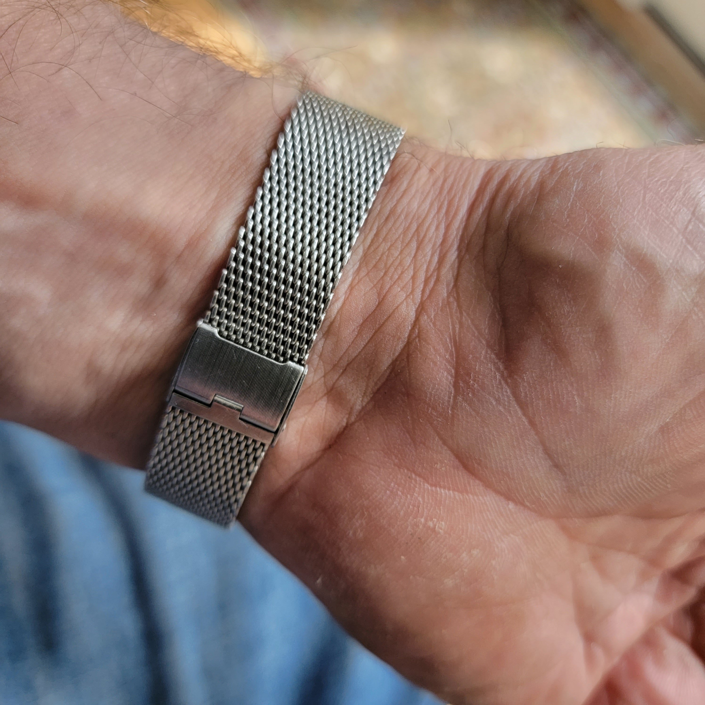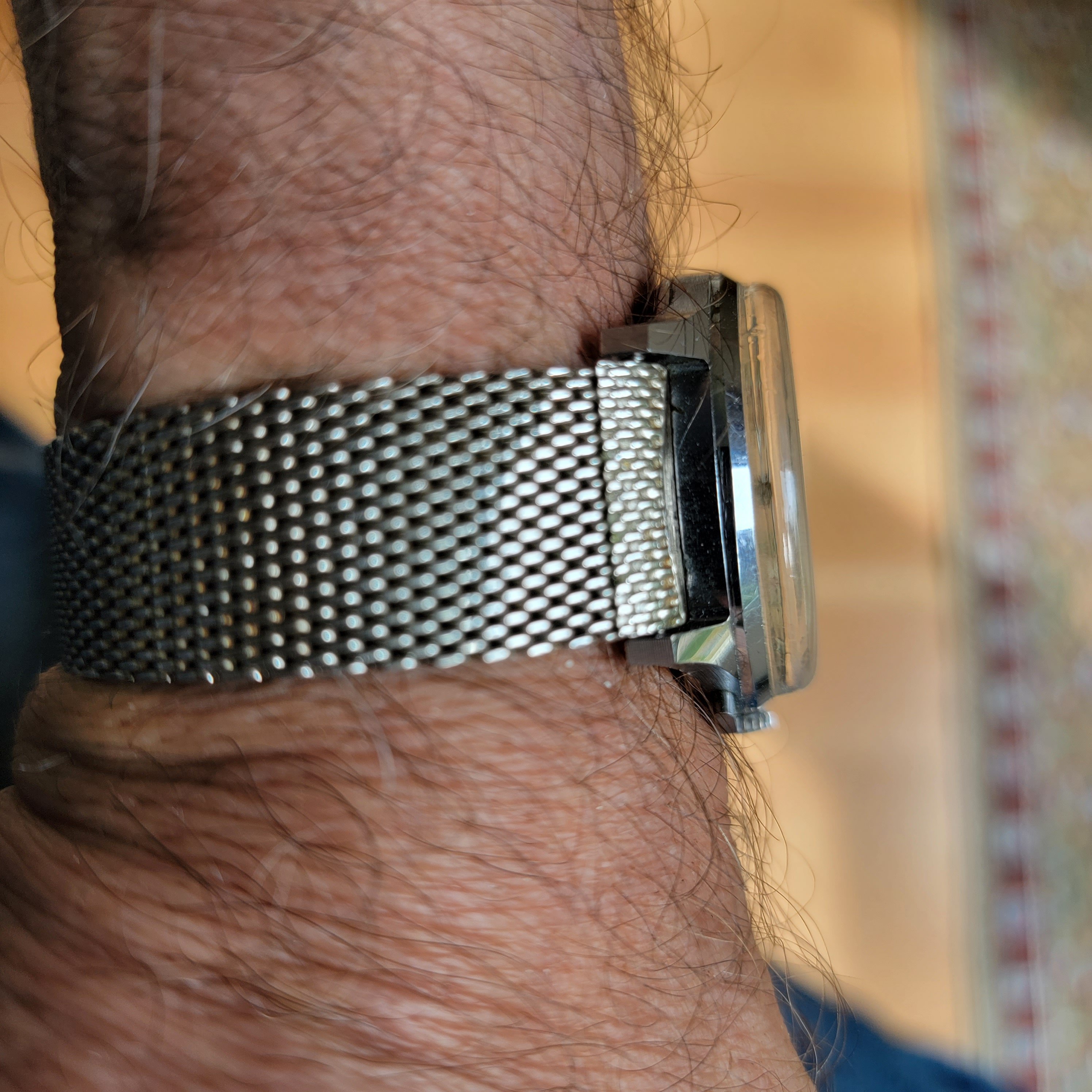I added a nice vintage JB Champion mesh bracelet, which fits my 7.25 wrist with lots of room remaining.