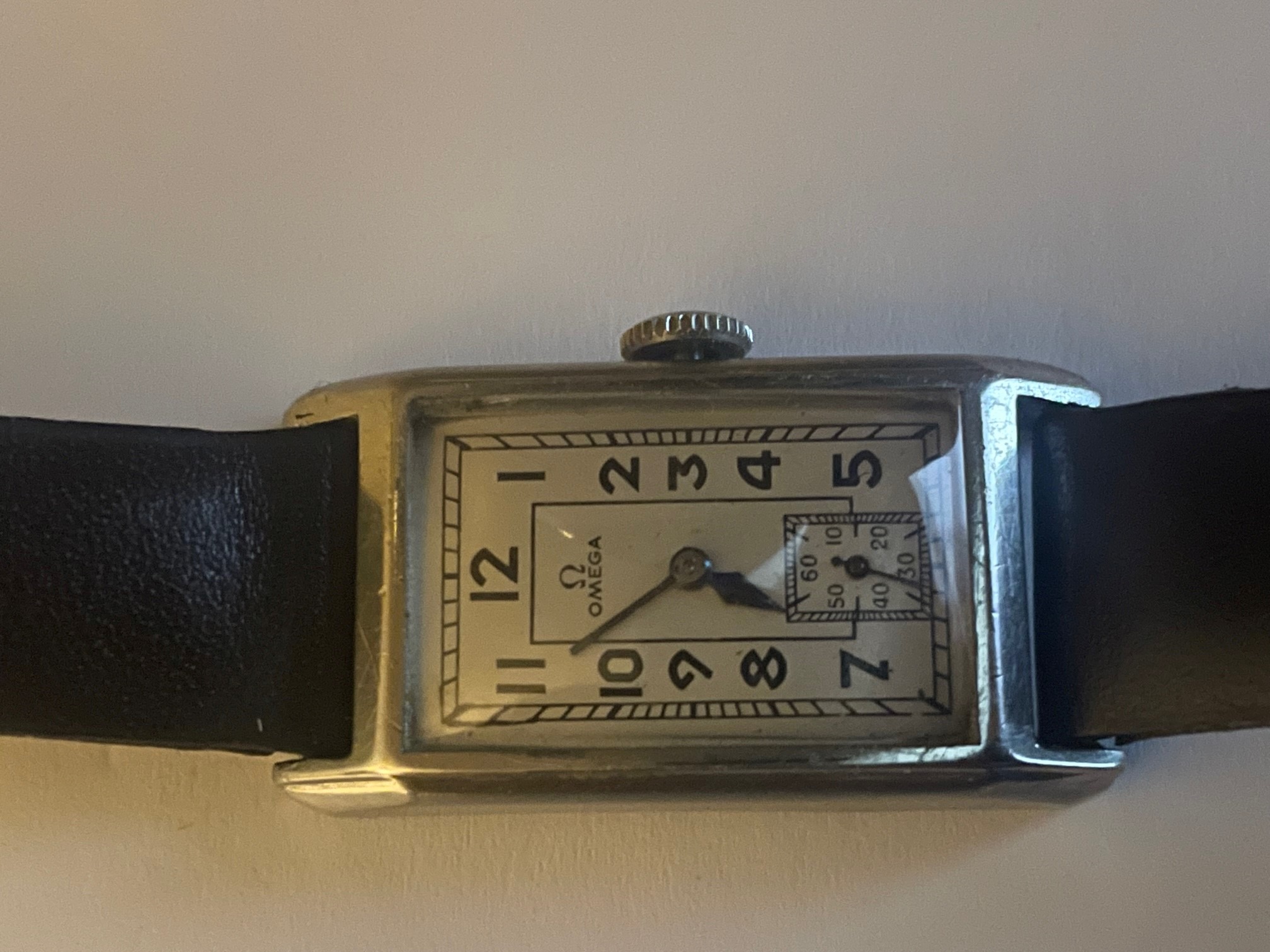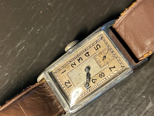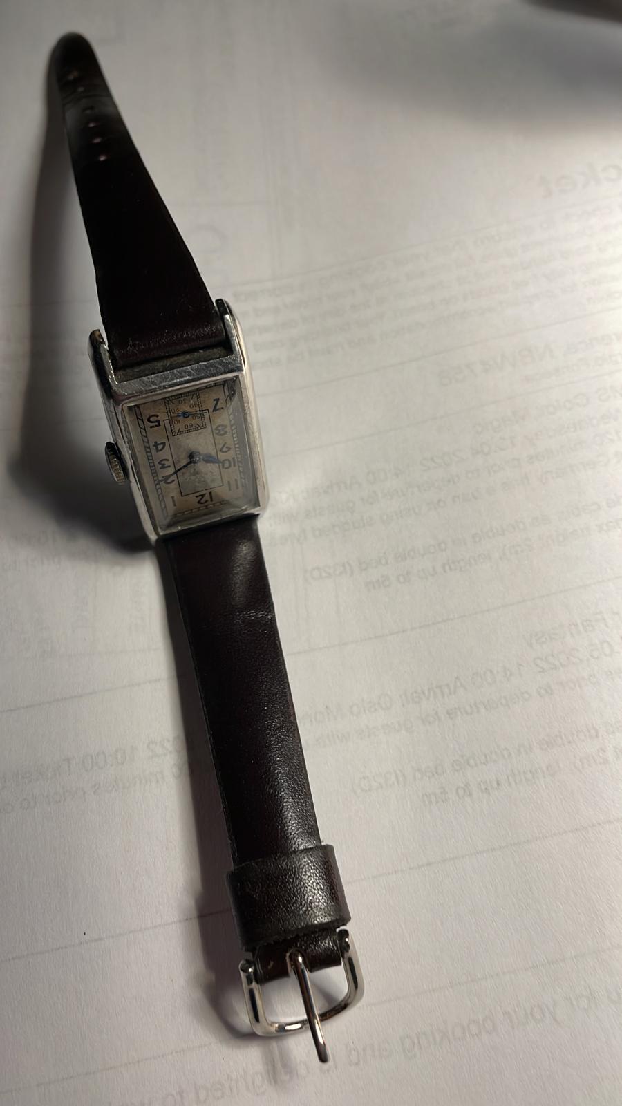 As for the watch, I'll give it a shot based on the limited photos. I believe this is known as a left-crown-tank, commonly referred to as an L 8 6 01, for obvious reasons, manufactured for the Southern Hemisphere market. These are rarely found in the wild and I would recommend having it serviced by a qualified watchmaker.