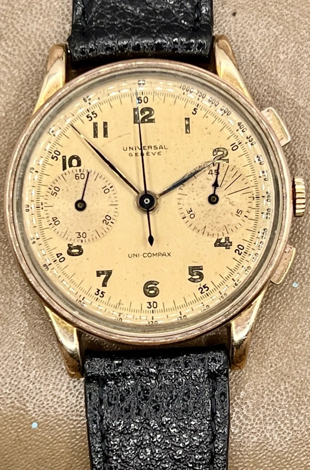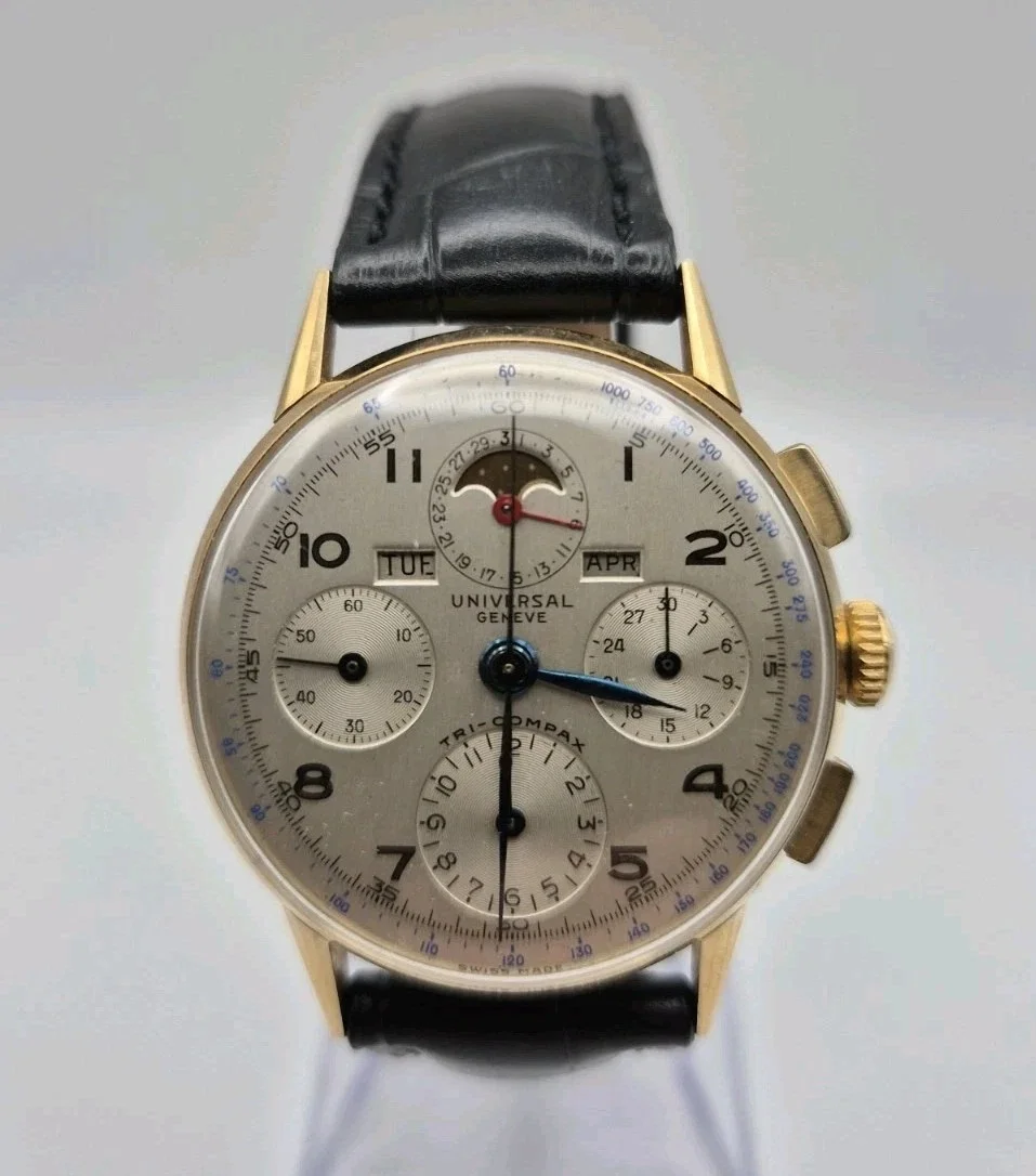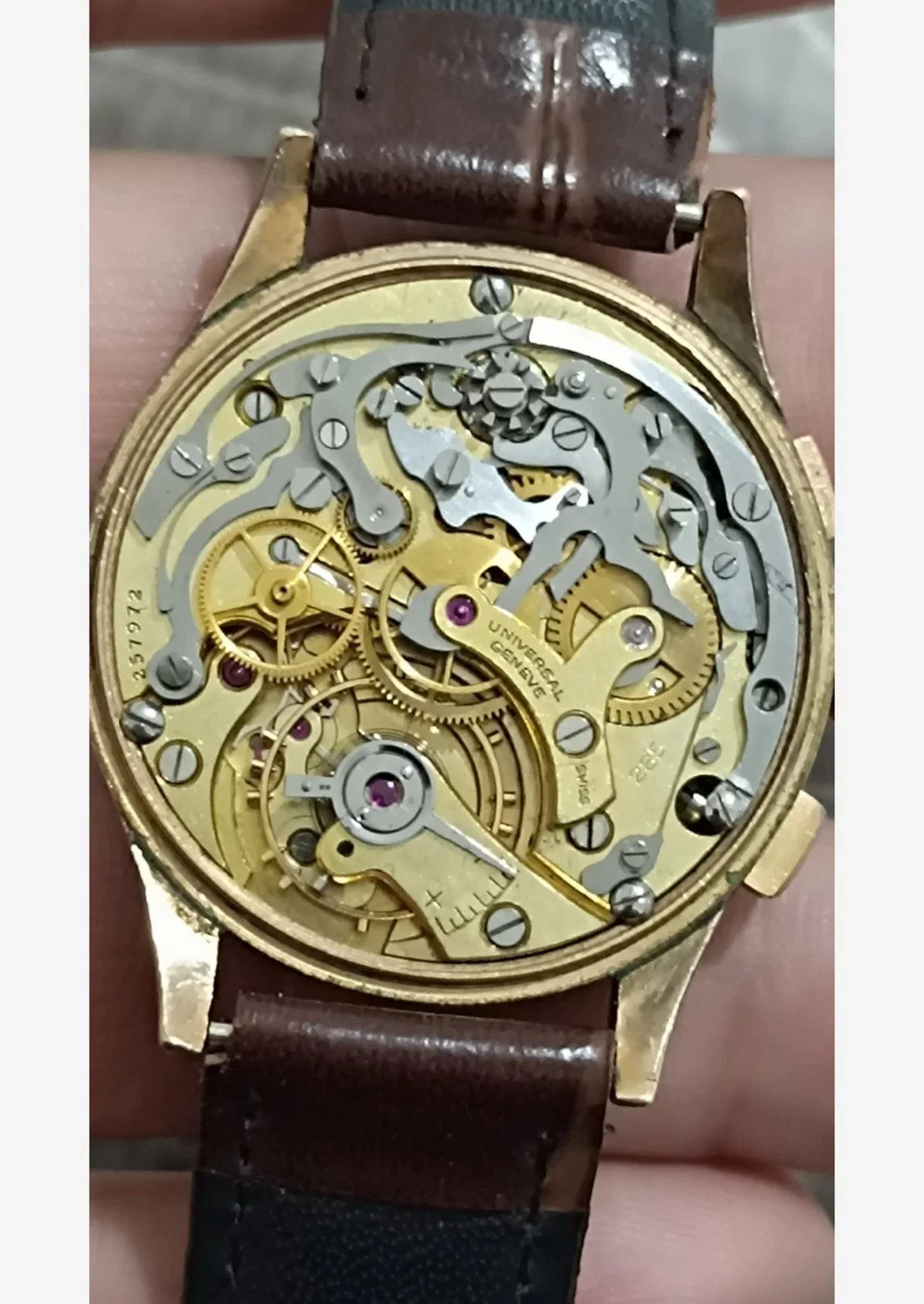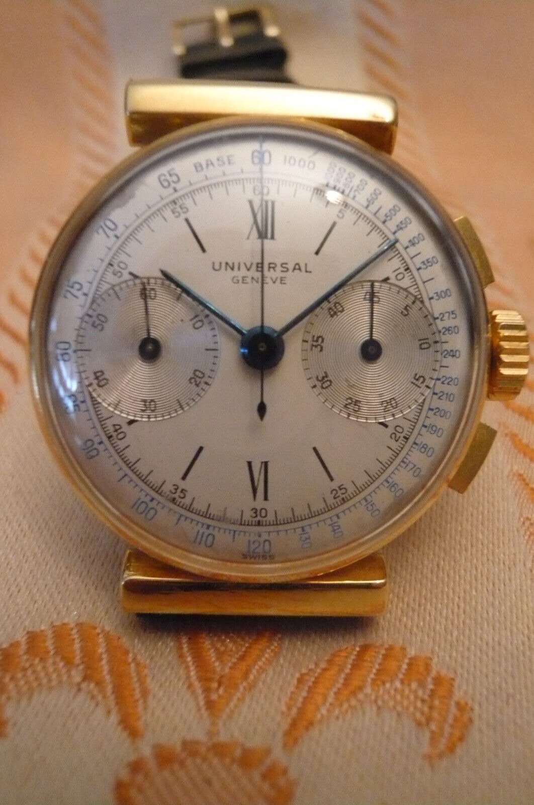 Posts 6,381 Likes 9,979 Mark020 ·Oct 17, 2023·not the sharpest pencil in the ΩF drawer Found another pair. This time ref 52509 Serial 1.094.683 https://www.chrono24.nl/universalgenve/universal-geneve-vintage-14k-gold-watch--id30965132.htm And 684 https://catalog.antiquorum.swiss/en/lots/lot-271-220?browse_all=1&page=7&q=compax
