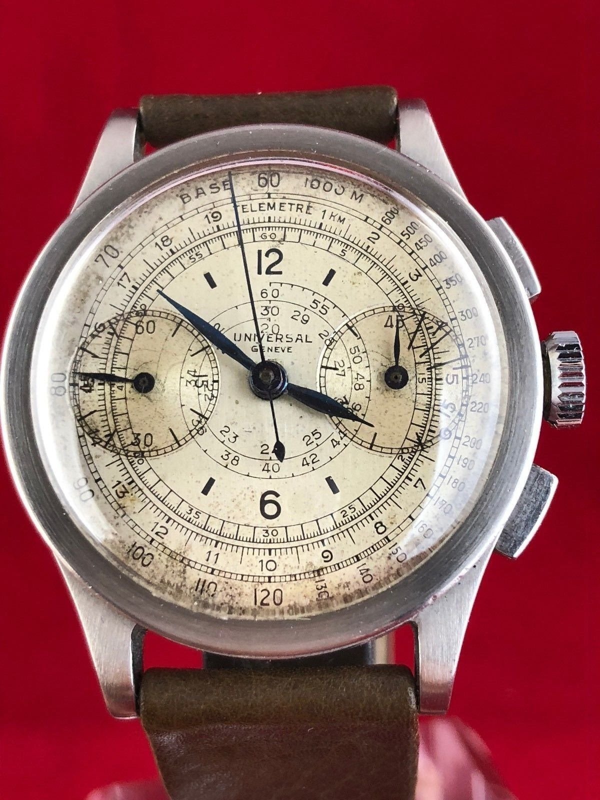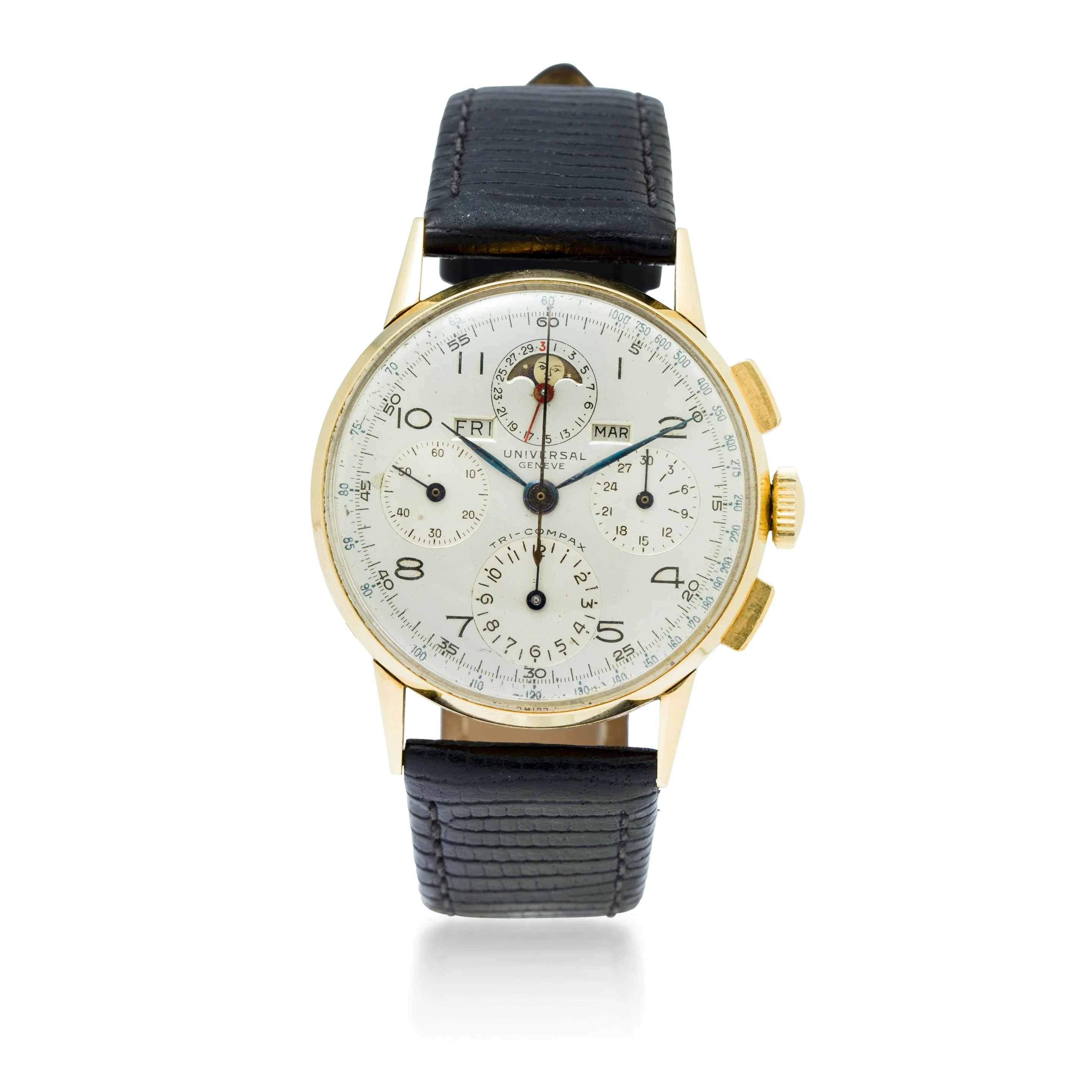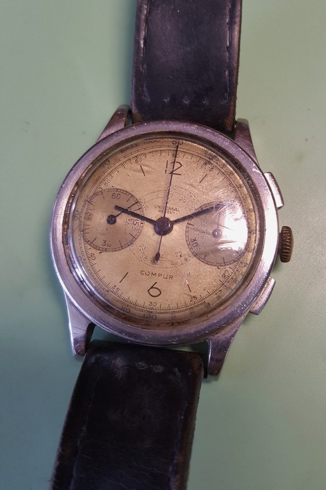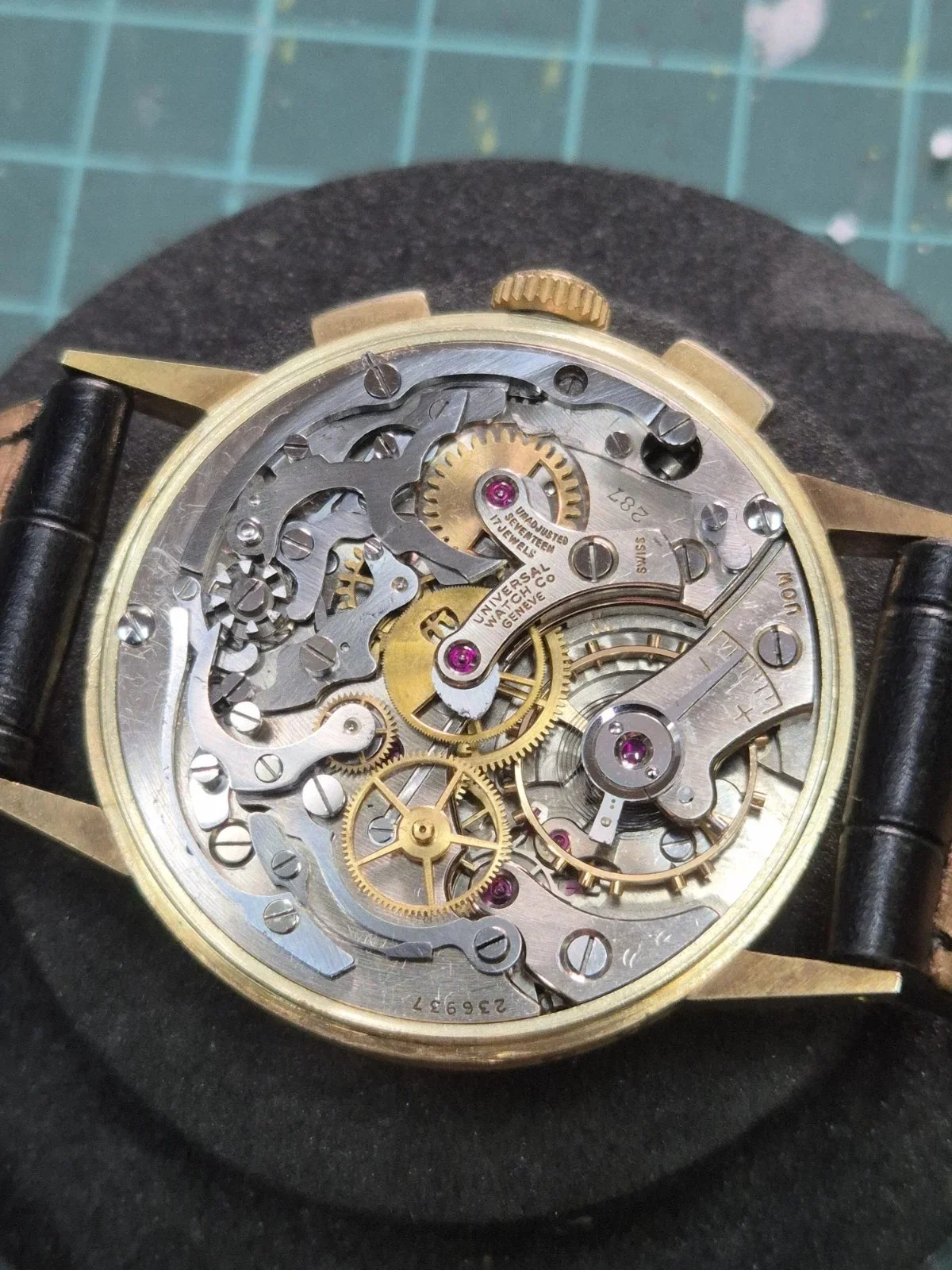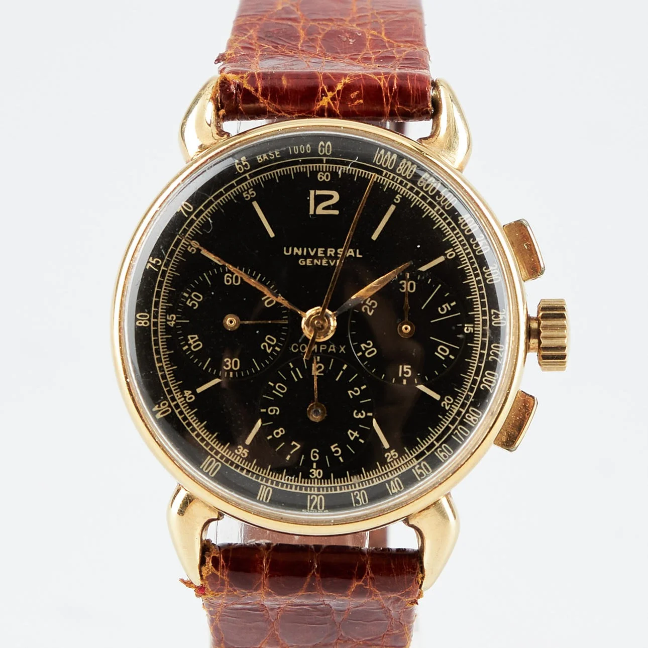 Posts 6,381 Likes 9,979 Mark020 ·Oct 17, 2023·not the sharpest pencil in the ΩF drawer Found another pair. This time ref 52509 Serial 1.094.683 https://www.chrono24.nl/universalgenve/universal-geneve-vintage-14k-gold-watch--id30965132.htm And 684 https://catalog.antiquorum.swiss/en/lots/lot-271-220?browse_all=1&page=7&q=compax