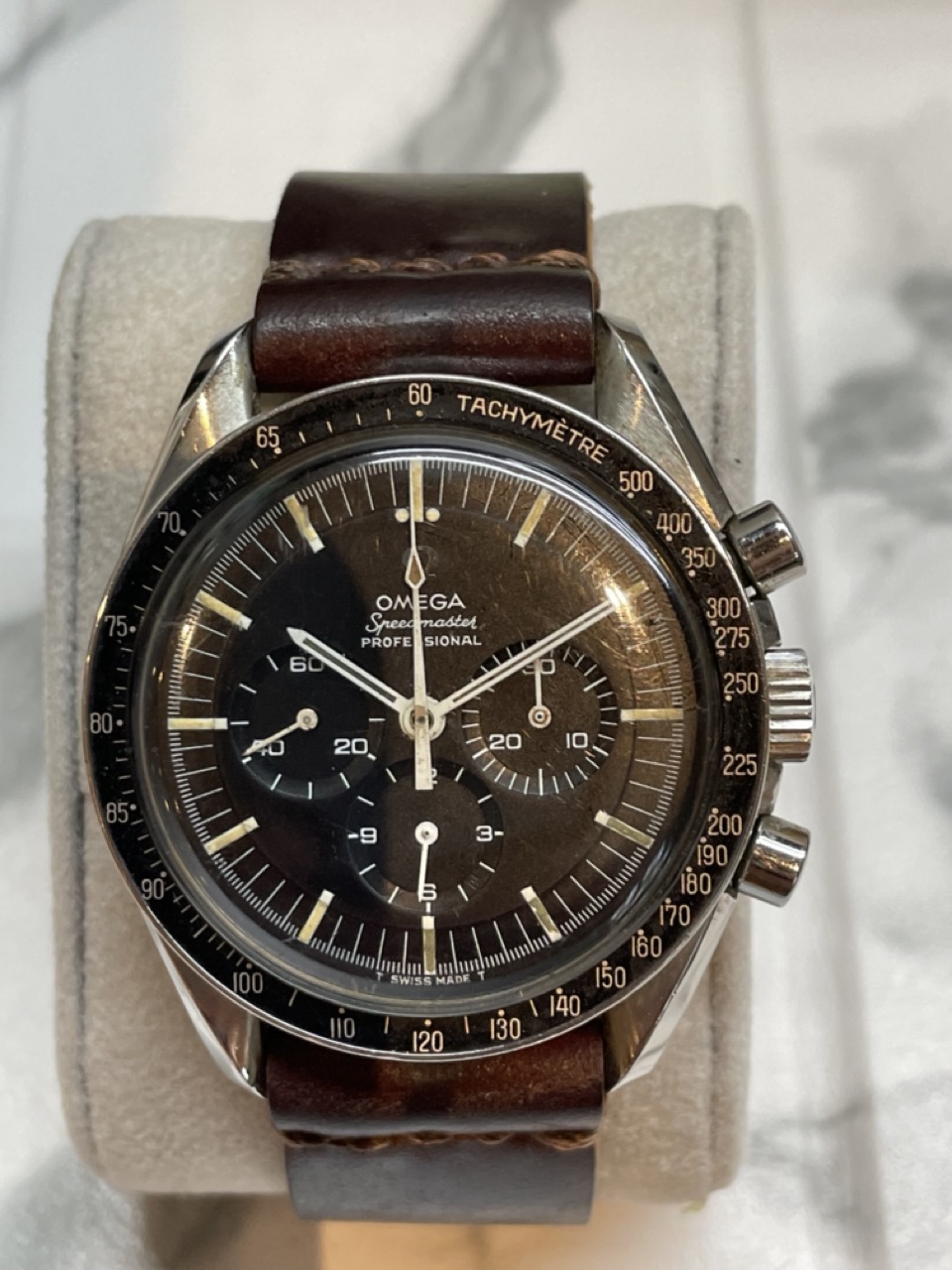 ·I've sent my (all original) 145.022-68 cal. 861 transitional Speedy off to a reputable independent shop for service. The techs just got back to me and required a dial and hands replacement (originals to be returned). Tritium is disintegrating and they won't service with the original hands & dial. The service dial is a far cry from what's currently on it, and it loses a big part of its appeal. OTOH, the watch is currently not keeping time.