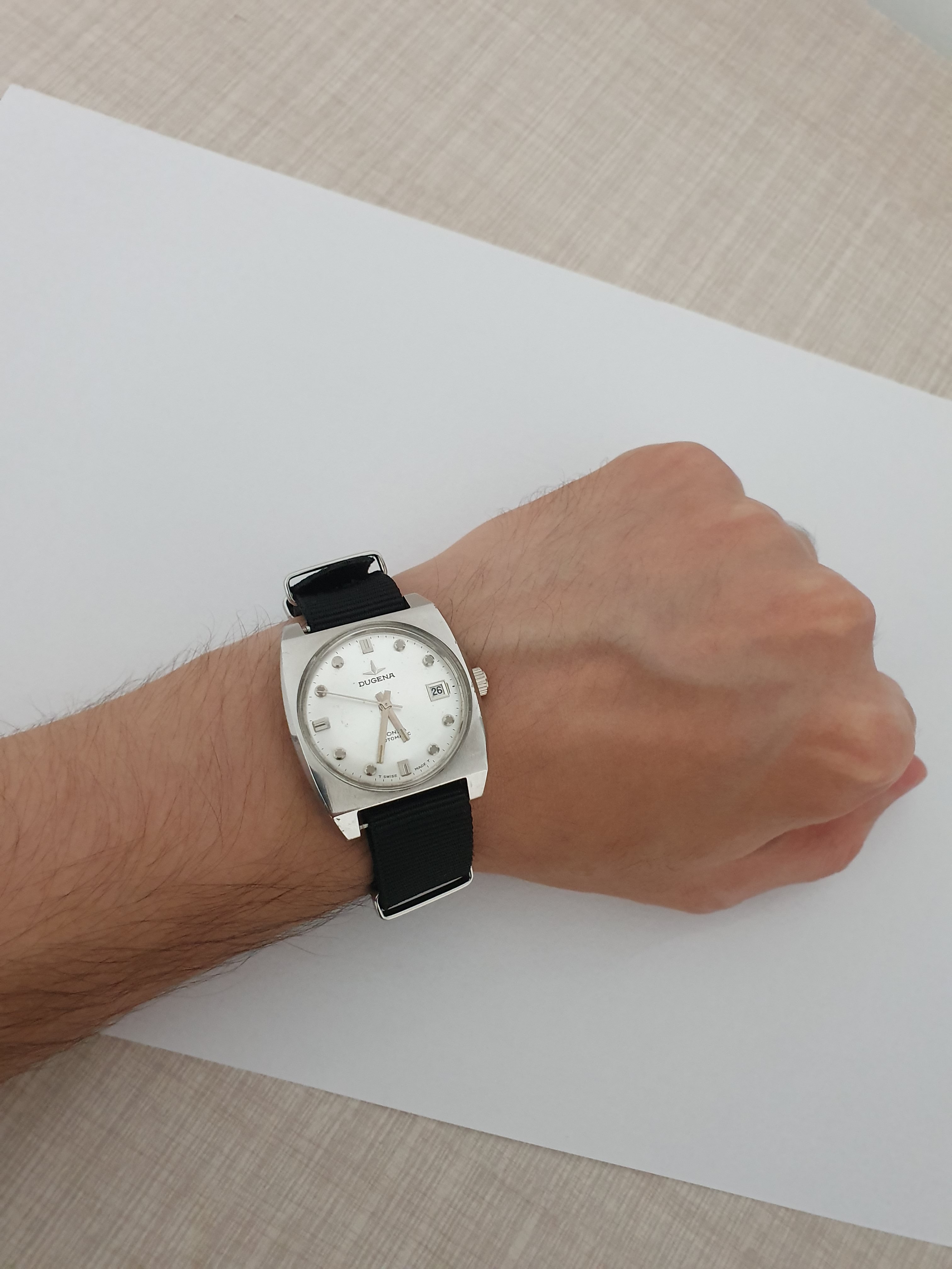 - Swiss Dugena 3325 (ETA 2728) automatic movement (25 jewels) / quickset date