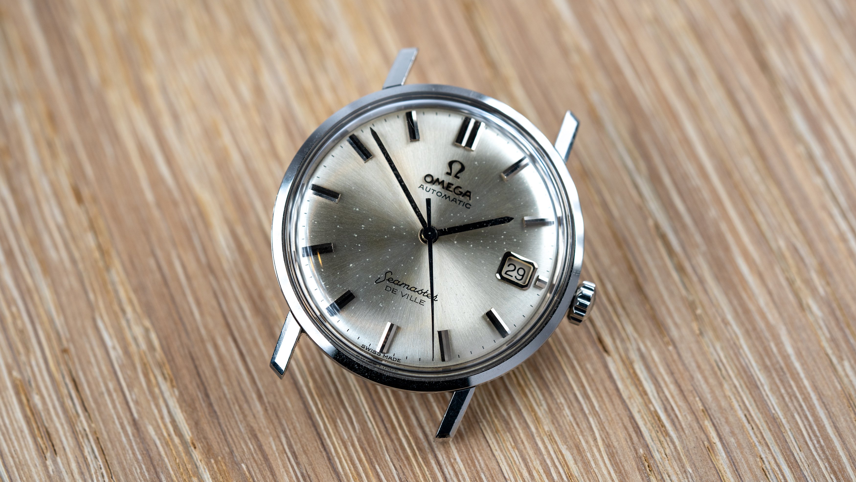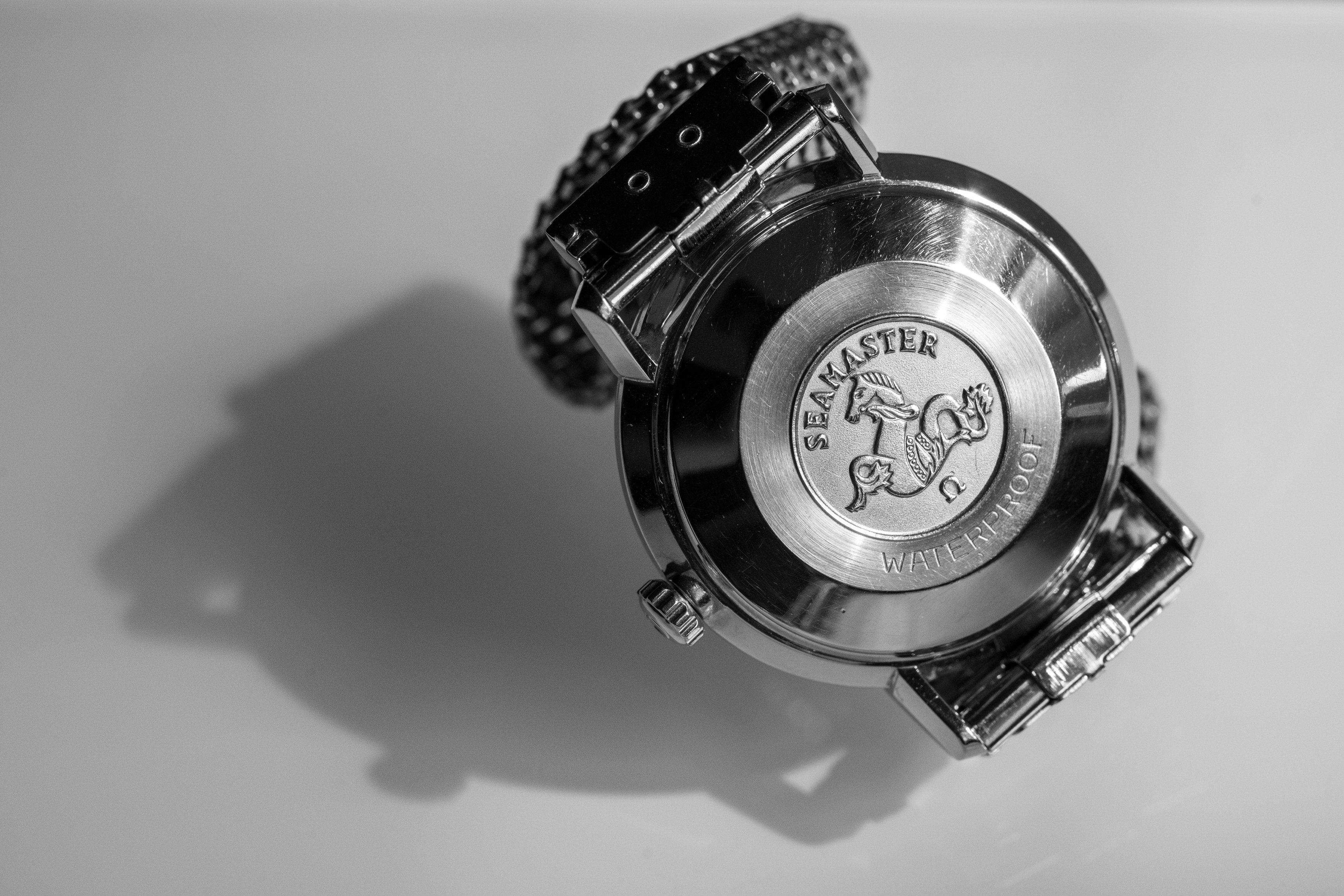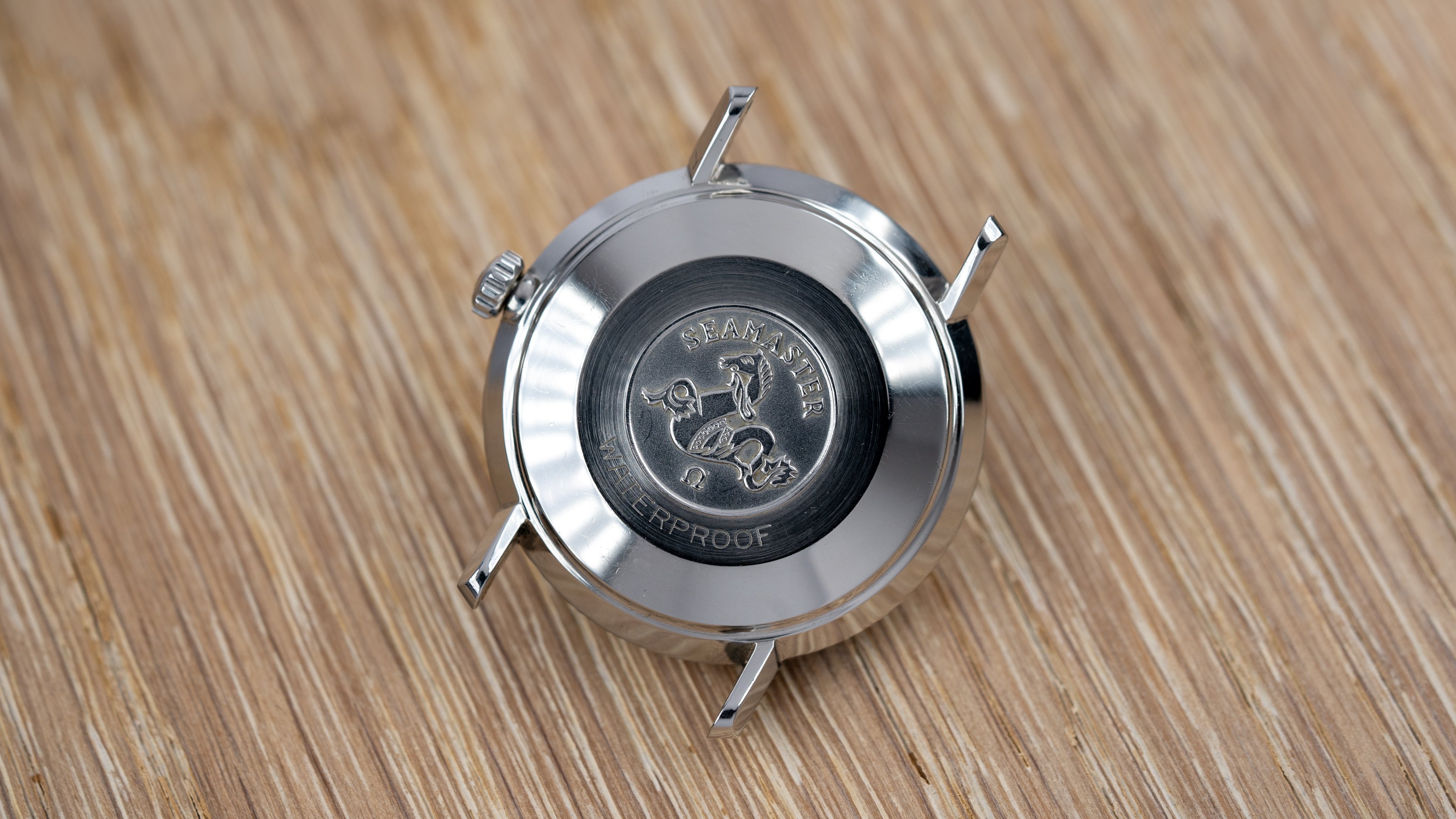 The Seamaster medallion on the back still retains its original sandblasted finish, which is typically eliminated during polishing. Both the circumferential brushing and ‘WATERPROOF’ engraving are clean and well-defined.
