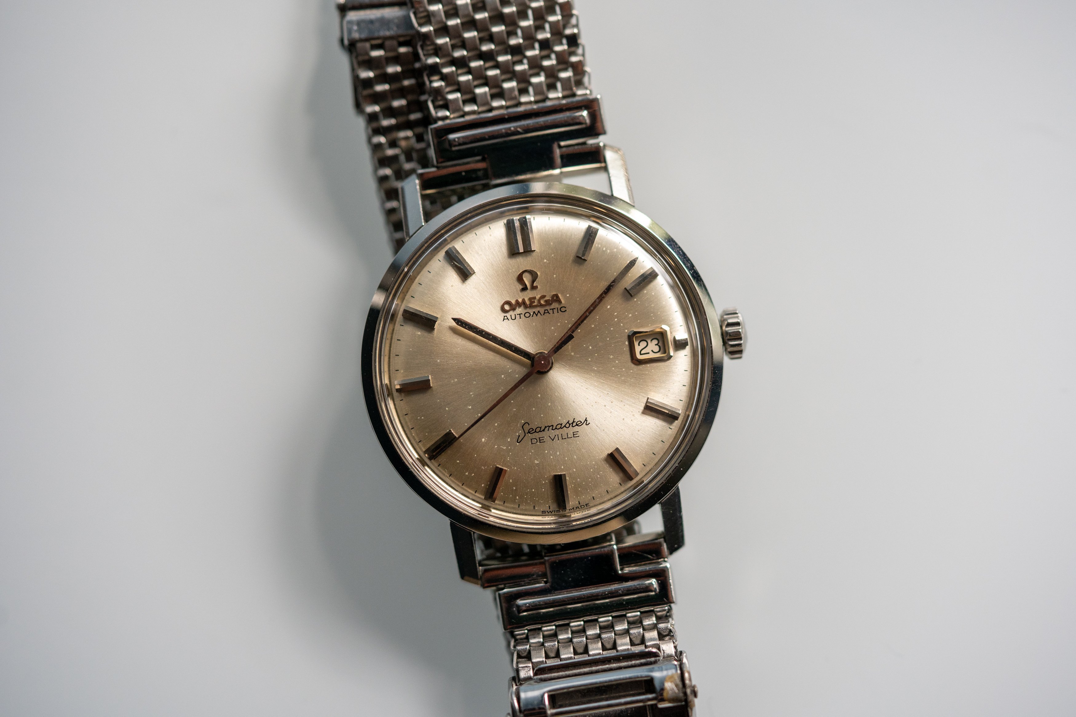 This particular watch has both the ‘De Ville’ script and the early coat hanger ‘Seamaster,’ indicating that it was among the first to receive the De Ville branding in 1963 at the recommendation of Norman Morris, Omega’s US distributor. It's in solid condition and will make for an excellent daily wearer or hassle-free piece for someone looking to explore vintage.