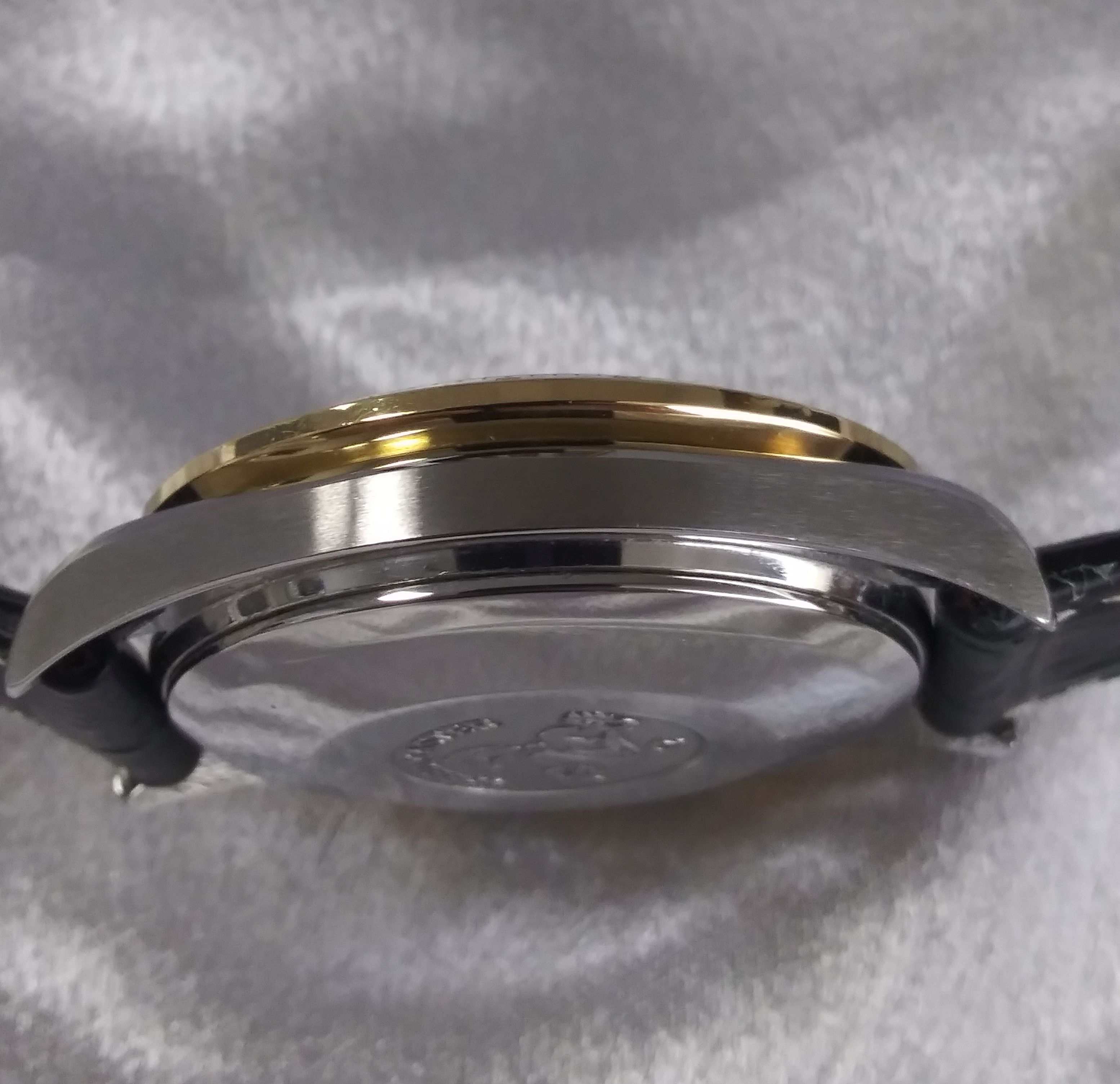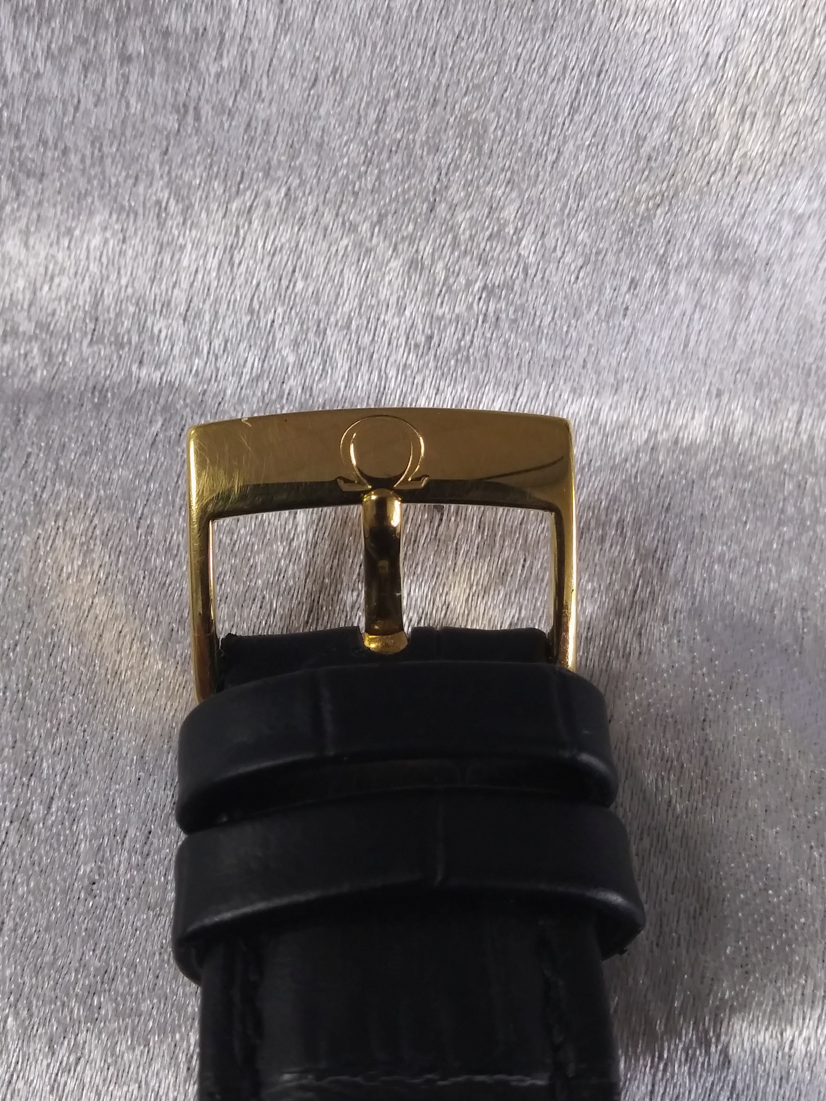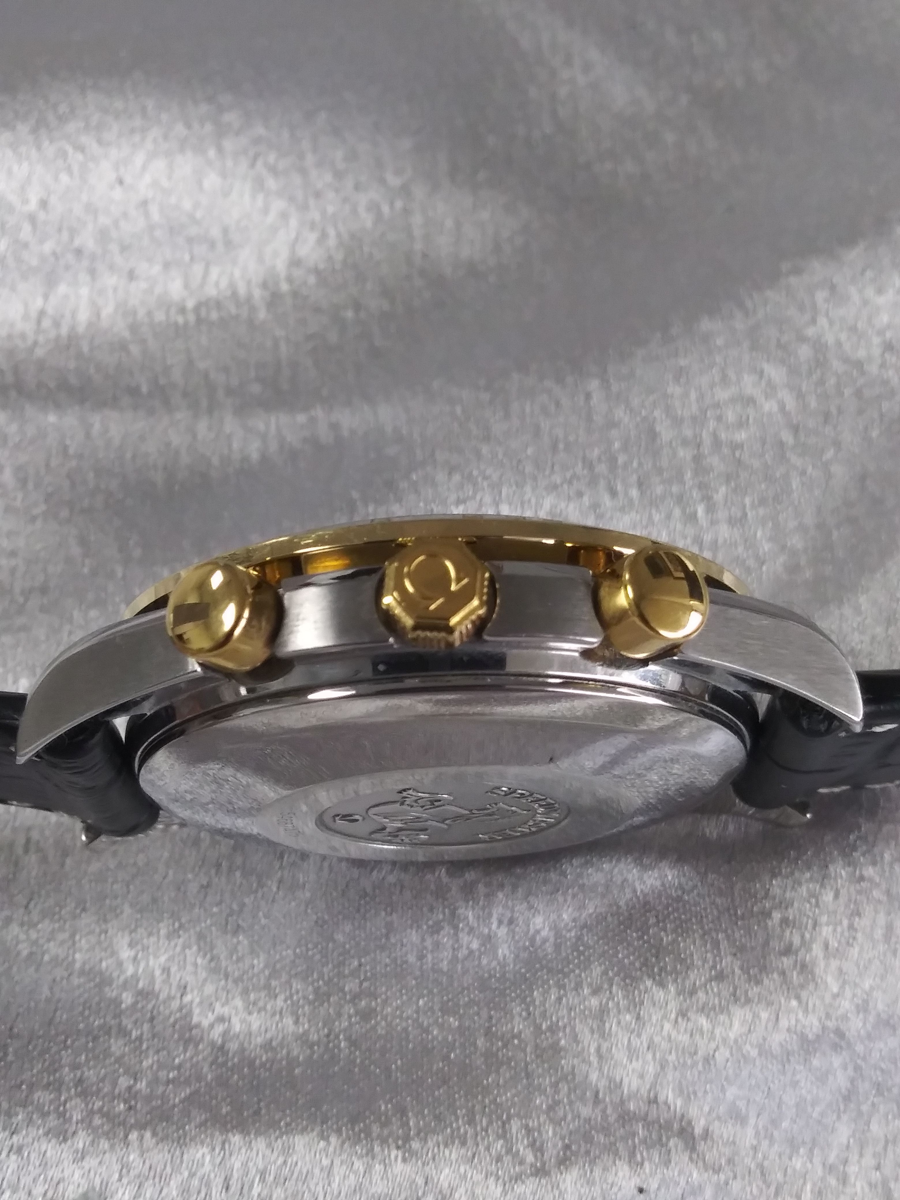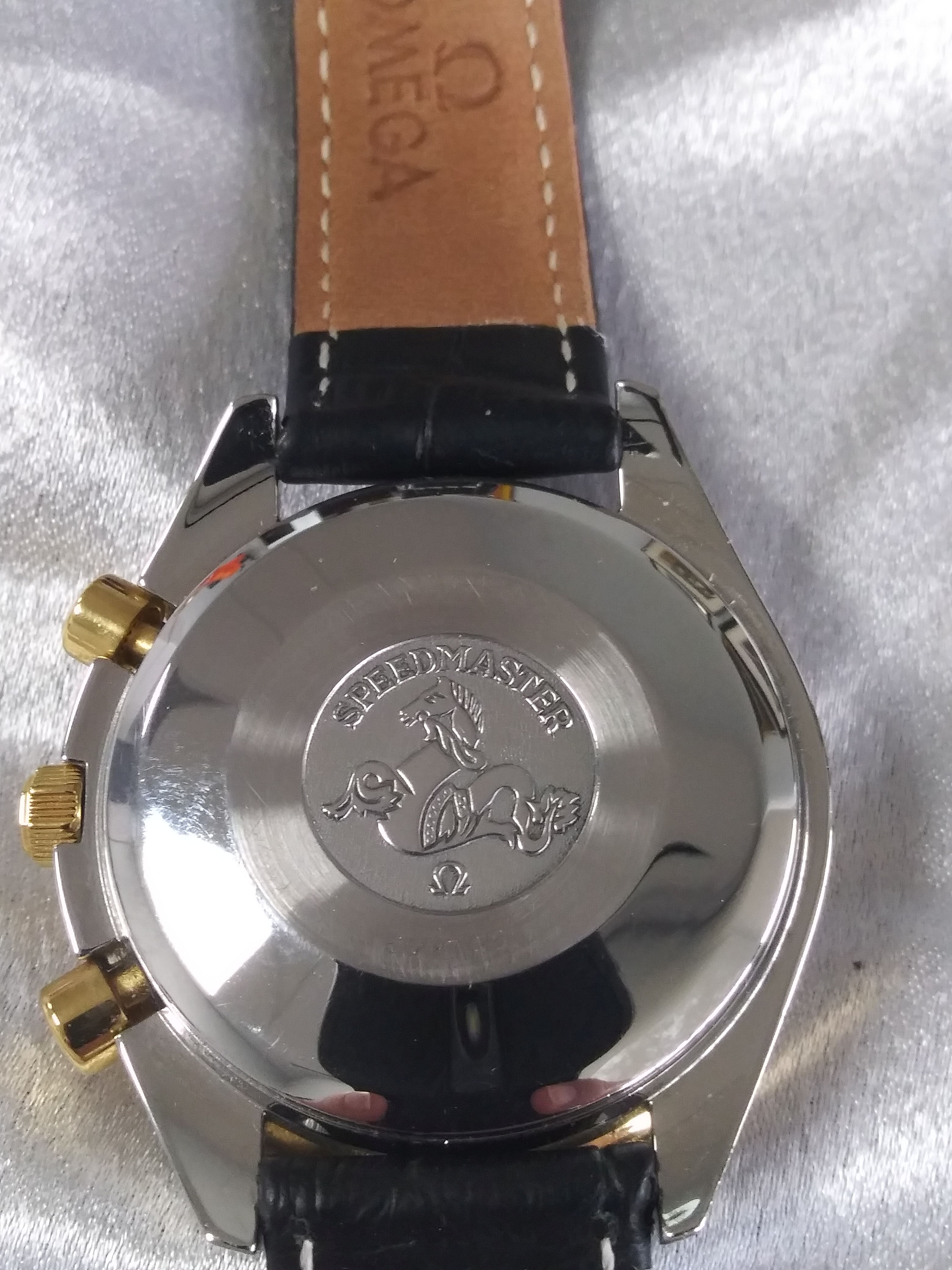 ·Up for sale is this beautiful Omega Speedmaster Date with automatic caliber 1155 movement. The watch comes on an 18mm black leather Omega strap with Omega gold buckle. The 39mm Stainless Steel case has an 18k yellow gold bezel. There are dings and scratched from nearly 20 years of wear.