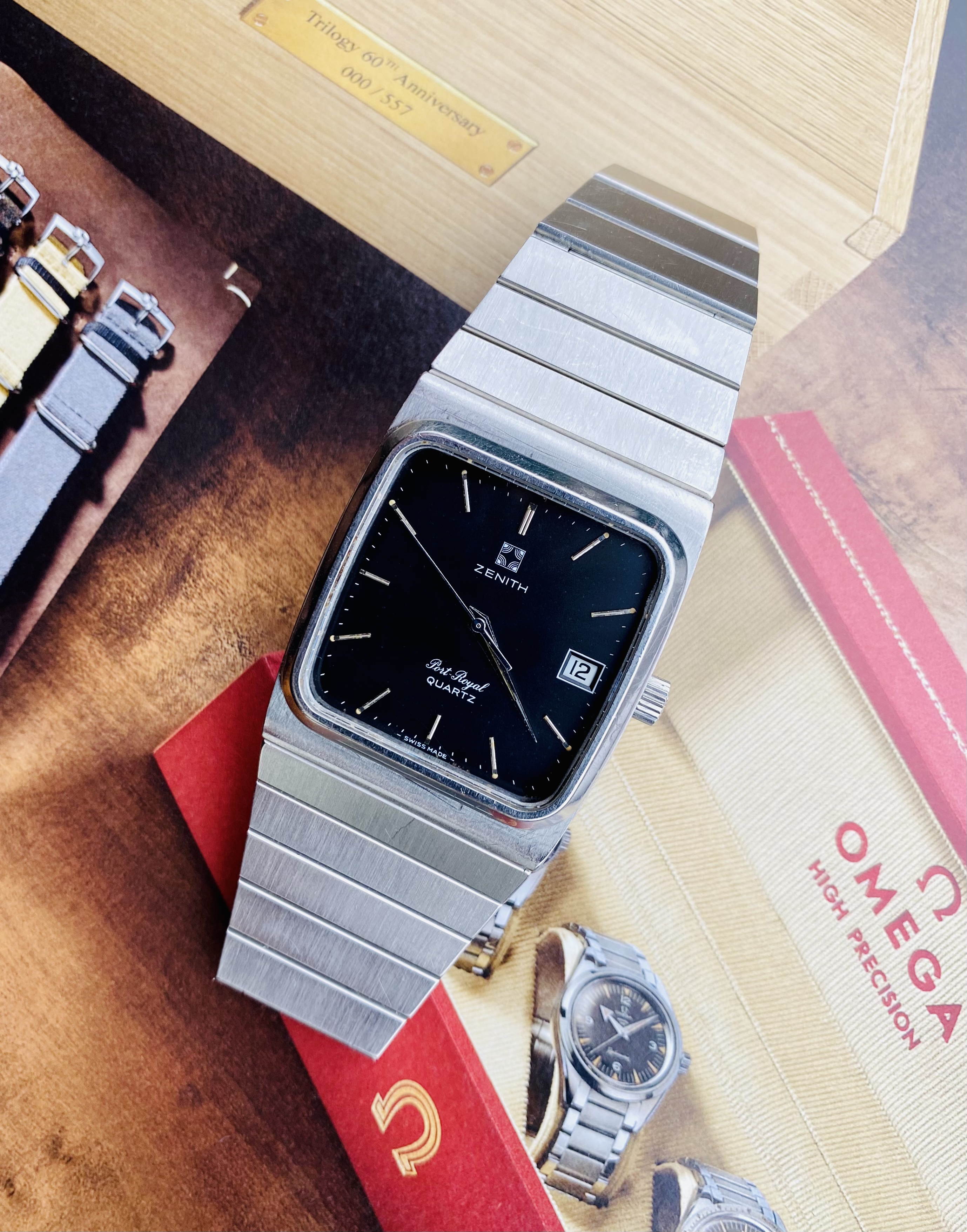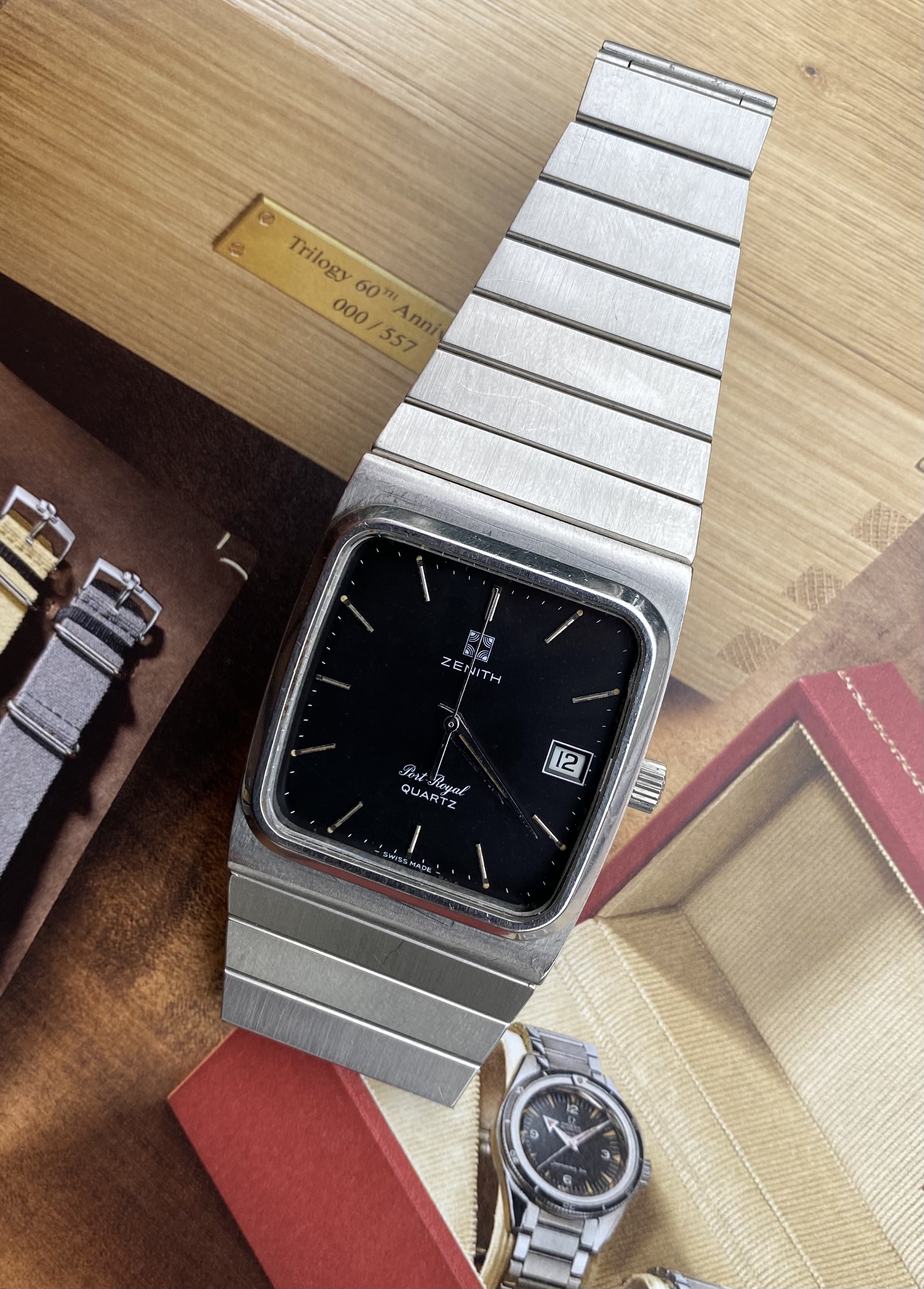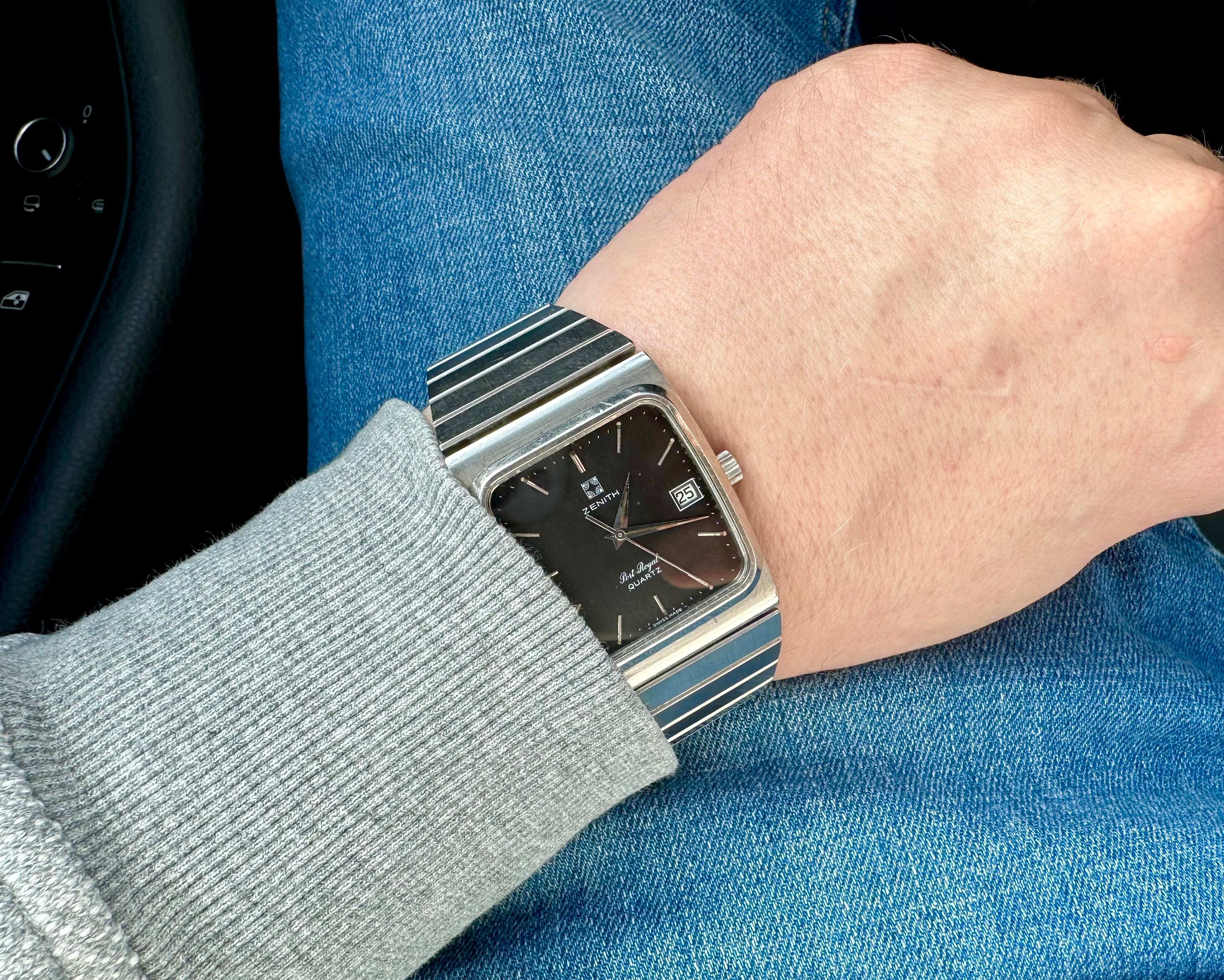 For sale is my a neo-vintage Zenith Port Royal 495 with a super solid integrated steel bracelet from 80’.