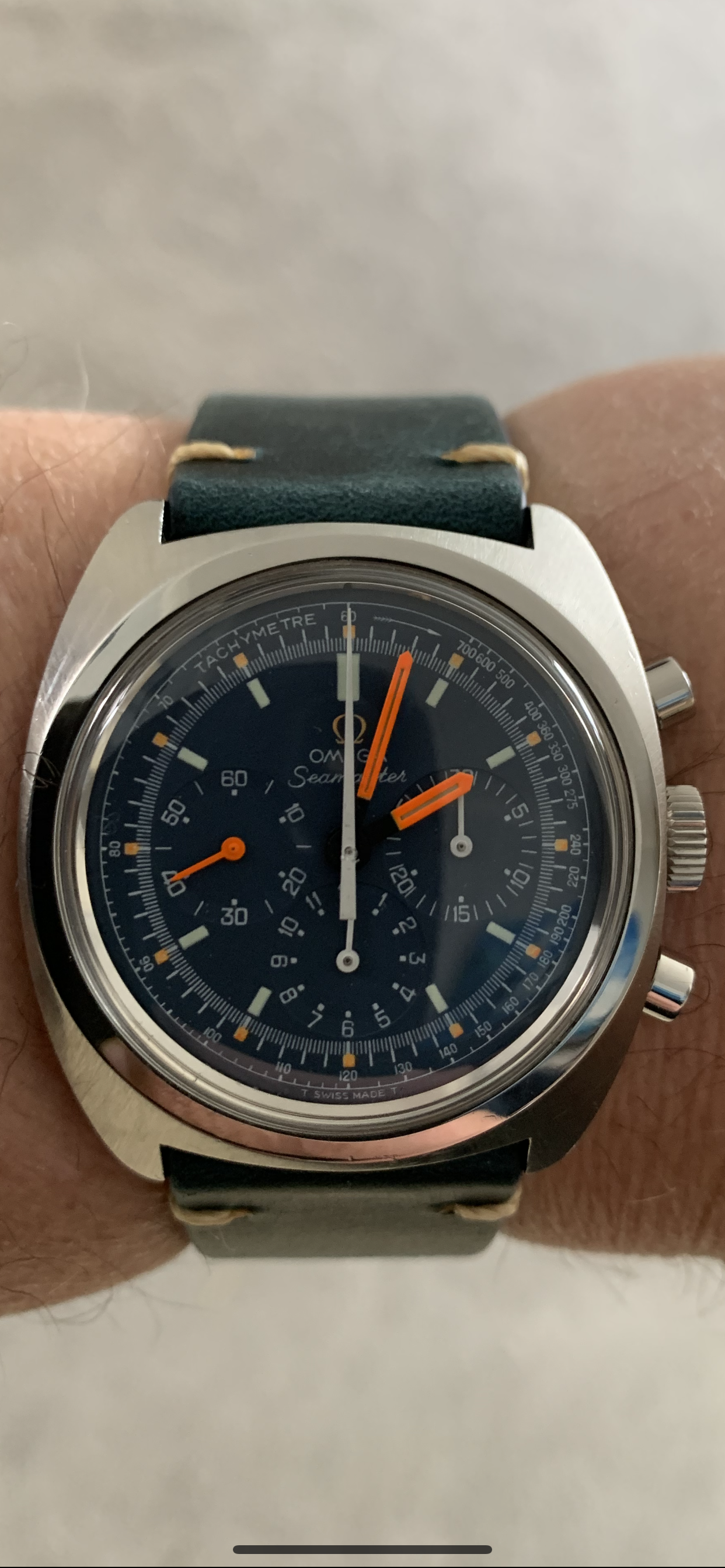 Just wanted to share these excellent value and stunning straps from “Eache” oiled leather in various sizes/colours. They come with 4 pins and a strap changing tool and cost an amazing £14:99 from Amazon UK. I’ve bought 3, two thick leather(oiled brown and oiled black), and this thinner one in oiled dark blue. It sets off my Vintage 1970’s Omega Seamaster 145.029 beautifully. The oiled finish wear well and compliment the vintage models well.