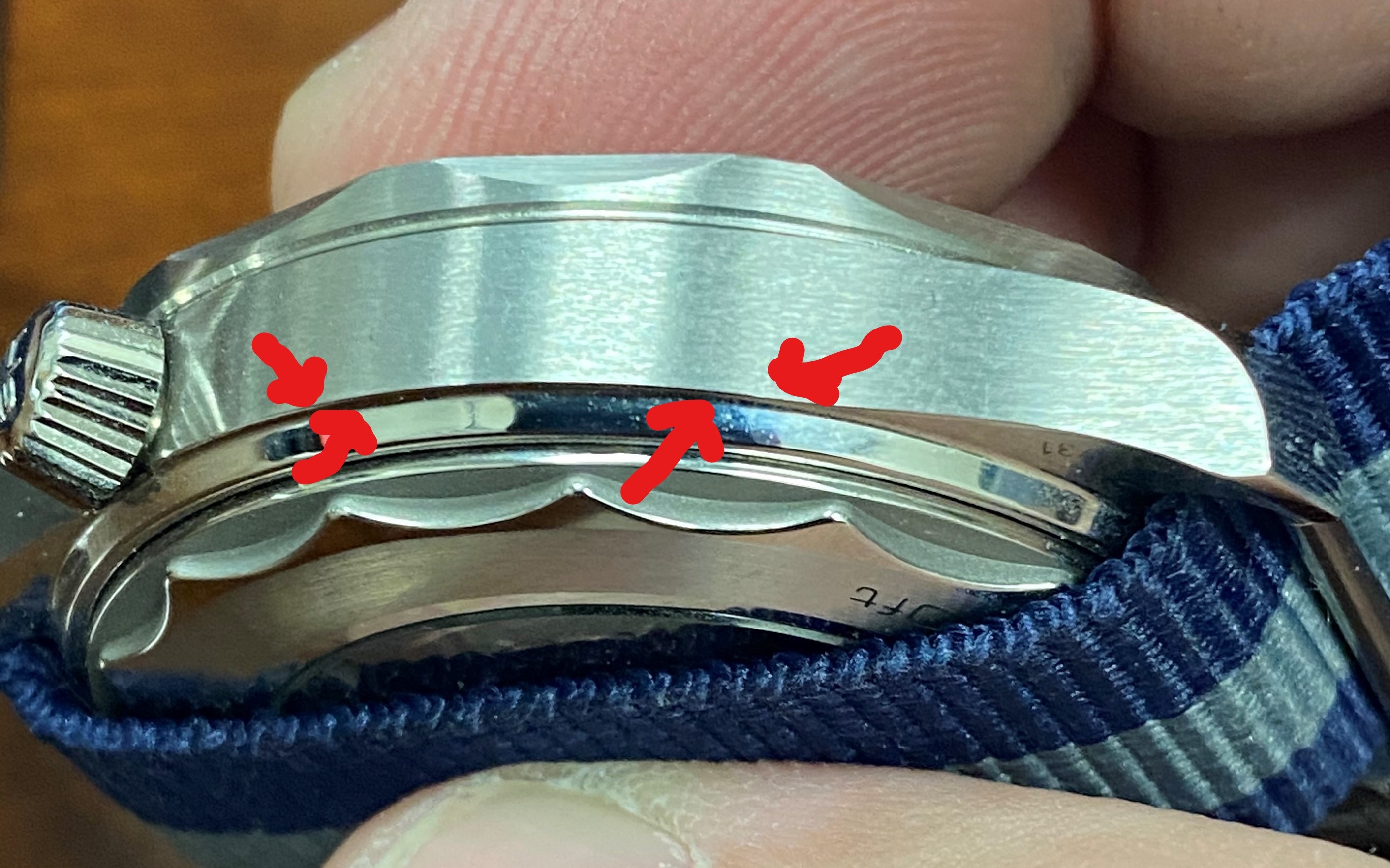 Is this edge sharp only on my watch? It's only on this side, in this area. It doesn't carry onto the lugs. Can you check yours and see if it's remarkably sharp?