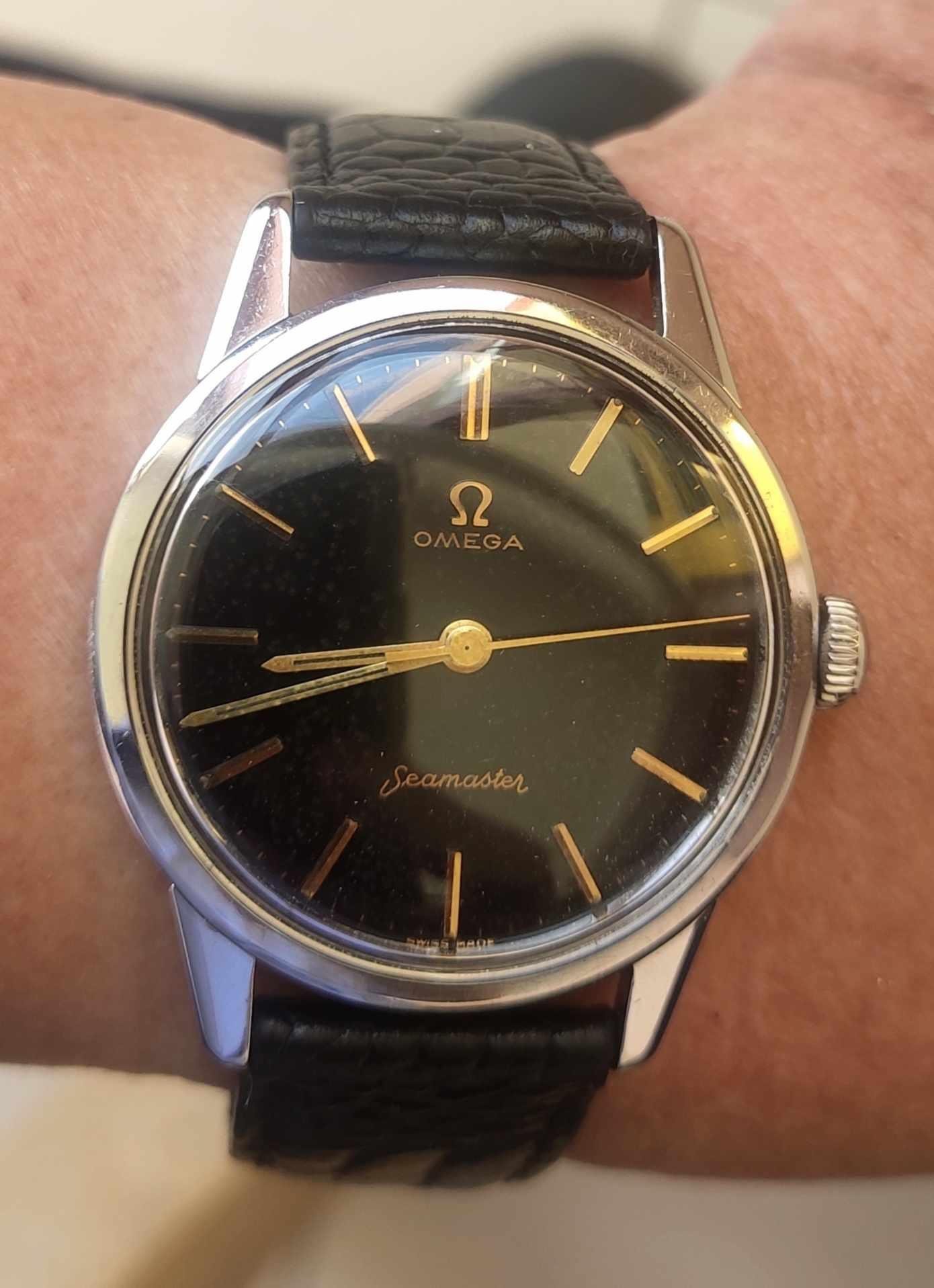 I need a new band that will complement it well. I’m leaning black in lizard or croc, but would love suggestions …