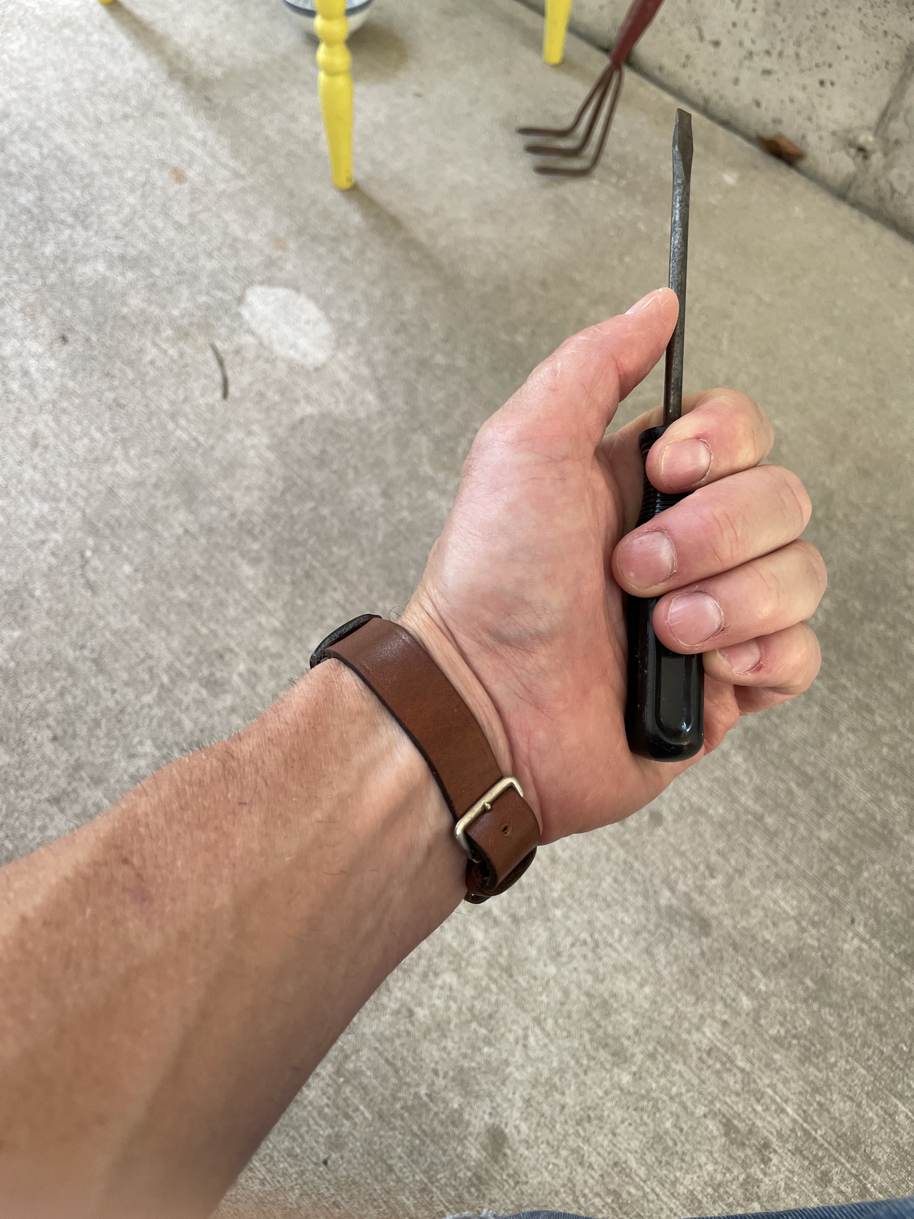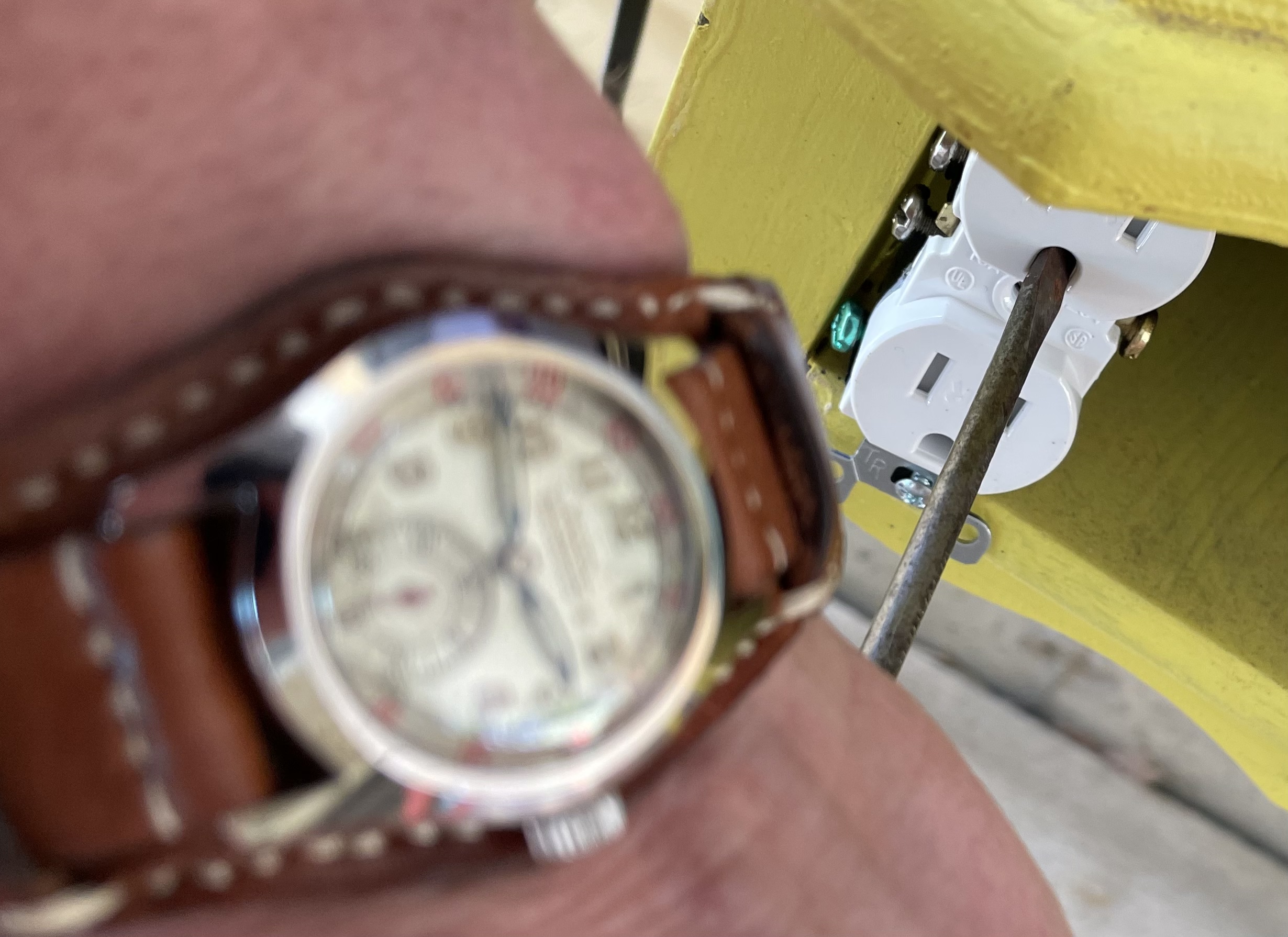 Screw driver has an insulated handle. My test volunteer should be ok. Yep! Watch still works. I may need another volunteer.
