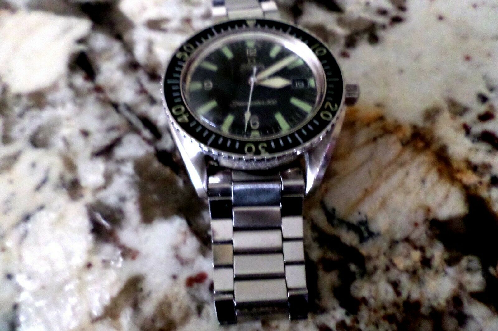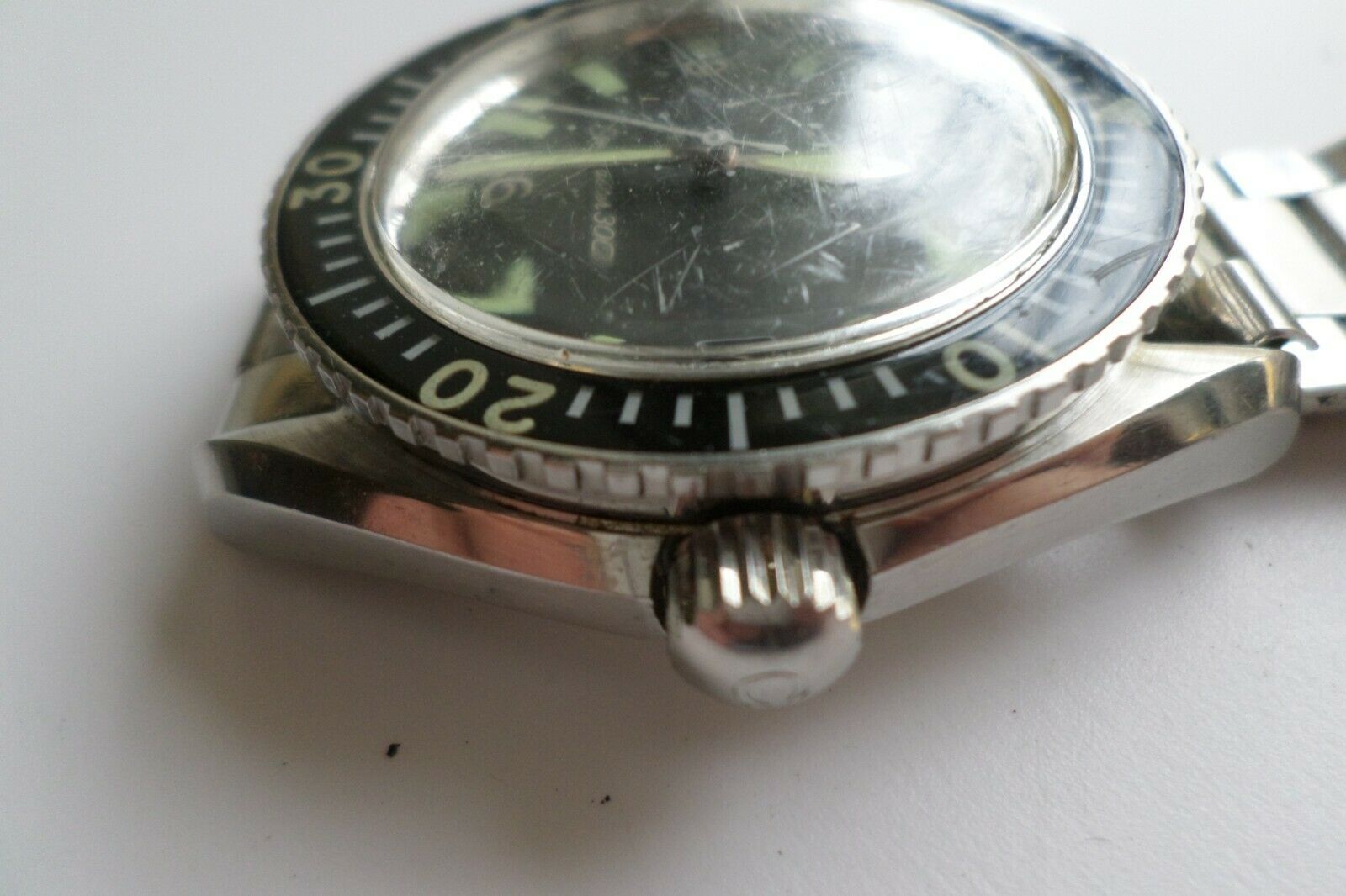 鈥淓xcellent condition running as it should and keeping time, gasket has deteriorated and end piece slipped down and must be brought up by the slight dent you can see in the bracelet. Has minor surface scratches on crystal. This has been a well taken care of watch. Look at all pictures and decide for yourself if it's for you. Any questions, please ask me. Selling as shown per description. This is a good watch and hasn't been messed with.