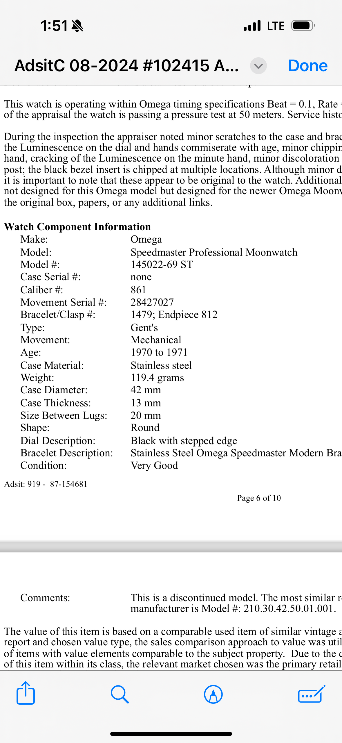 Sorry I don’t have the serial numbers as I don’t want to open the back of the case myself and wanted the professional do this during appraisal. The watch overall is in working condition. But with a loop you can see the hands illuminating is worn and cracked.