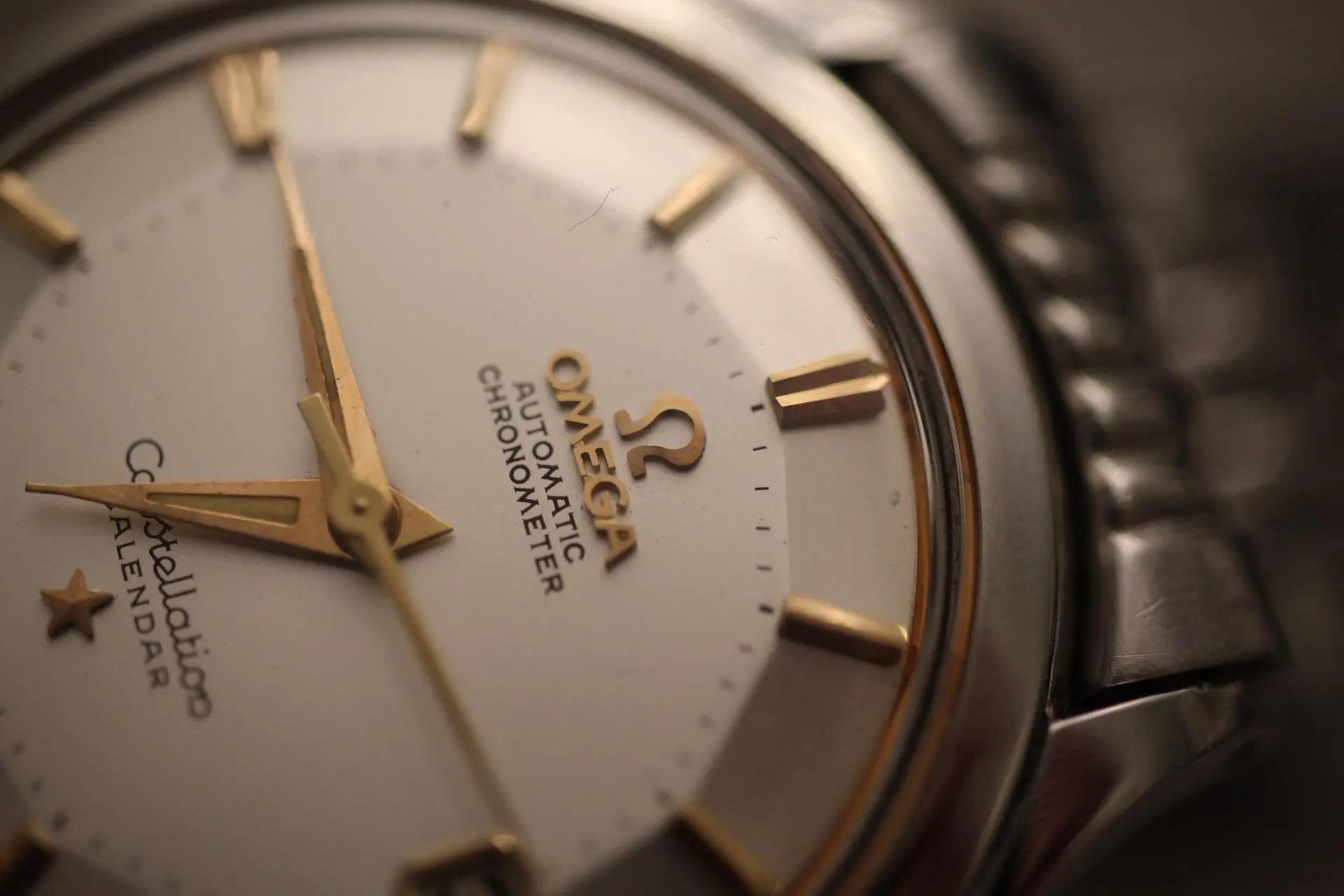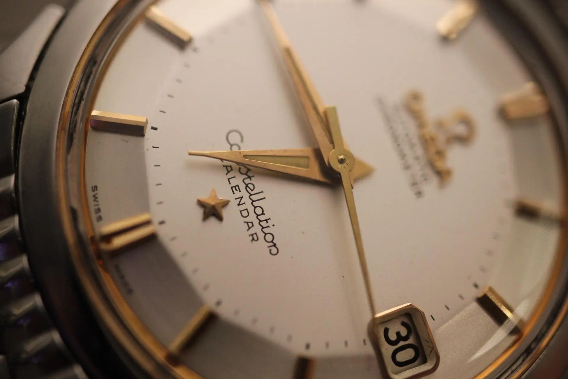 ·1958 Omega Constellation Pie Pan, ref: 2943-2-SC. Movement is Omega 504. It has a rare dial with rose gold indices, hands, and outer ring. Owner claims that it's all original minus, bracelet, acrylic and the seconds hand. Owner claims that dial is all original. What do you guys think? What is a reasonable price for a Constellation Pie Pan in this condition? I'm looking for expert eyes and some guidance. Thanks in advance