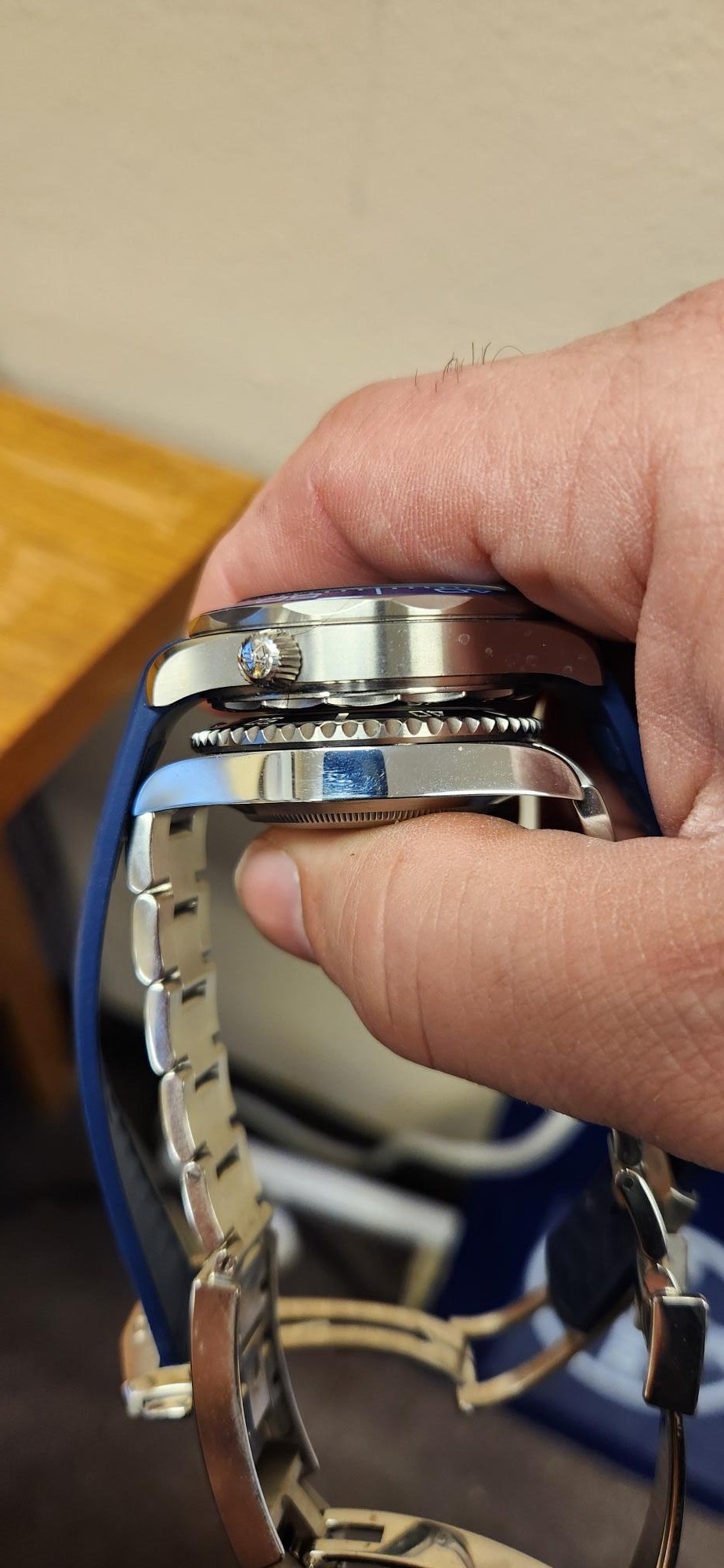 My primary point, is that opposed to my previous expectations of them being very similar almost duplicate roles in a collection, they don't. I might think the sea dweller and the SMP would be more comparable to each other as they seem very similar size wise. But then again, I didn't find the size difference between an SMP and a PO to be that noticeable, I just felt the dial of the PO was too aggressively styled for me.