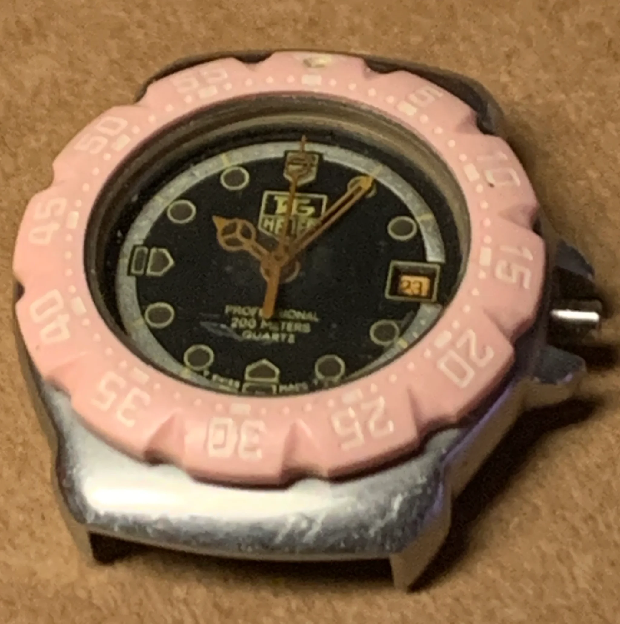 First, a blurry lady's dynamic with a set of 3 straps. It comes quite blurry, with a broken crystal, but with what looks like the coolest color scheme. All this for $125!