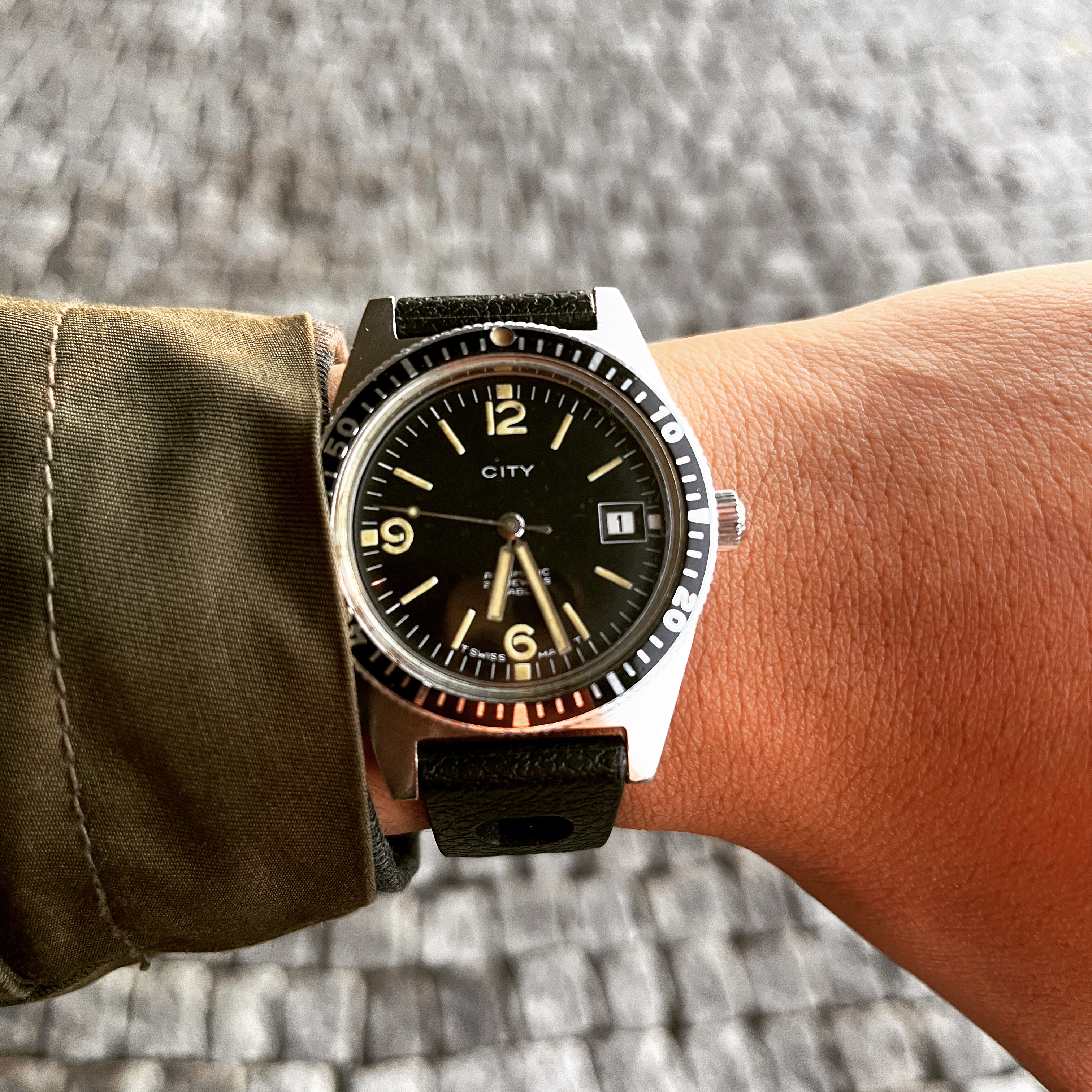 ·I'm a vintage watch guy, partly because they fit my 6.5" wrists better than most modern watches. I love a low-profile lightweight watch, but sometimes I need good water resistance (rainy day, not deep-water diving).