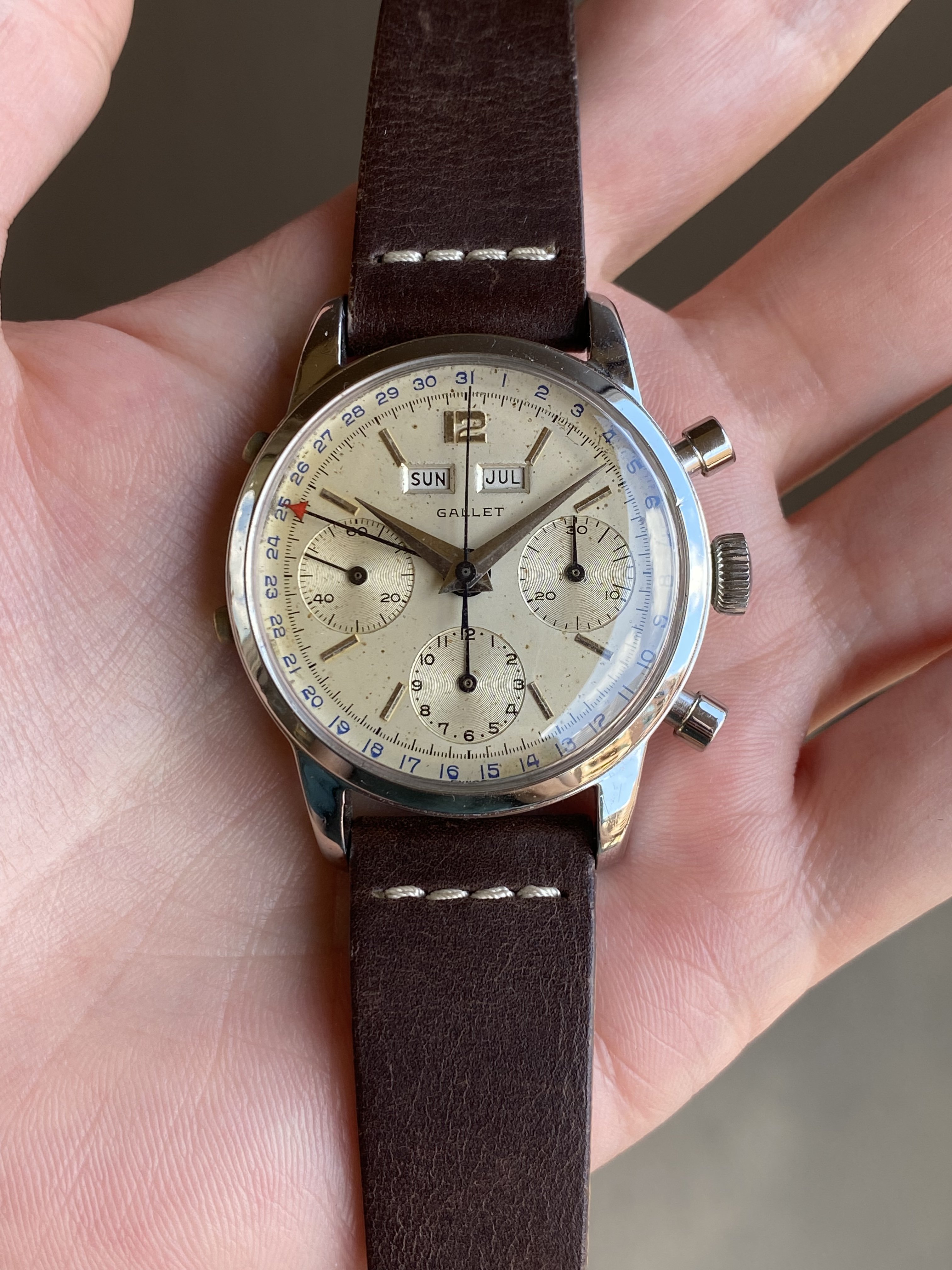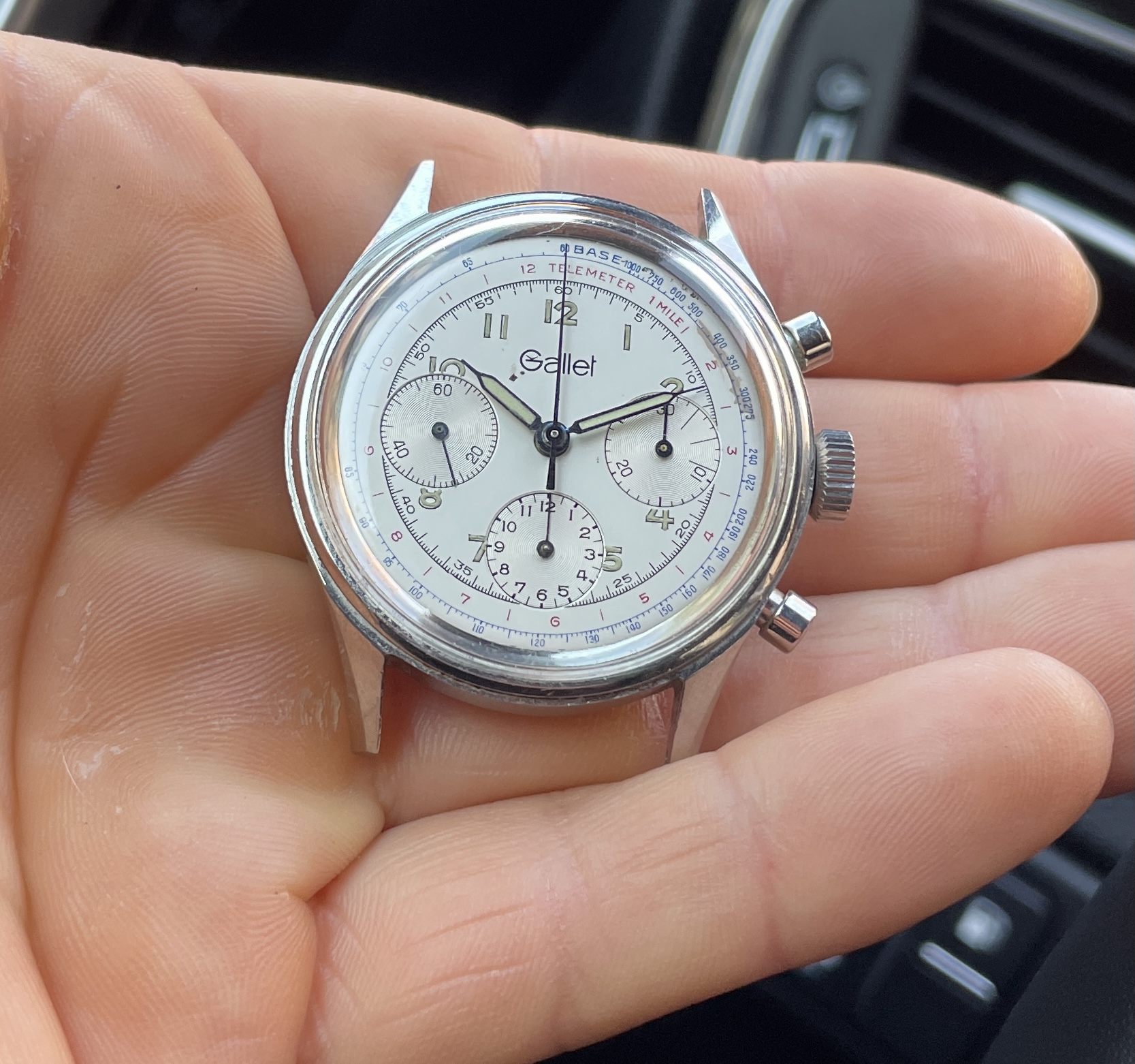 And mine is not perfect, there is a stain at the base scale at 2 o’clock and something below the logo. But I would sell it for 4k any day!