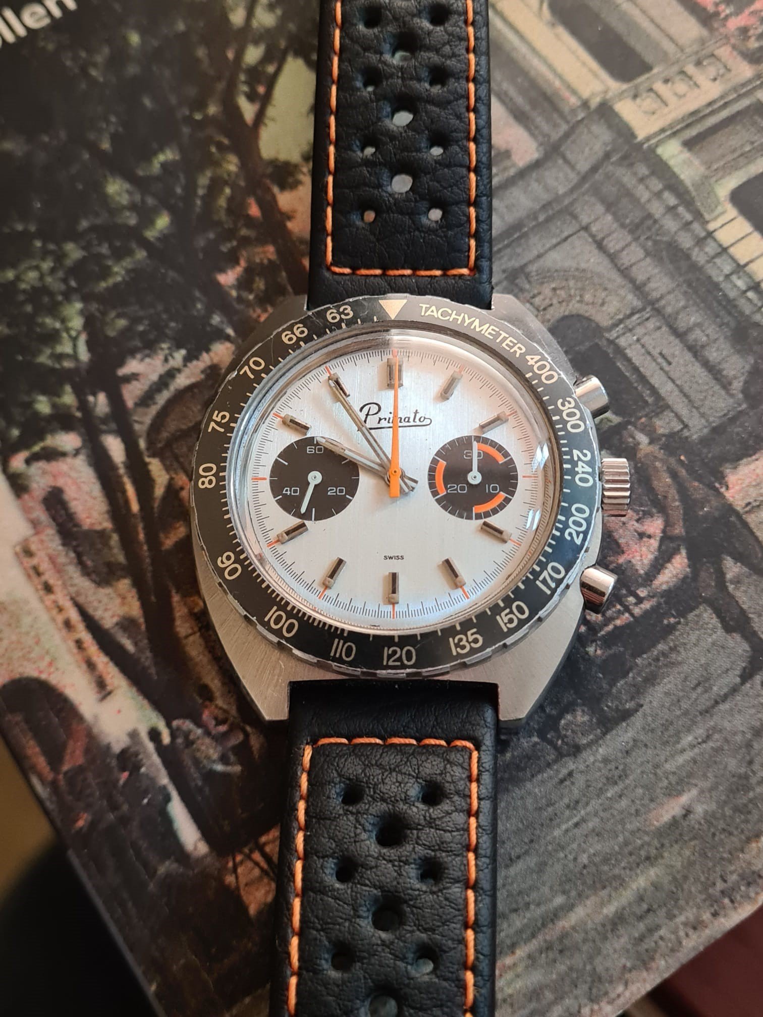 ·New acquisition, which is the poor man's "Orange Boy" 73363, as featured at On the Dash (http://www.onthedash.com/chronograph/poor-mans-autavia-primato-73363/). Curiously enough, this same watch was sold by an OF member back in 2019 to a non-OF buyer. Happily, it has now returned to the fold!