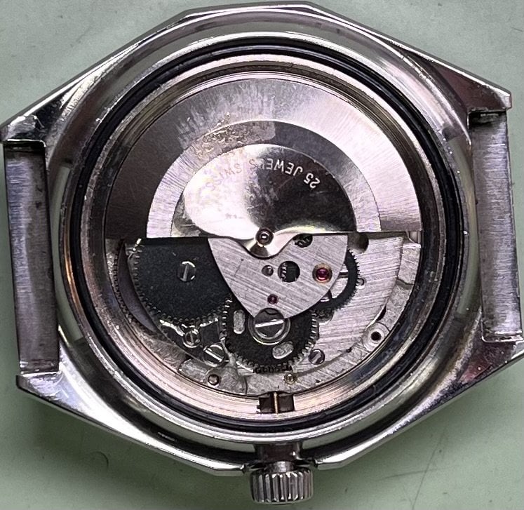 Movement: A. Schild cal. 2066 25 jewel unadjusted Automatic, 19600 bph