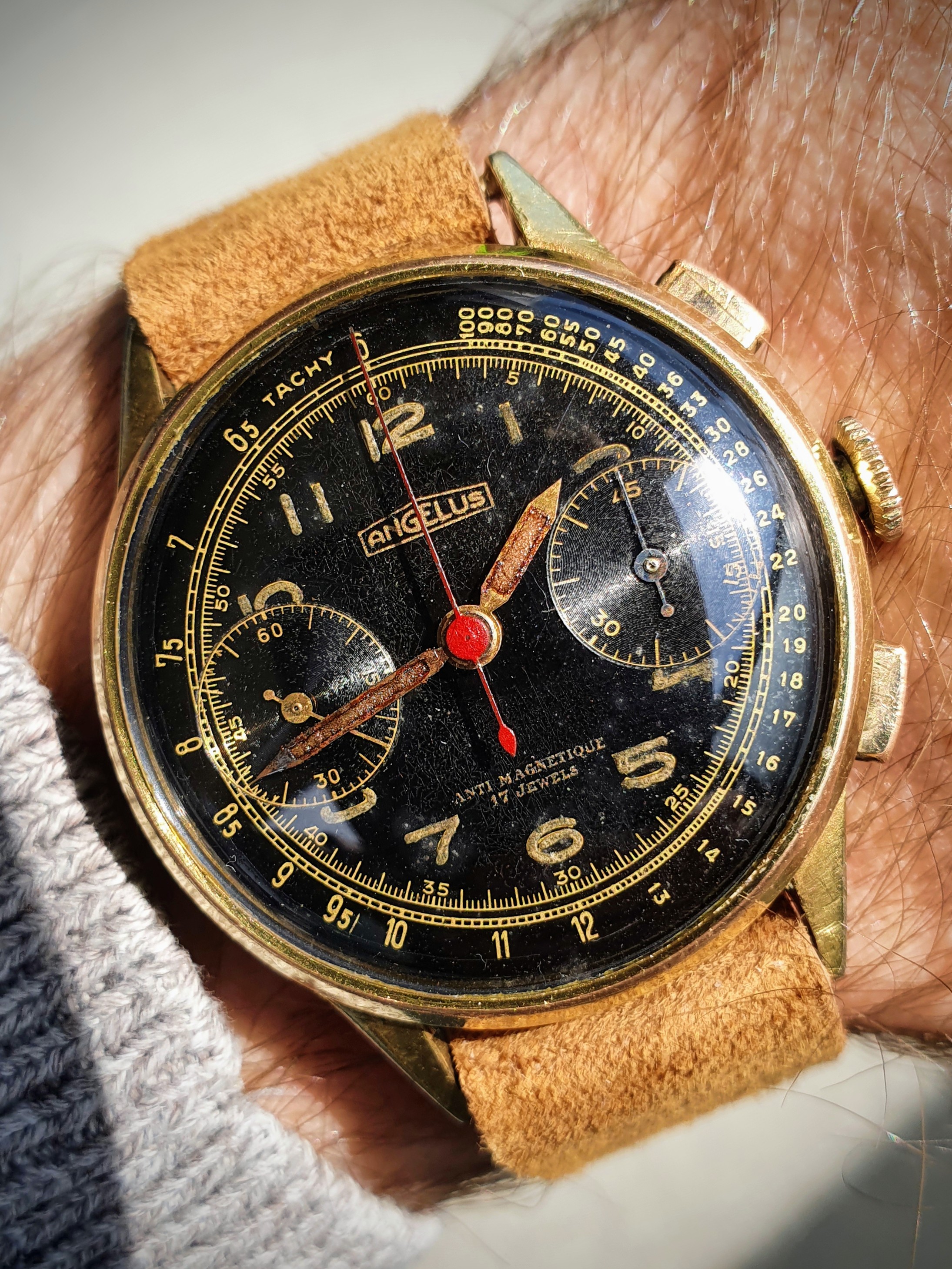 Posts 6,649 Likes 52,286 noelekal ·Dec 8, 2022·Home For Wayward Watches This is a great thread with enjoyable photos to study. Angelus is a brand that's been on my radar for some time, however I don't have an example ... yet.