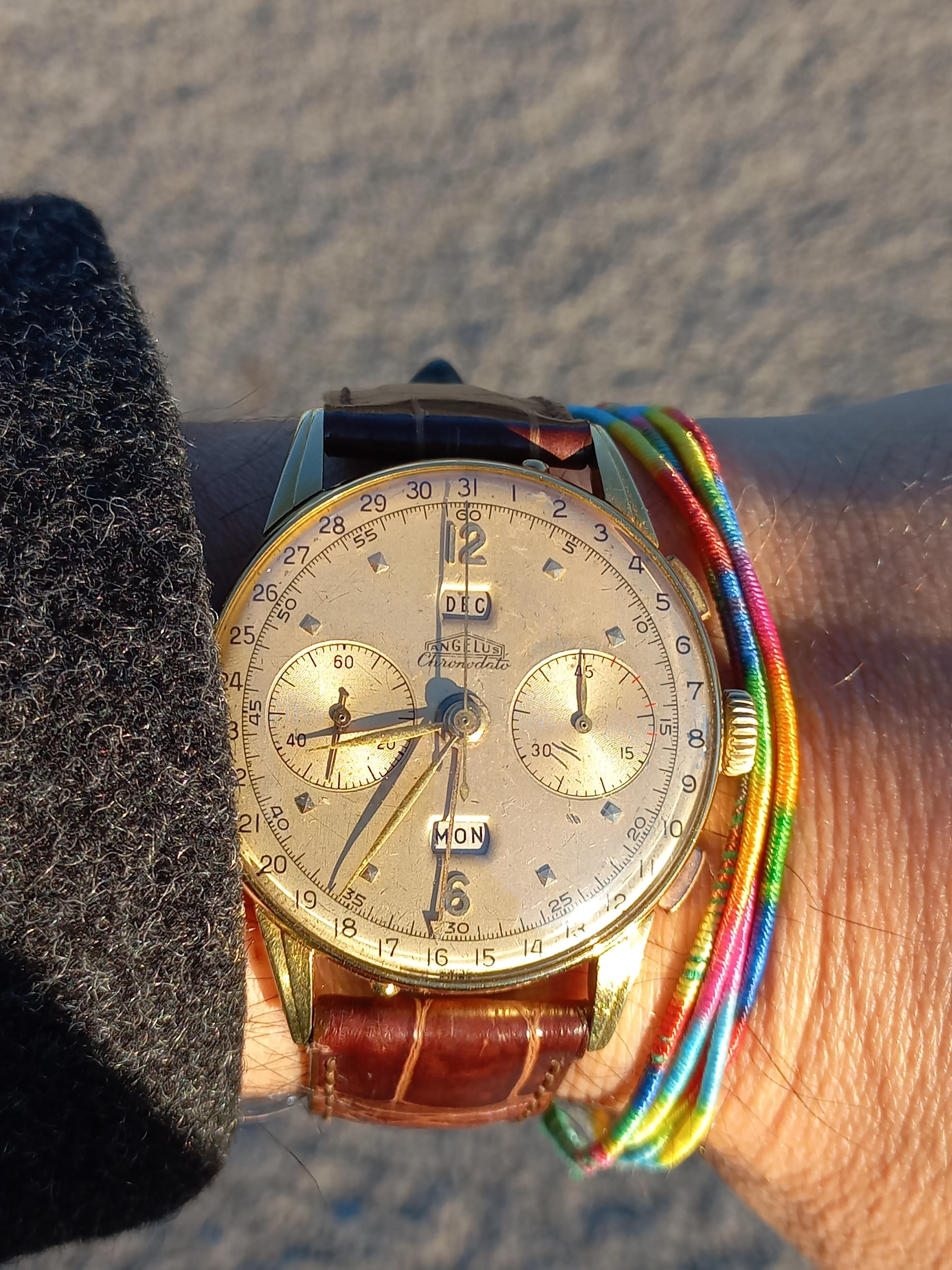 Posts 52 Likes 154 LRX_12 ·Apr 21, 2021 No more Angelisti sharing their beauties since 2018? Cannot belive this considering the amazing pieces they used to produce (I love the chronodato)! My cal. 210/215 "base 100" (decimal tachymeter scale) Anti Magnetique from the 30s! Love these gilt dials under the sun.