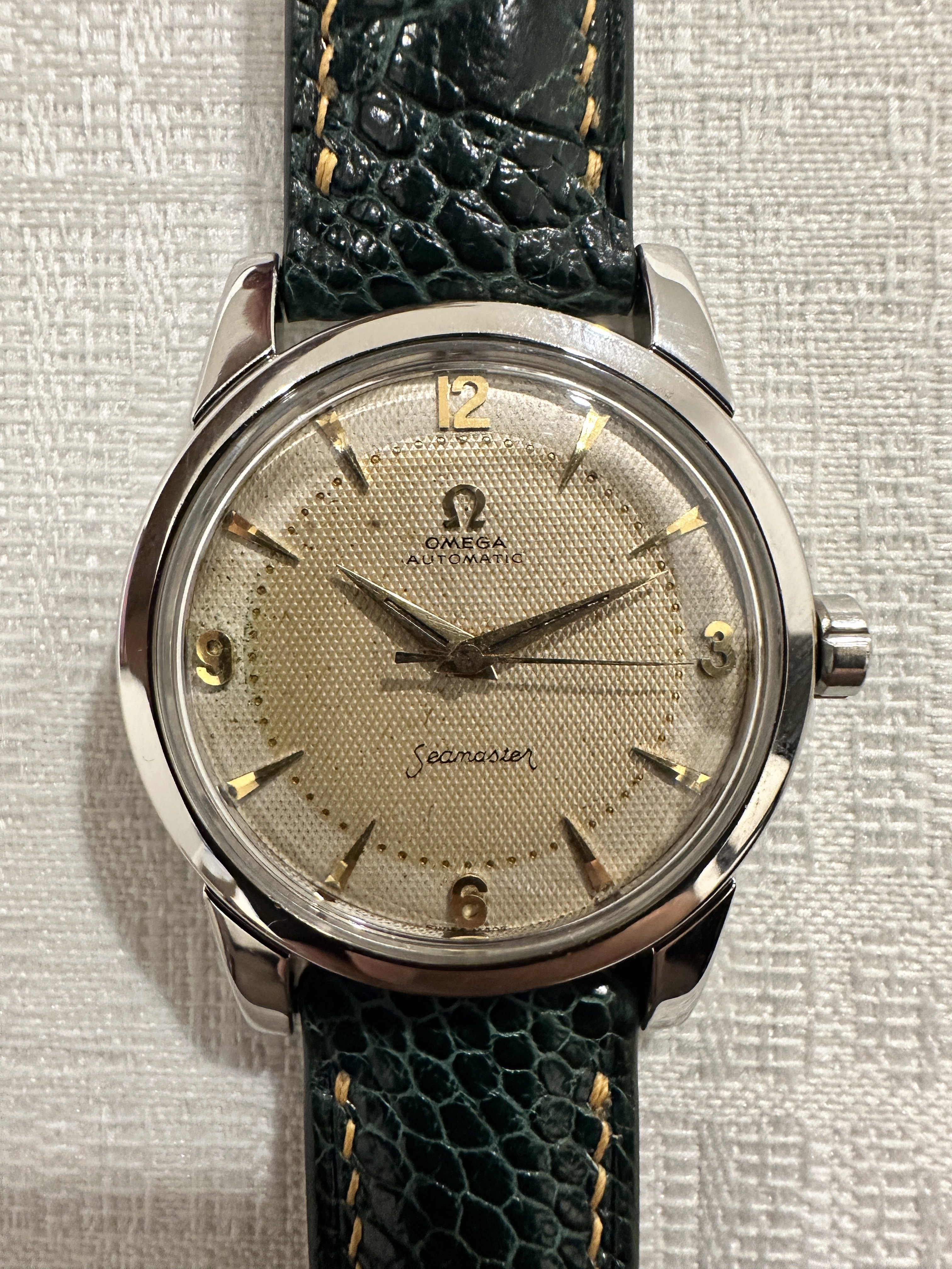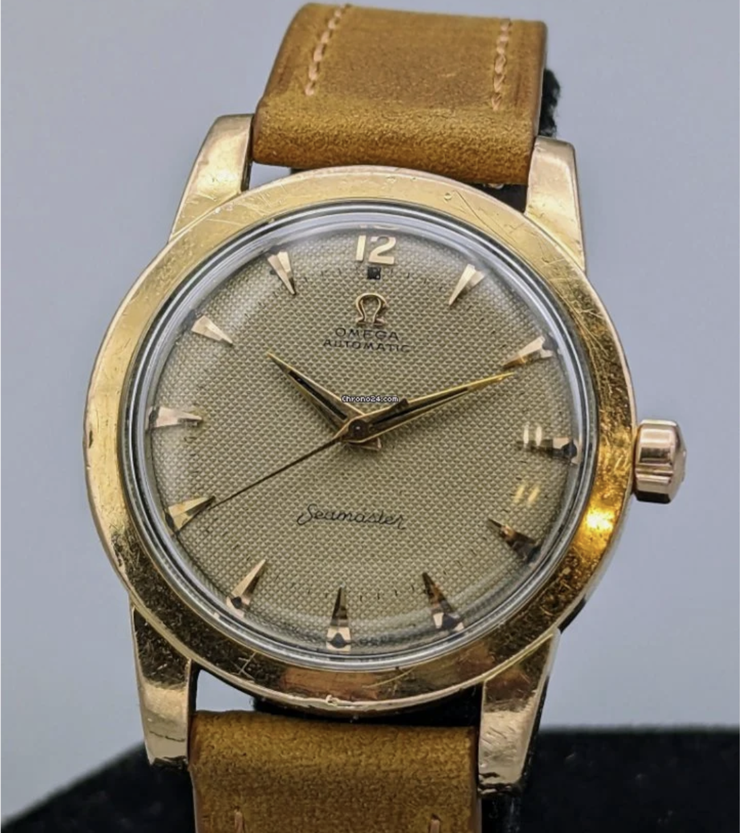 Hi all. After some opinions. I have enjoyed reading all the pages on this thread and really do.love the early 50s Seamaster. This is going to be my 1st vintage omega purchase so just want double check all is ok. Below is a 2577-15 gold cap I am looking at. I have not seen any others with just the number 12 and the black square underneath? It has the right circular brushed back and Seamaster script and location. Any views greatly appreciated.