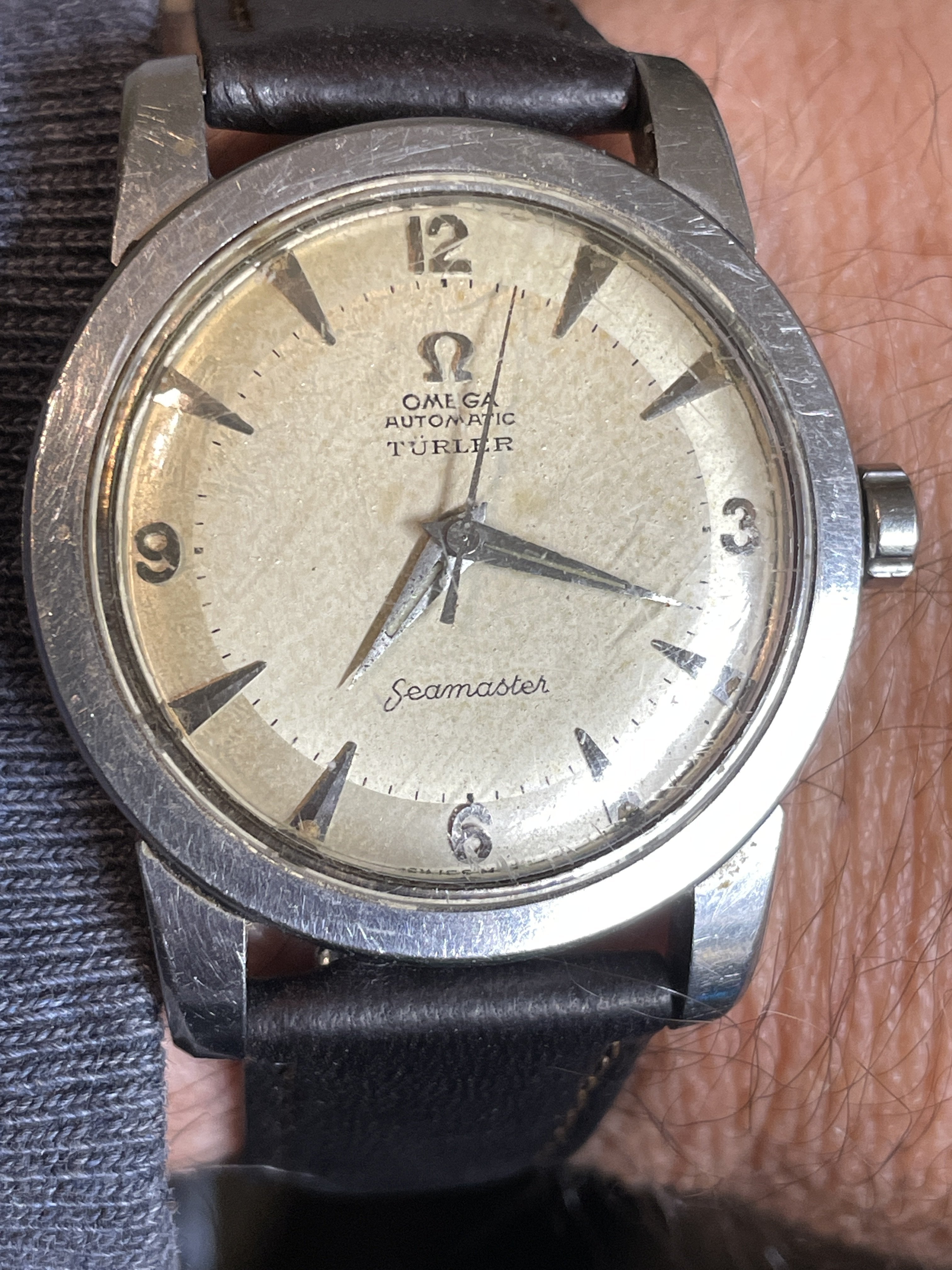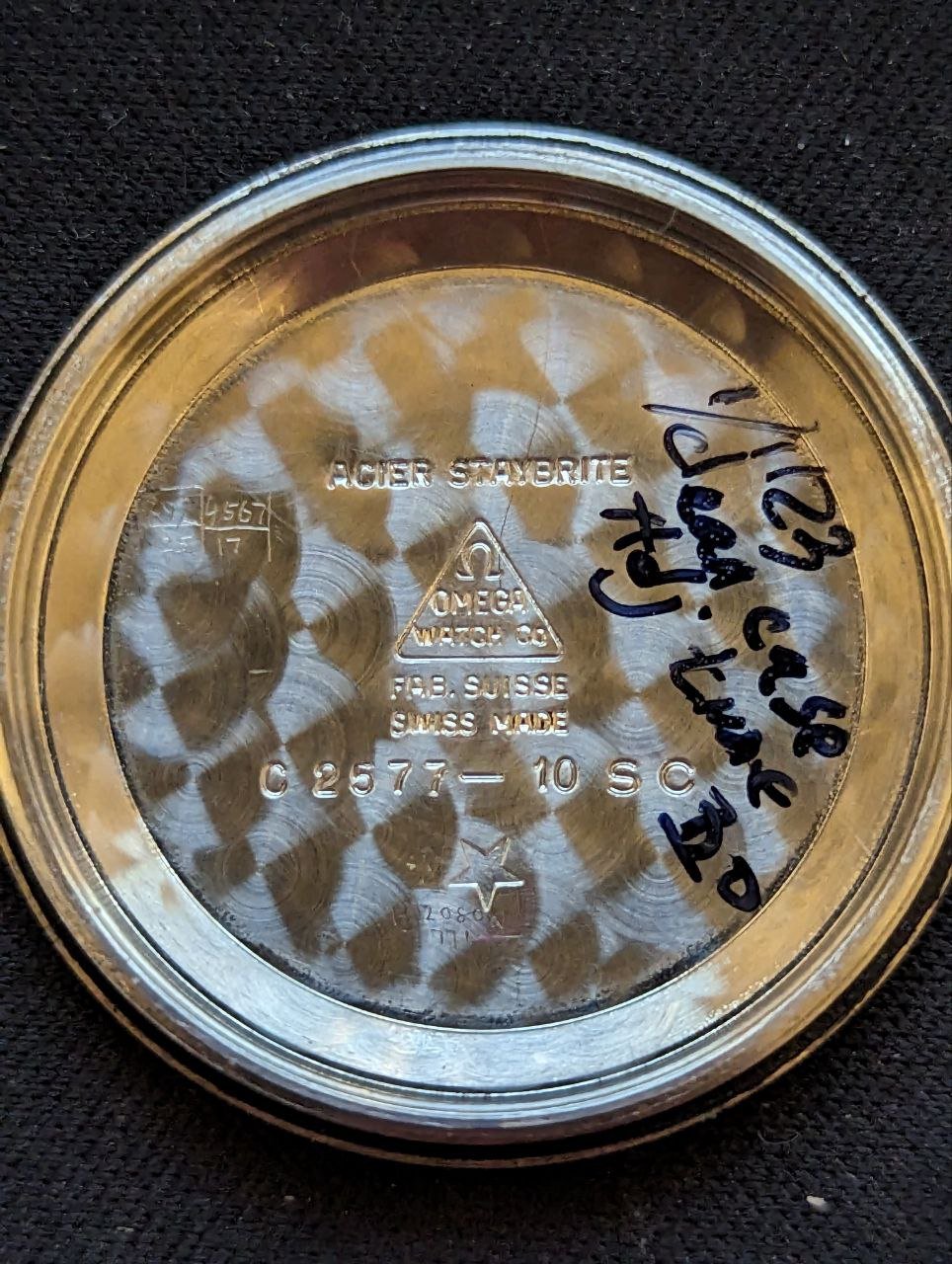 Of course, many were replaced during services in the meantime, and only the examples with the flat feet Omega logo are truly period correct. Personally, I wouldn’t push a good 2577 with a service crown out of bed: Replacements are relatively easy to find.