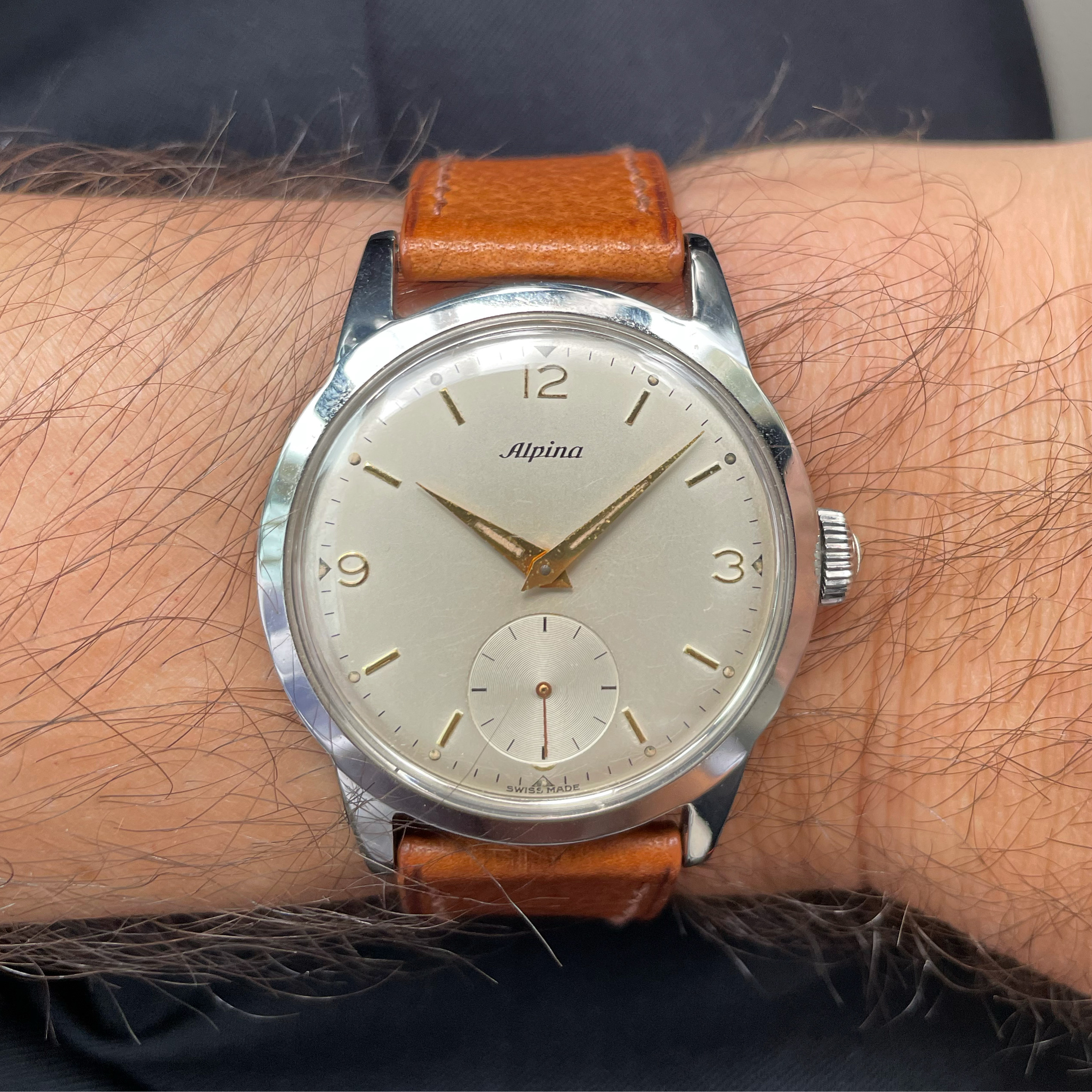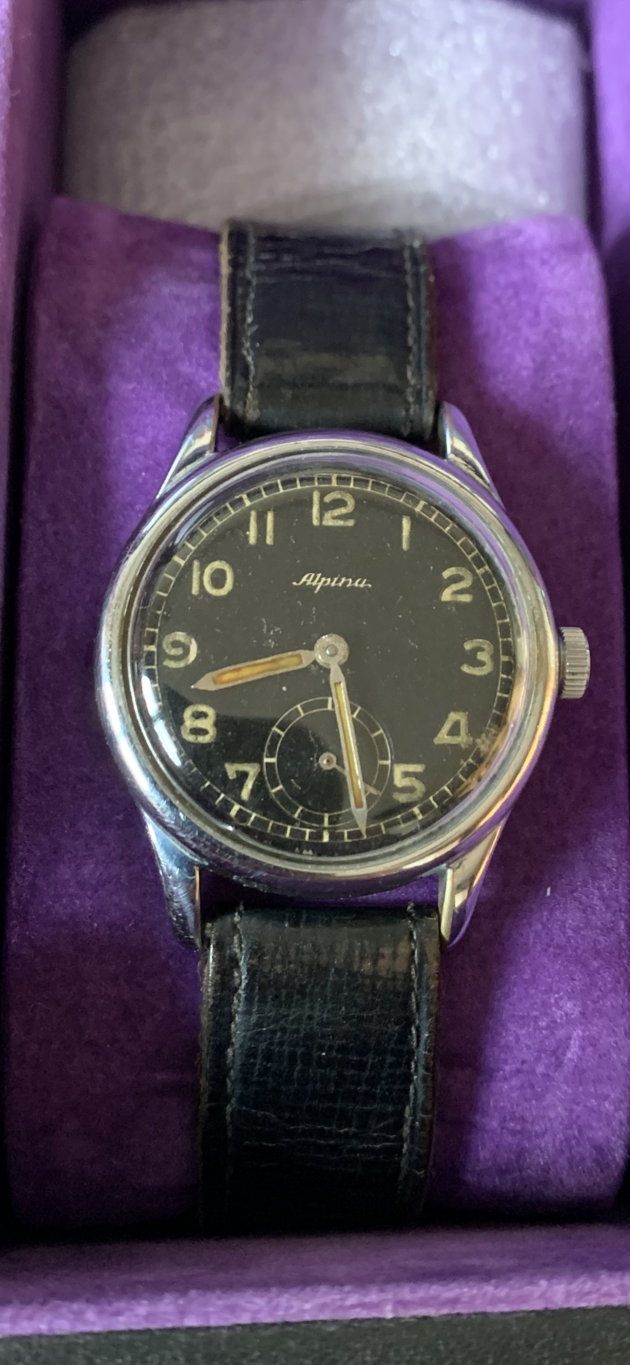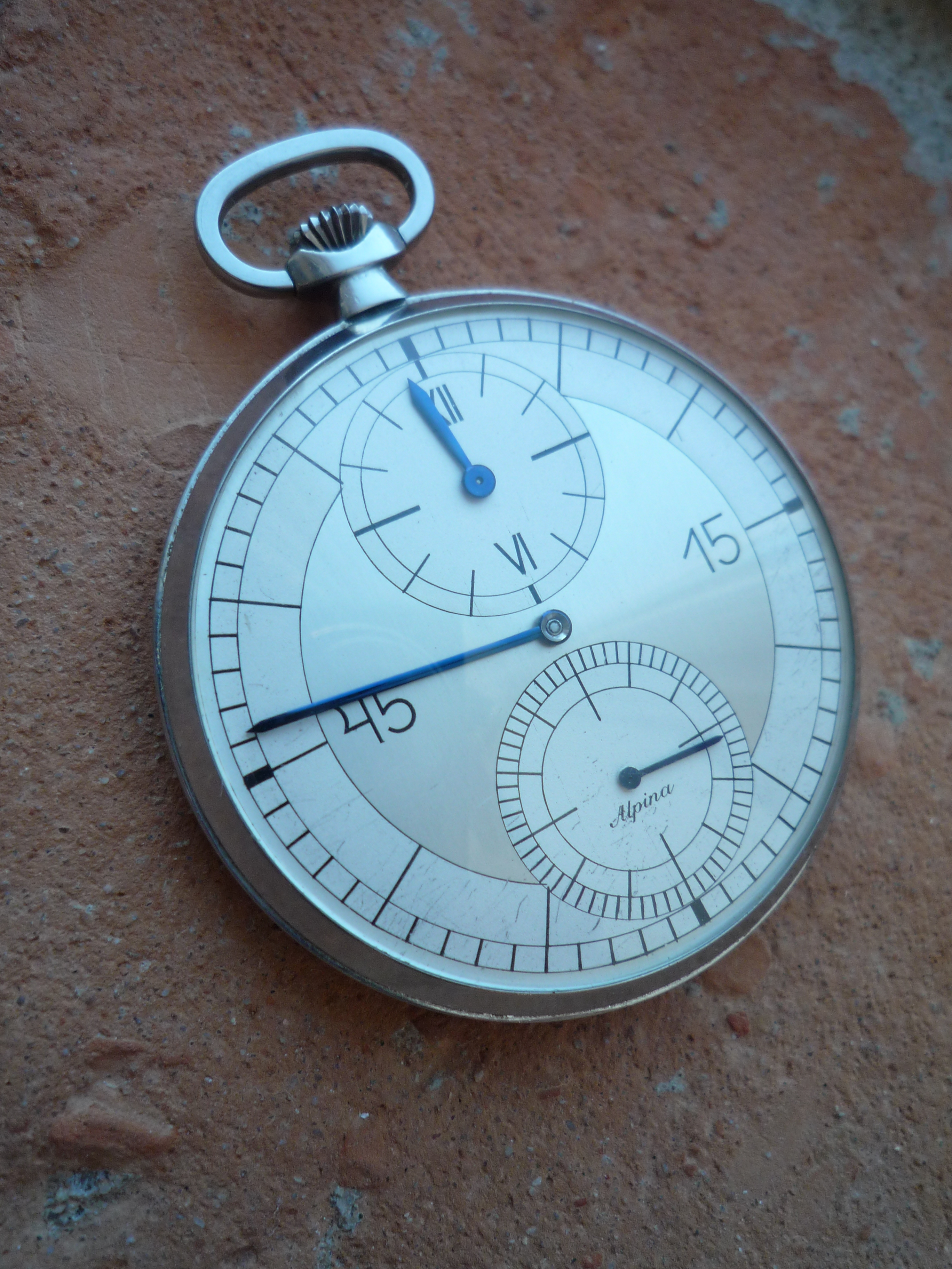This is one of my favourite Alpina Pocket Watches. You can stop the movement and have it set at exact time!