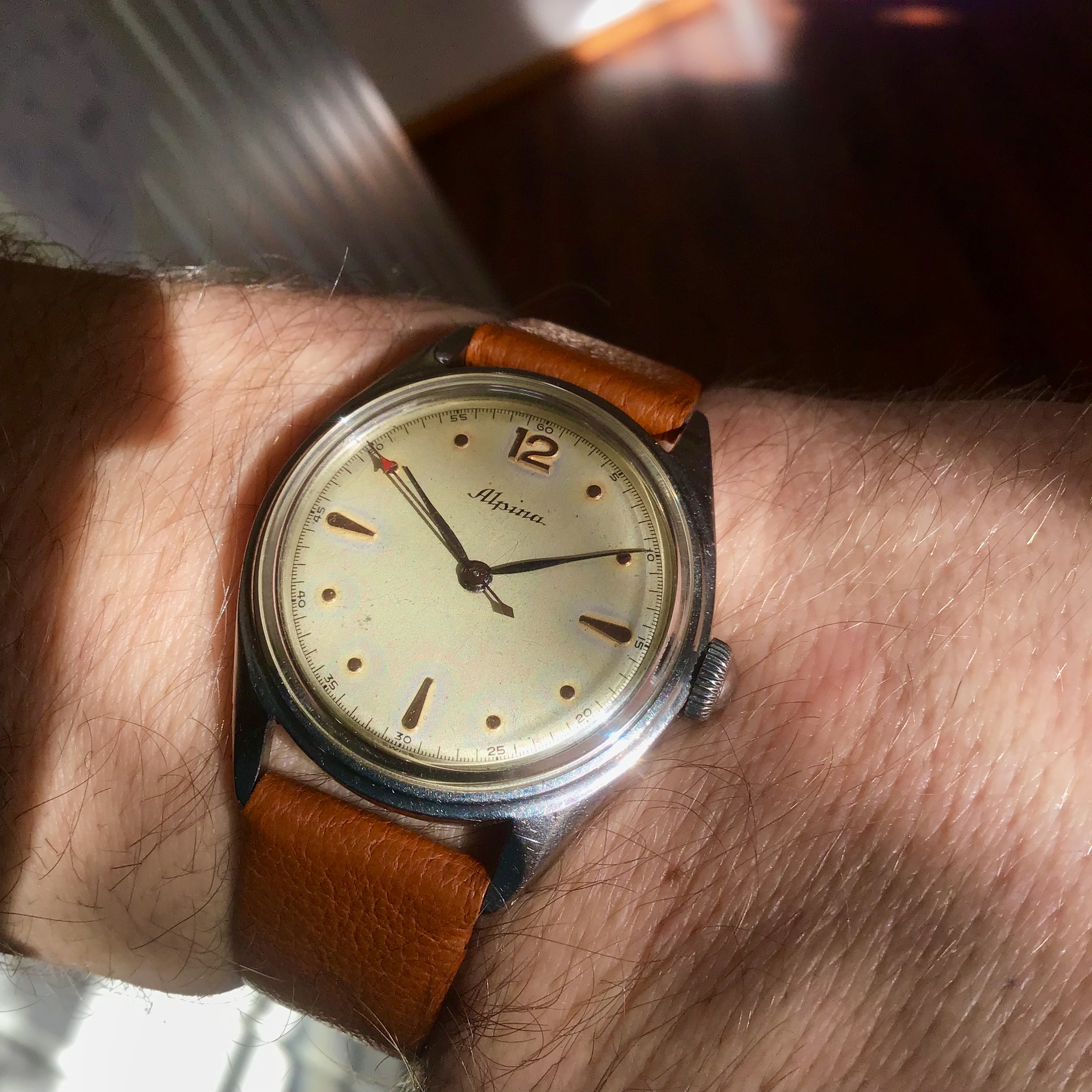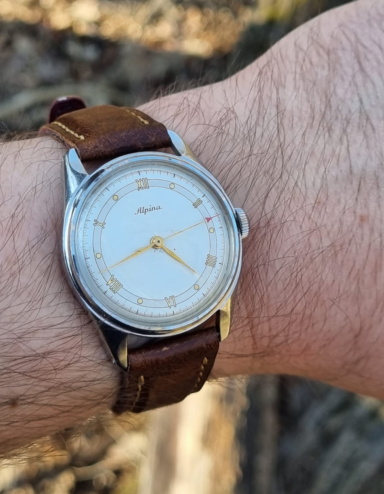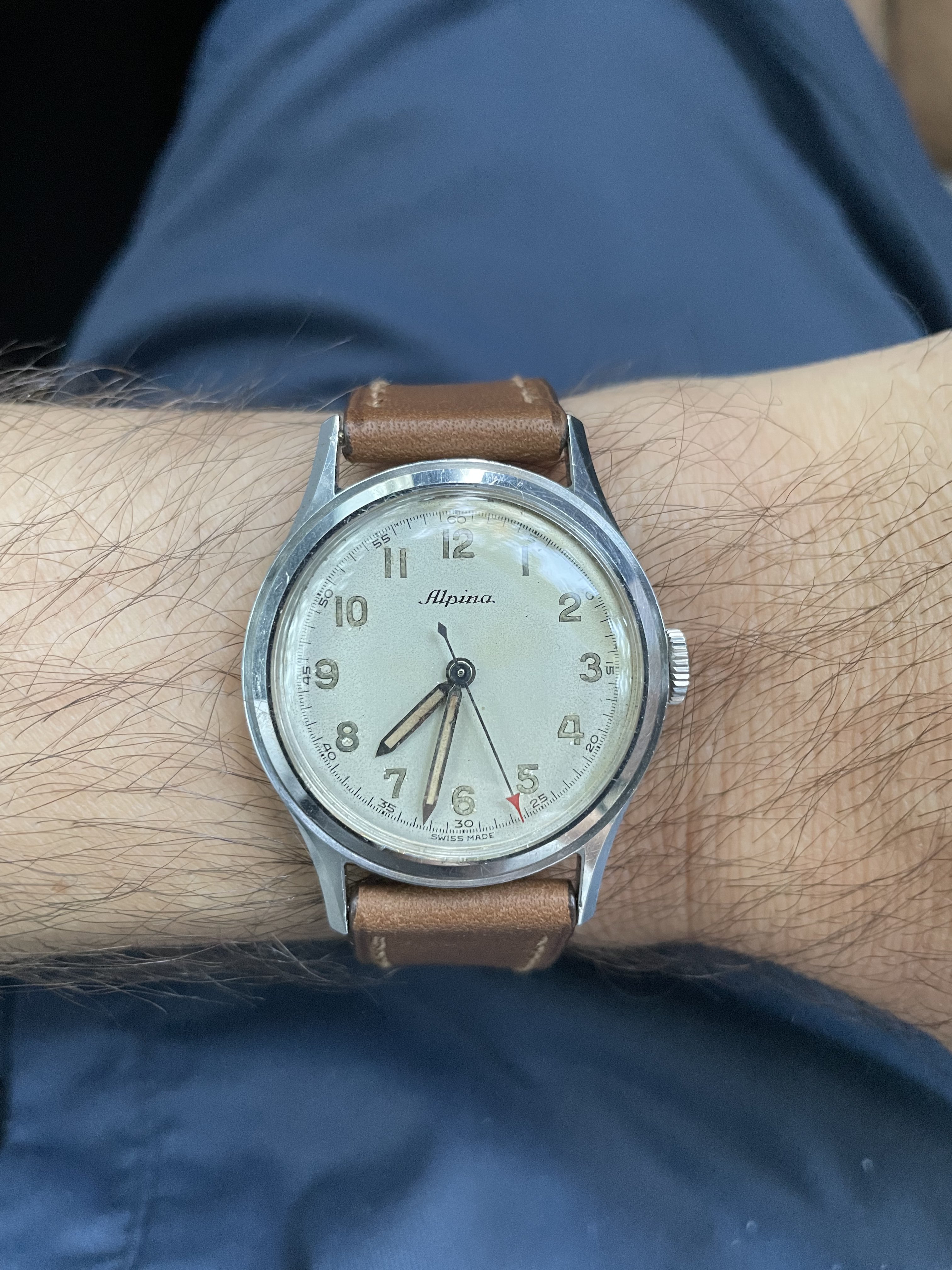 This is one of my favourite Alpina Pocket Watches. You can stop the movement and have it set at exact time!