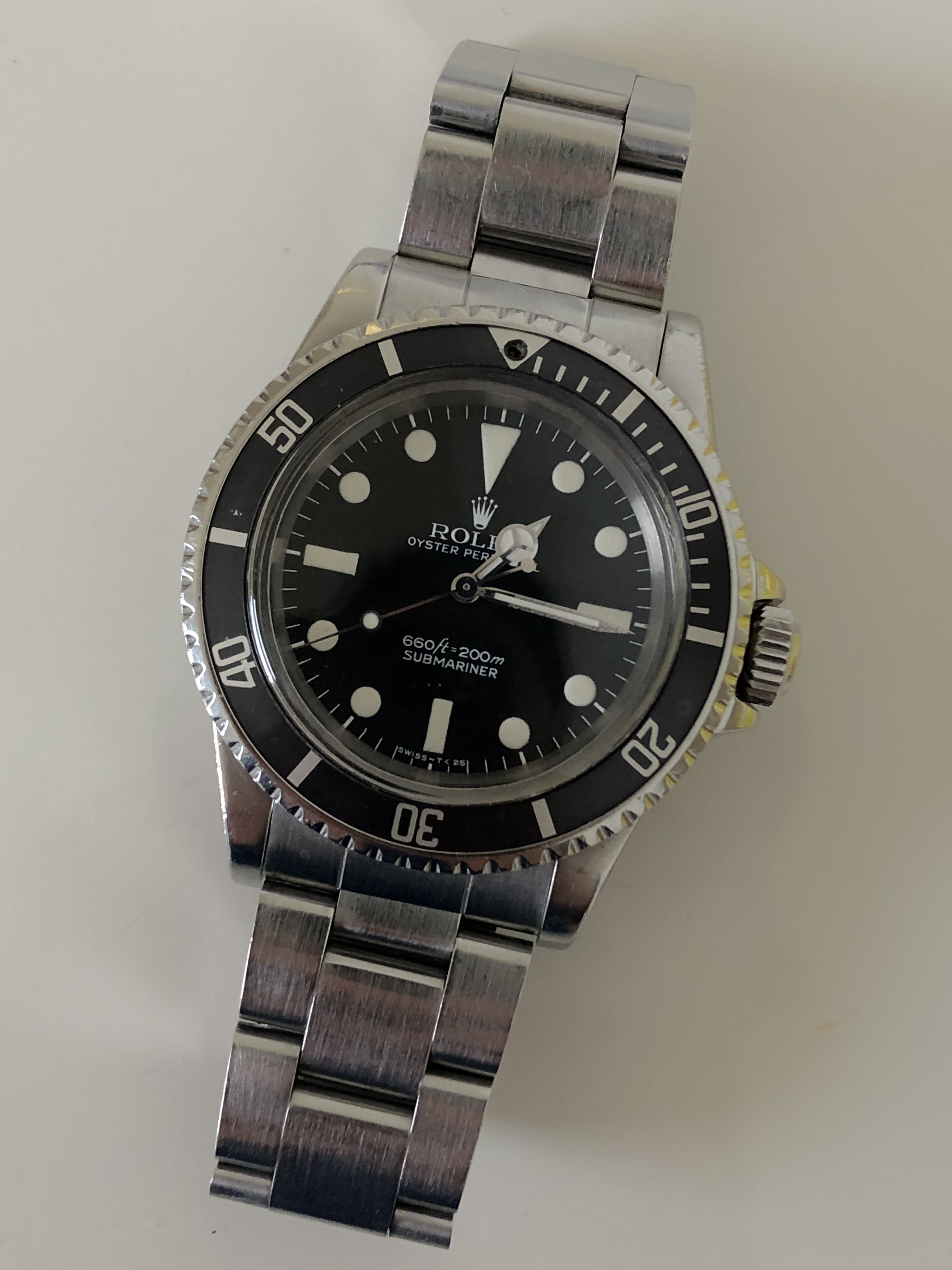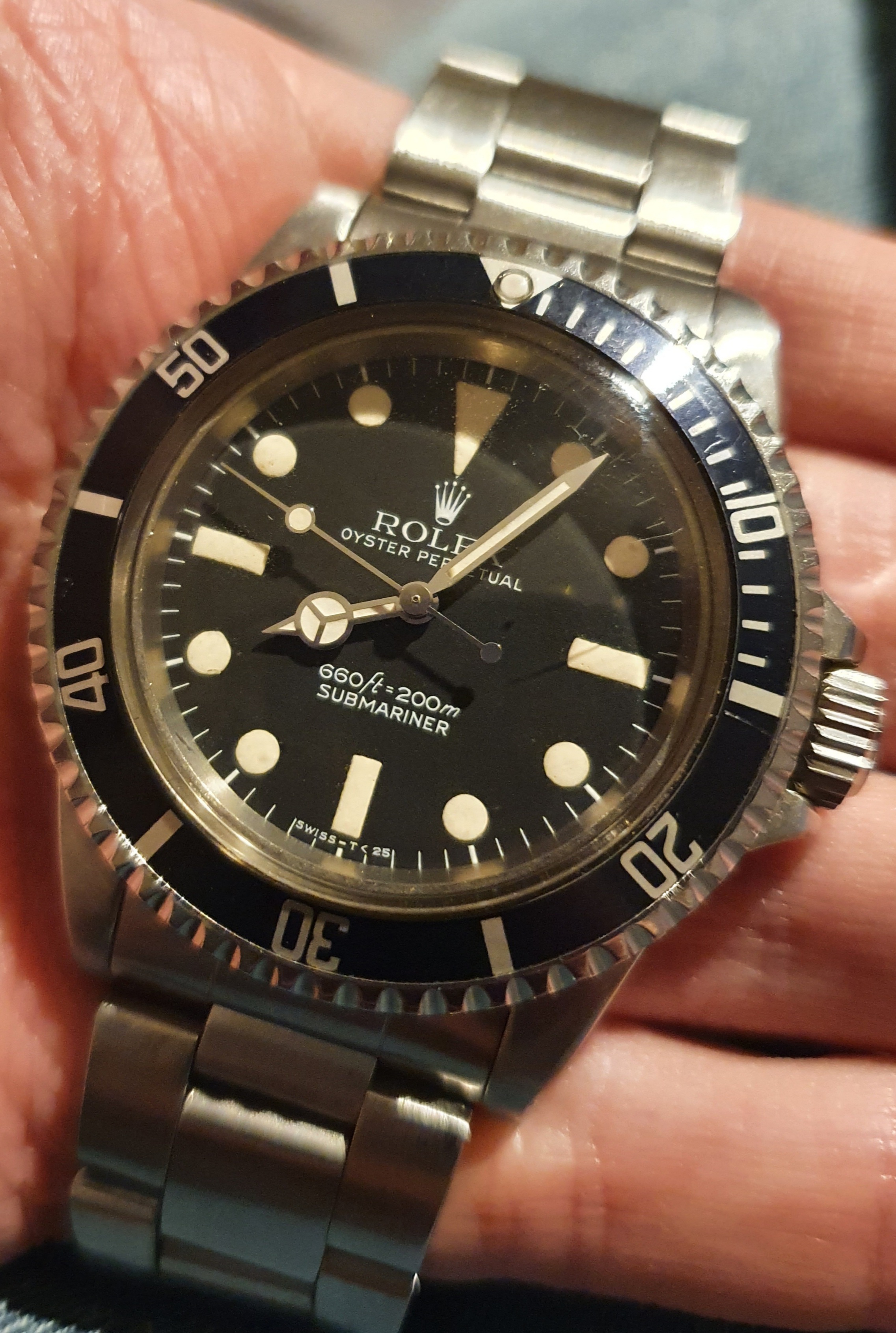 All of the important external bits are service replacements: bezel insert, dial, hands. Not sure about the crown. It has been polished, probably too much, and brushed, probably too much.