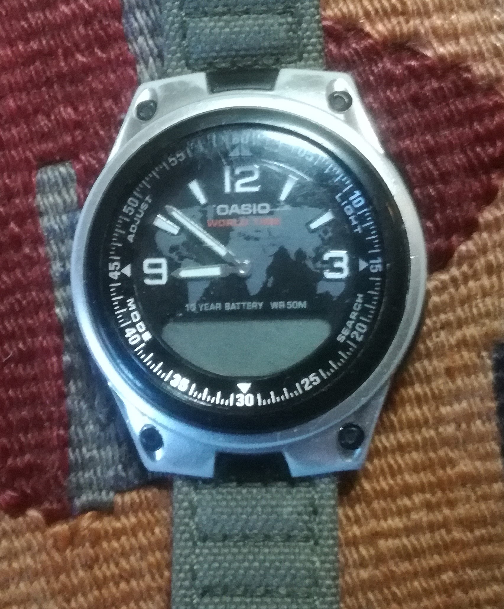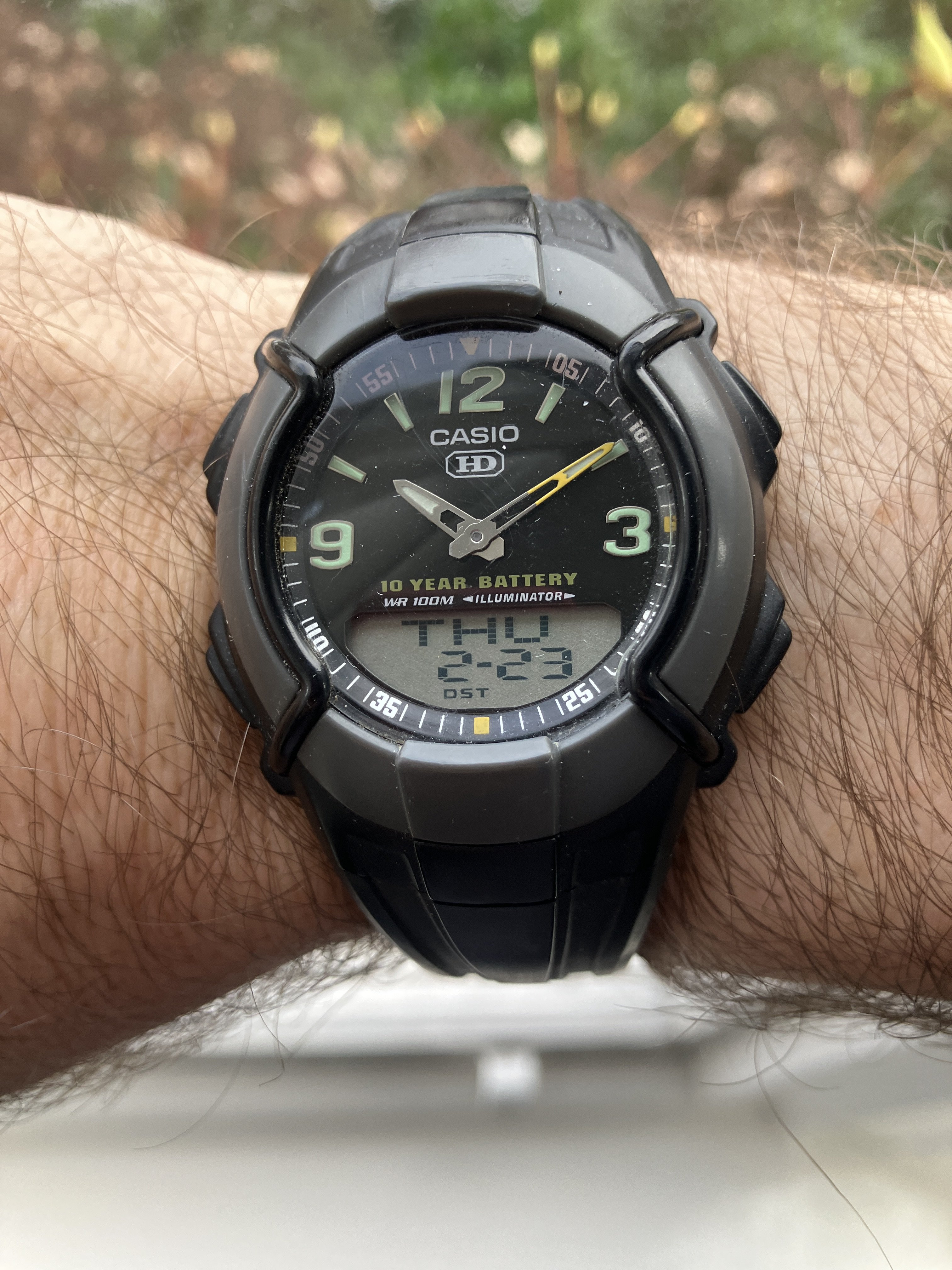 I guess I picked up this one 20 to 25 years ago. Long before my interest in collecting. I needed something suitable for travel, including skiing and cycling, that wasn't likely to be wrenched off my wrist at knifepoint and that I wouldn't miss if I accidentally left it in the scanning tray at the airport. It's still my go to for travel or when I'm working in the garden or DIY, and I've grown to rather love it. I present to you My Casio HDC 600. Thank goodness I still have the manual because for the life of me I'd still have no clue as to how to adjust it otherwise.