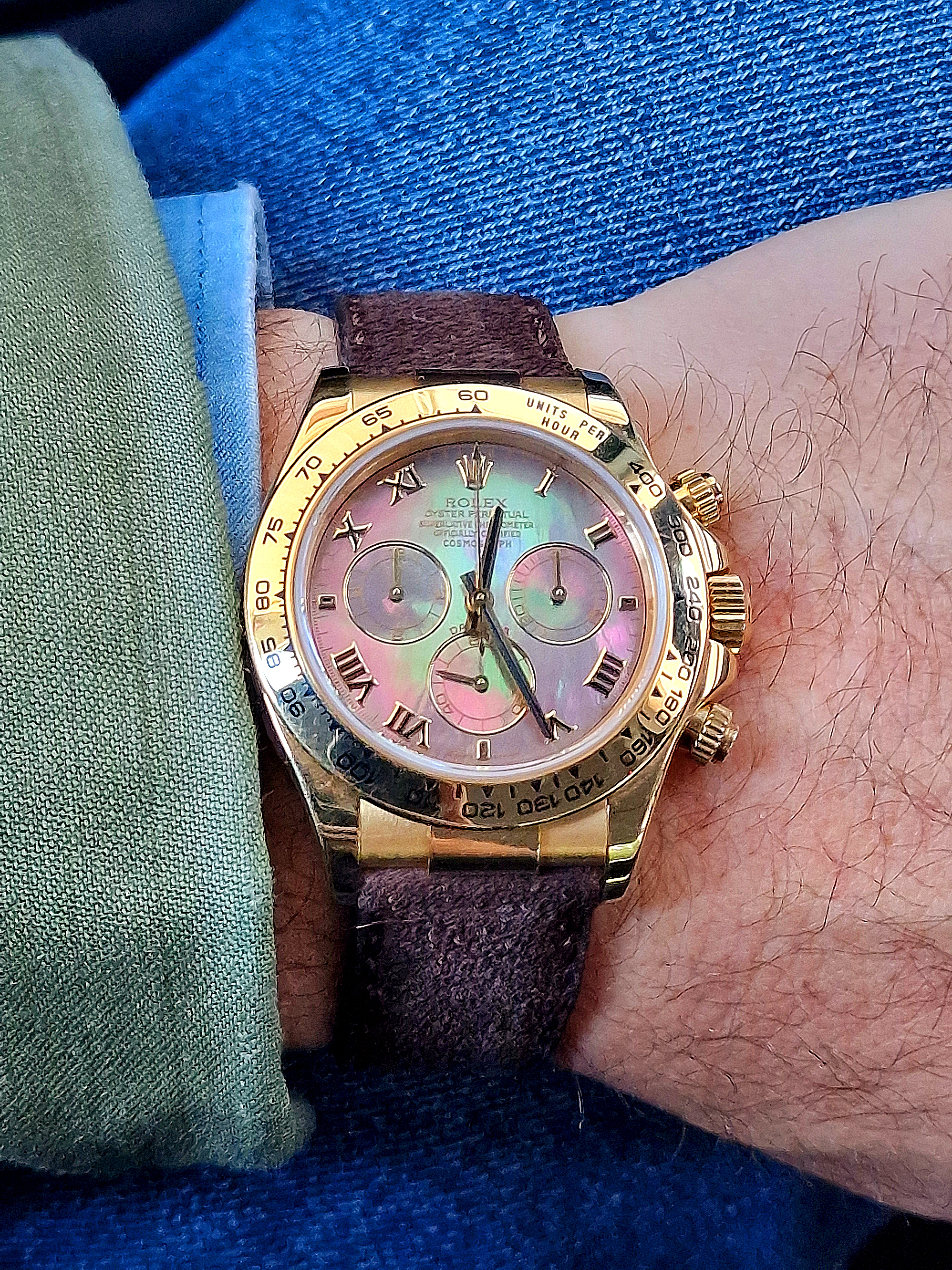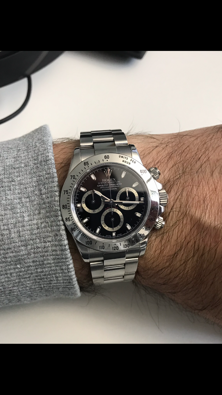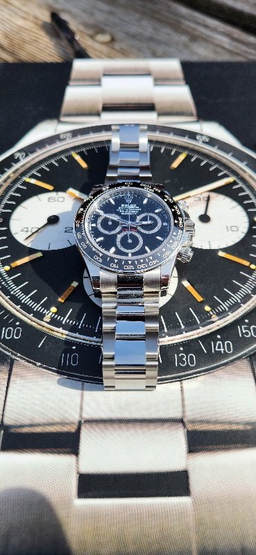 Posts 668 Likes 668 blueteg ·Sep 30, 2024 Some of the lugs on the older Daytonas in this thread are giving me serious case envy! Here's my "tritinova" dial Daytona.