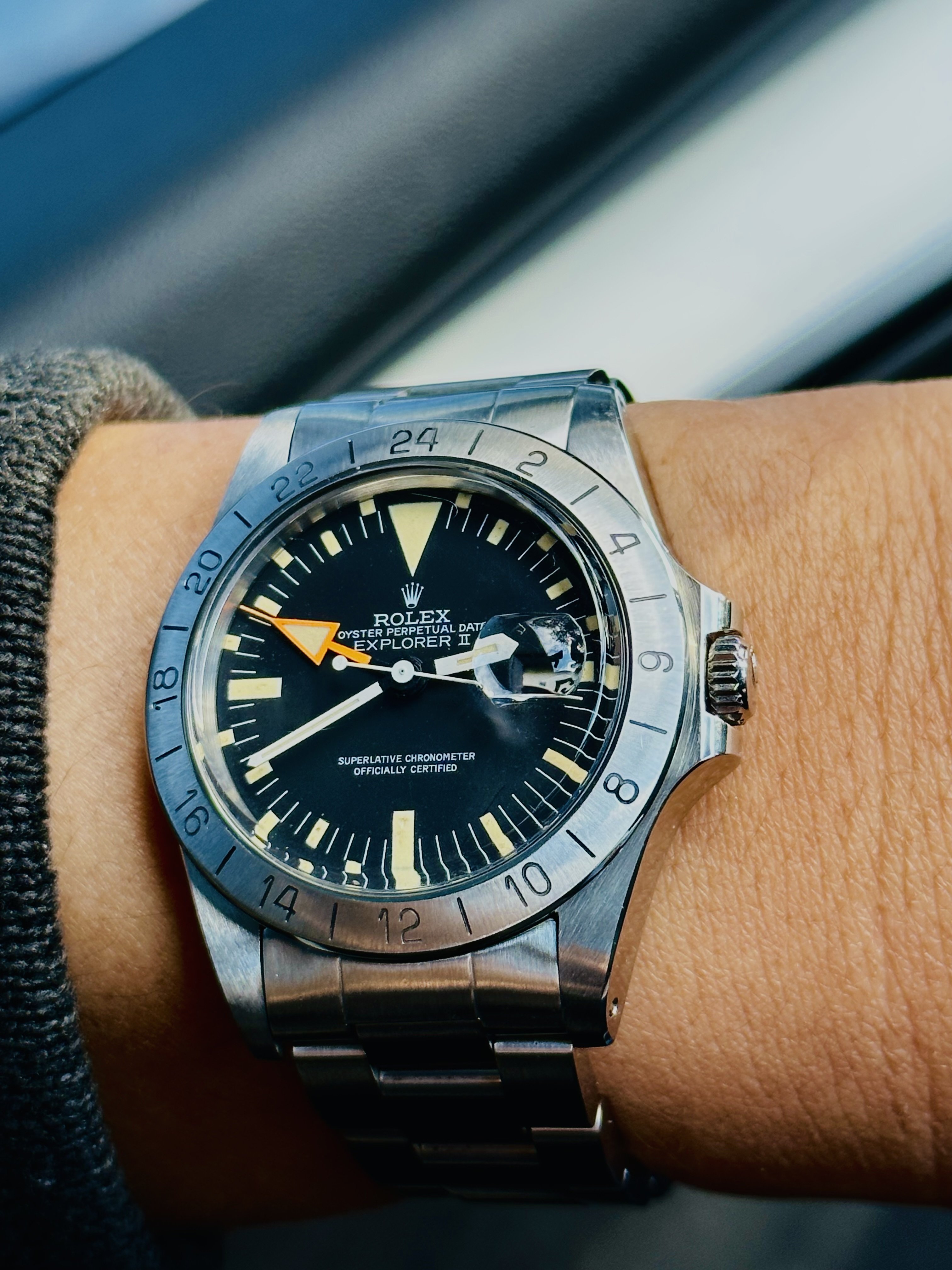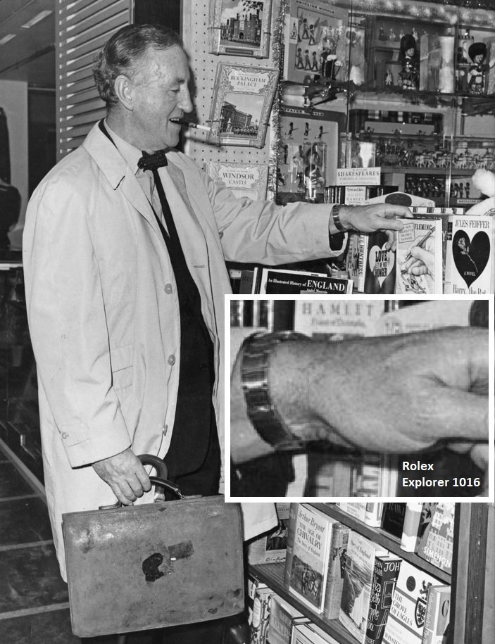 Note Fleming wore his Rolex Explorer 1016 wrist watch on a 7206 steel bracelet. The Rolex Explorer was the watch Fleming described in the James Bond novels and after his death, the watch resurfaced in 1981. During the “Fleming 100th anniversary” exhibition, this Rolex Explorer 1016, case number 596851 was on display at the Imperial War Museum from May 2008 to March 2009.