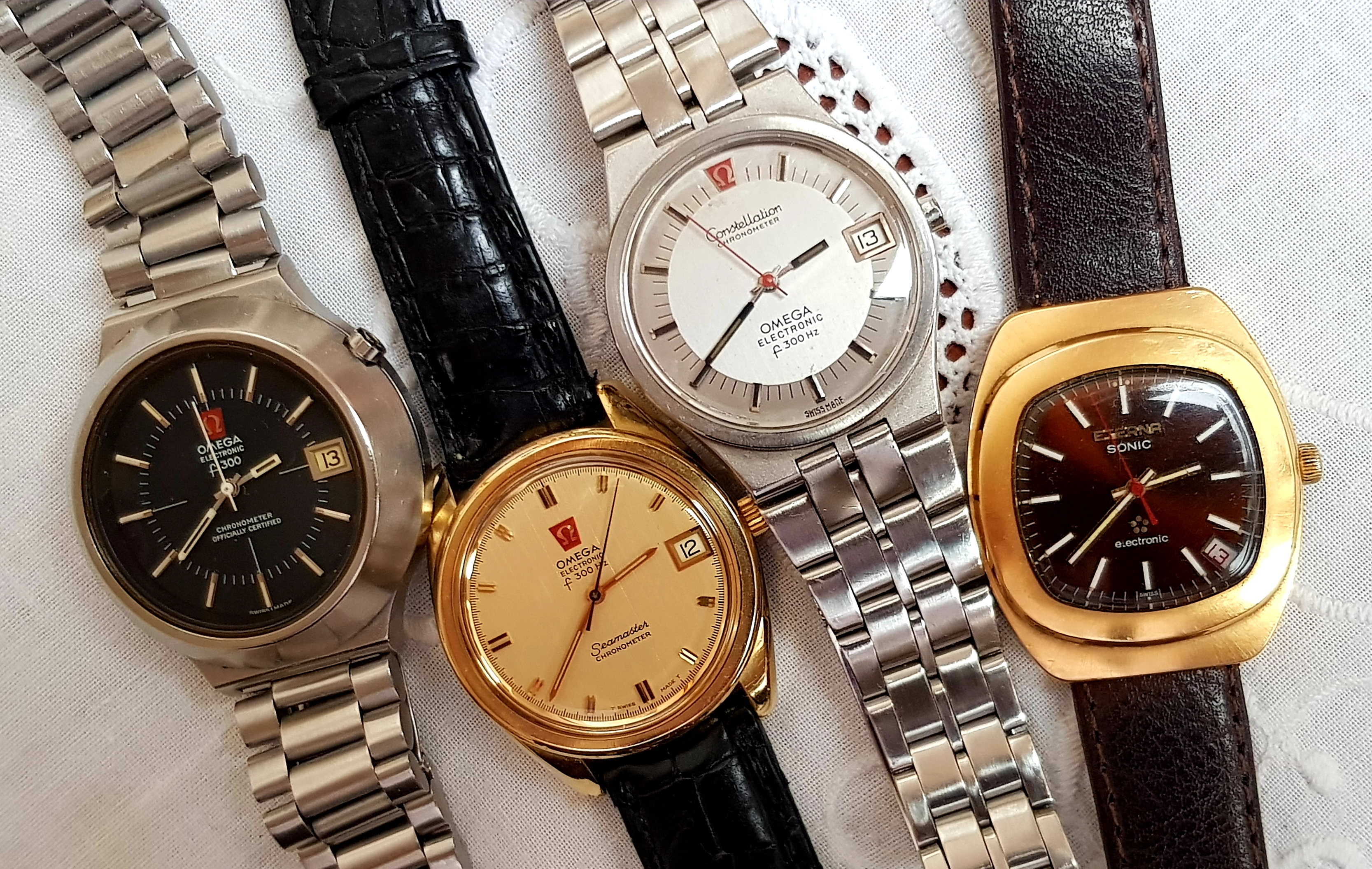 Hummers? Got ‘em. All you see here plus an Omega F300, and one Accutron in sick bay at the moment. One of these in the case is actually a Bulova quartz 955Q model, and the Bulova Computron LED is quartz, not a hummer. Front row left, a group of Accutron 214 and 218 railroad models with 24-hour Canadian dial. Collection growing by the day.