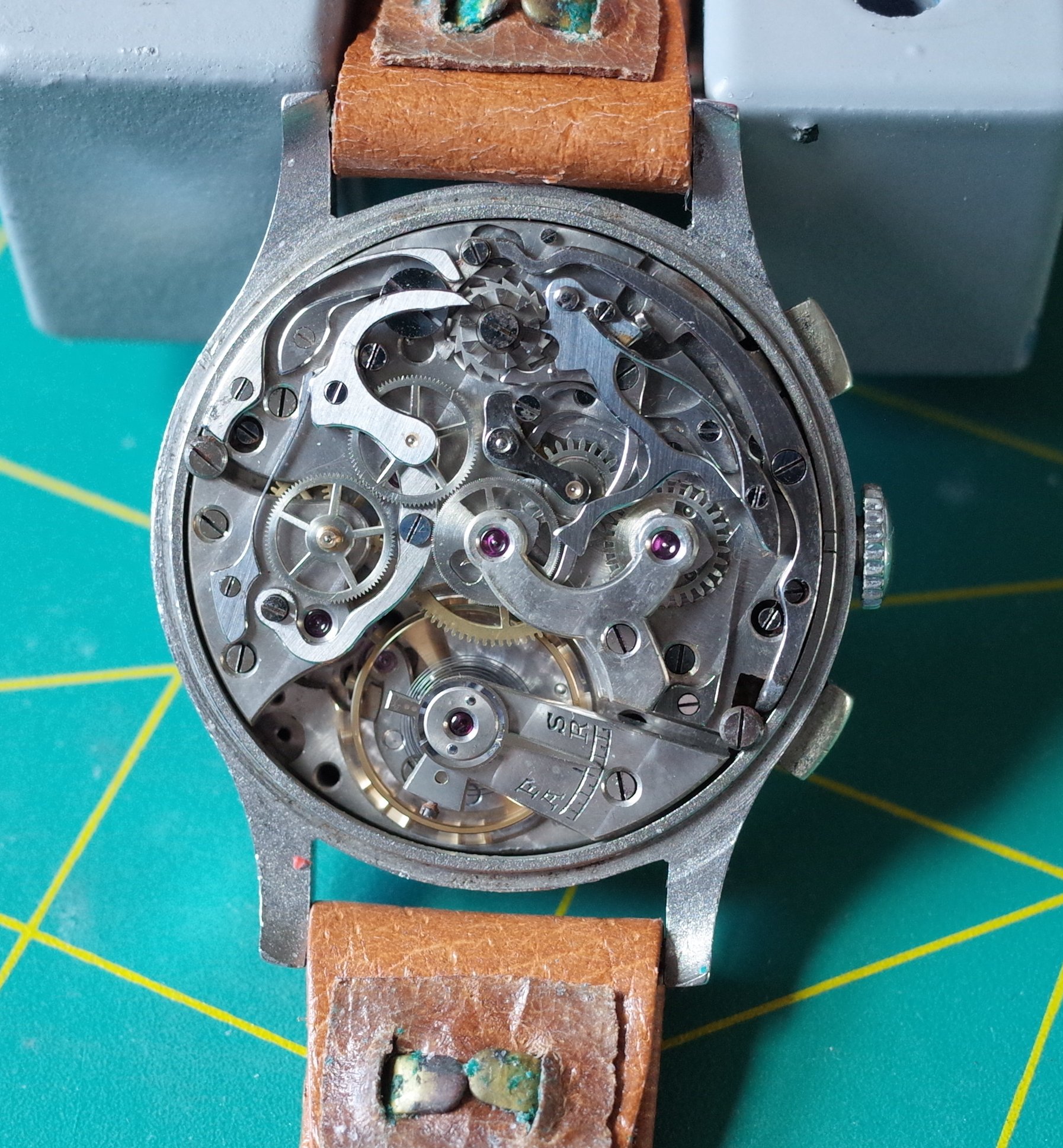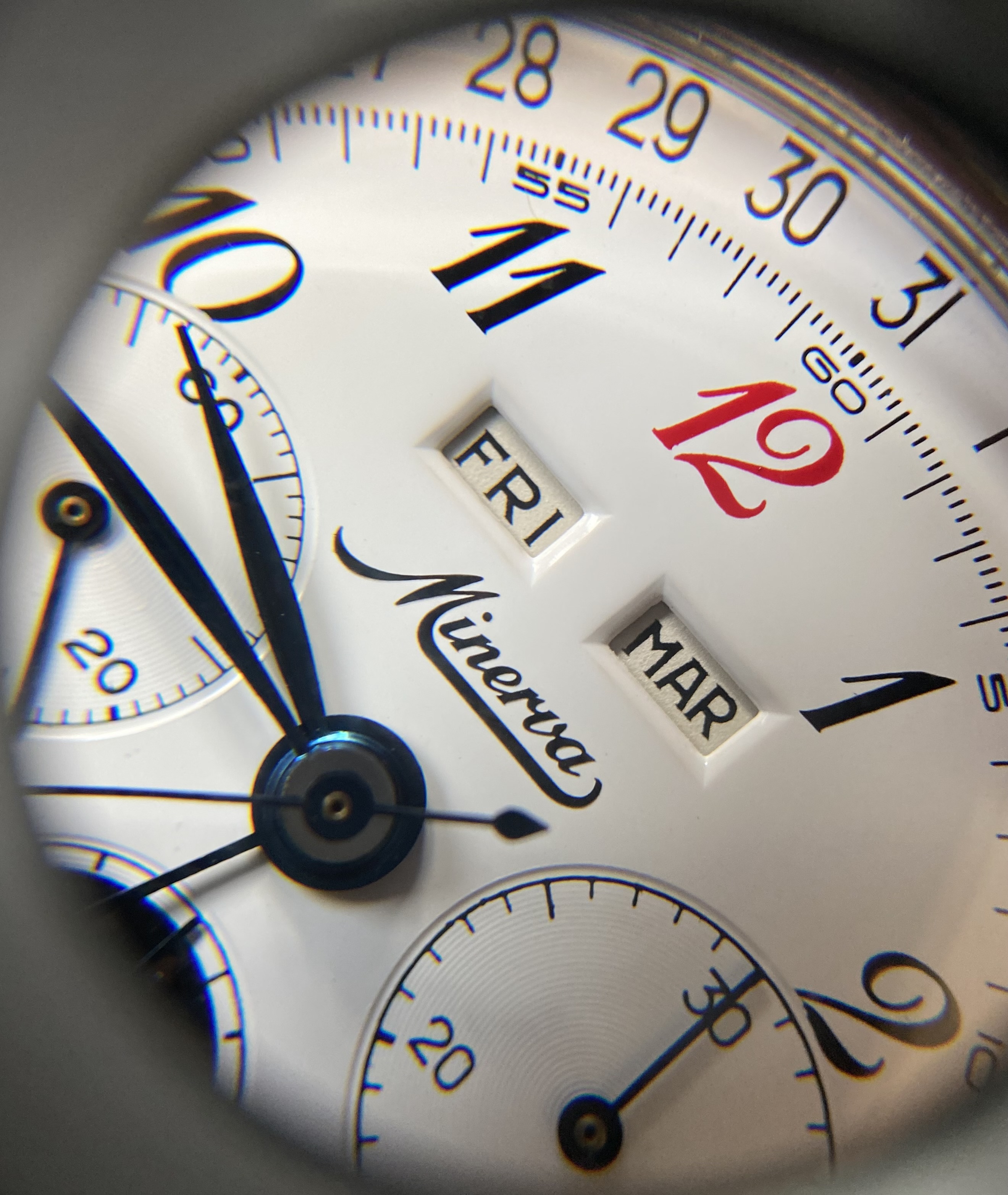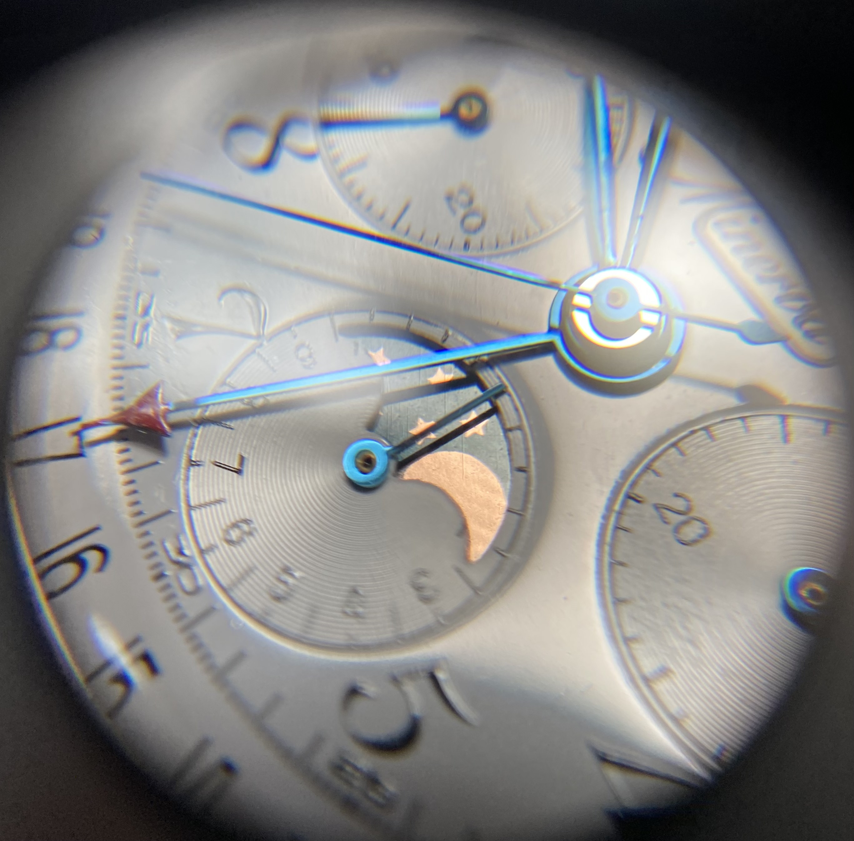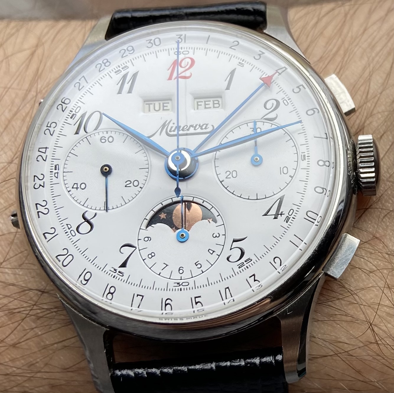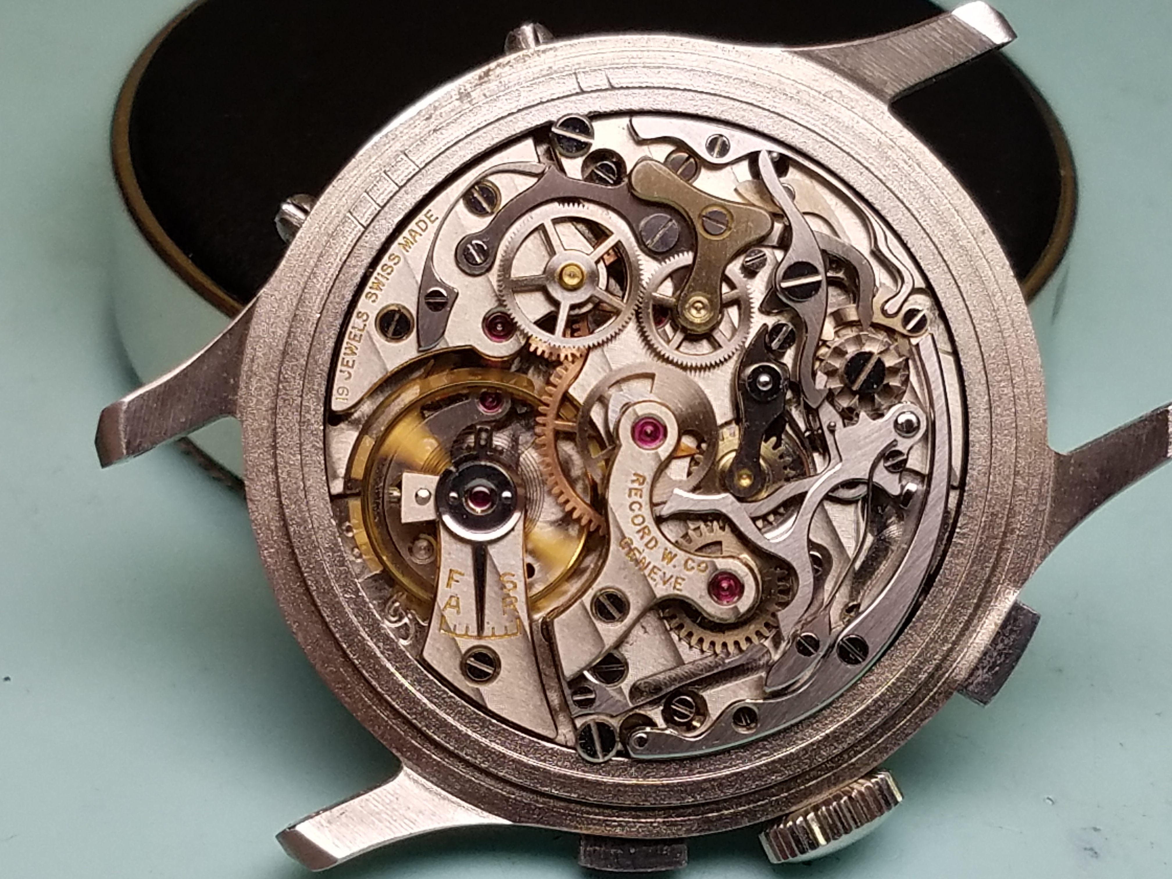 Mine is a Valjoux 88 (72C with the moonphase added). Rumor has it they found some NOS movements and made these in the 80s-90s. Not much other info around on mine I'm afraid. My movement is signed by Record which is strange and unfortunate. Oh well. I may start another thread at some point because in doing research I’ve found other Minervas with unsigned or cross signed movements.