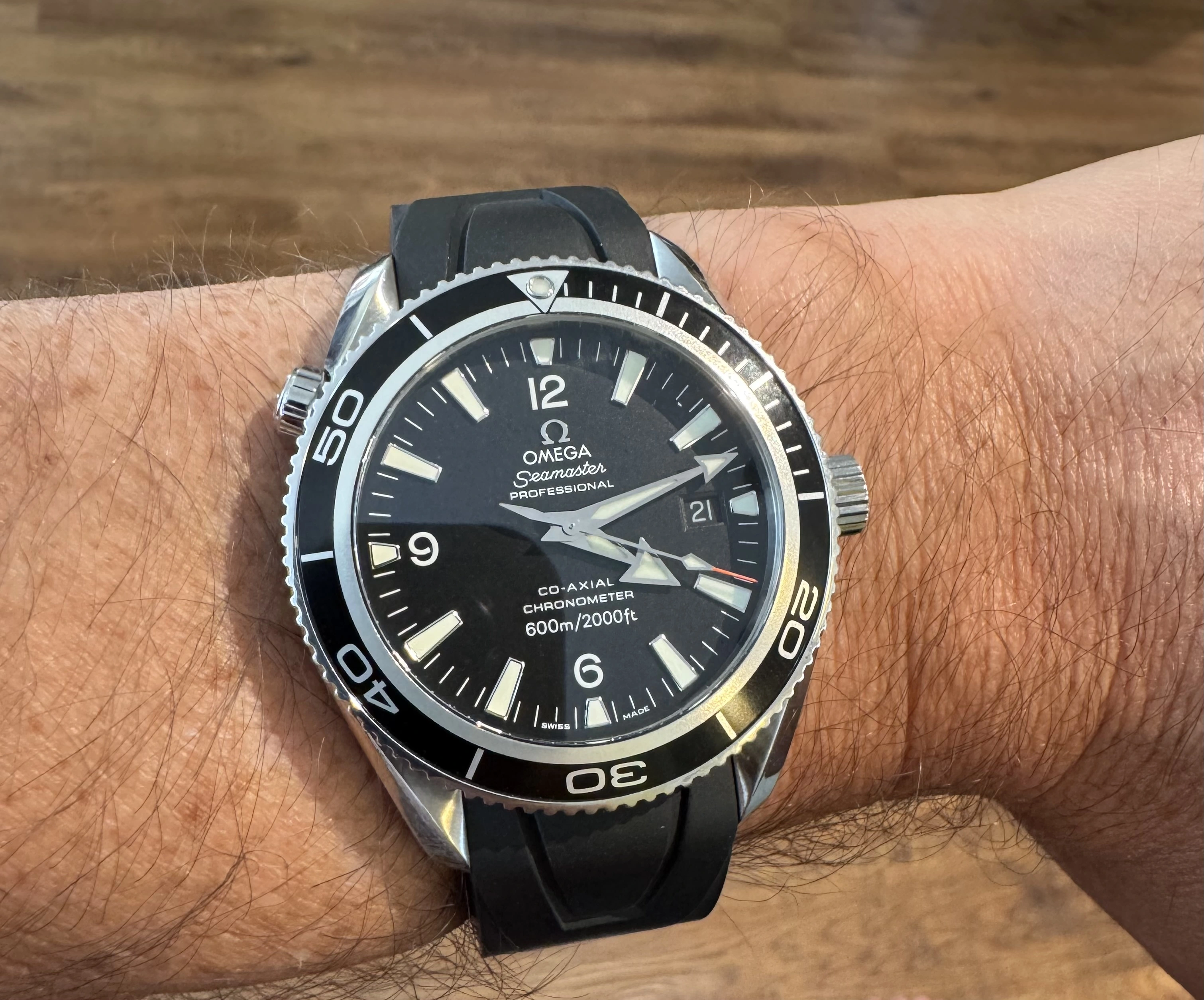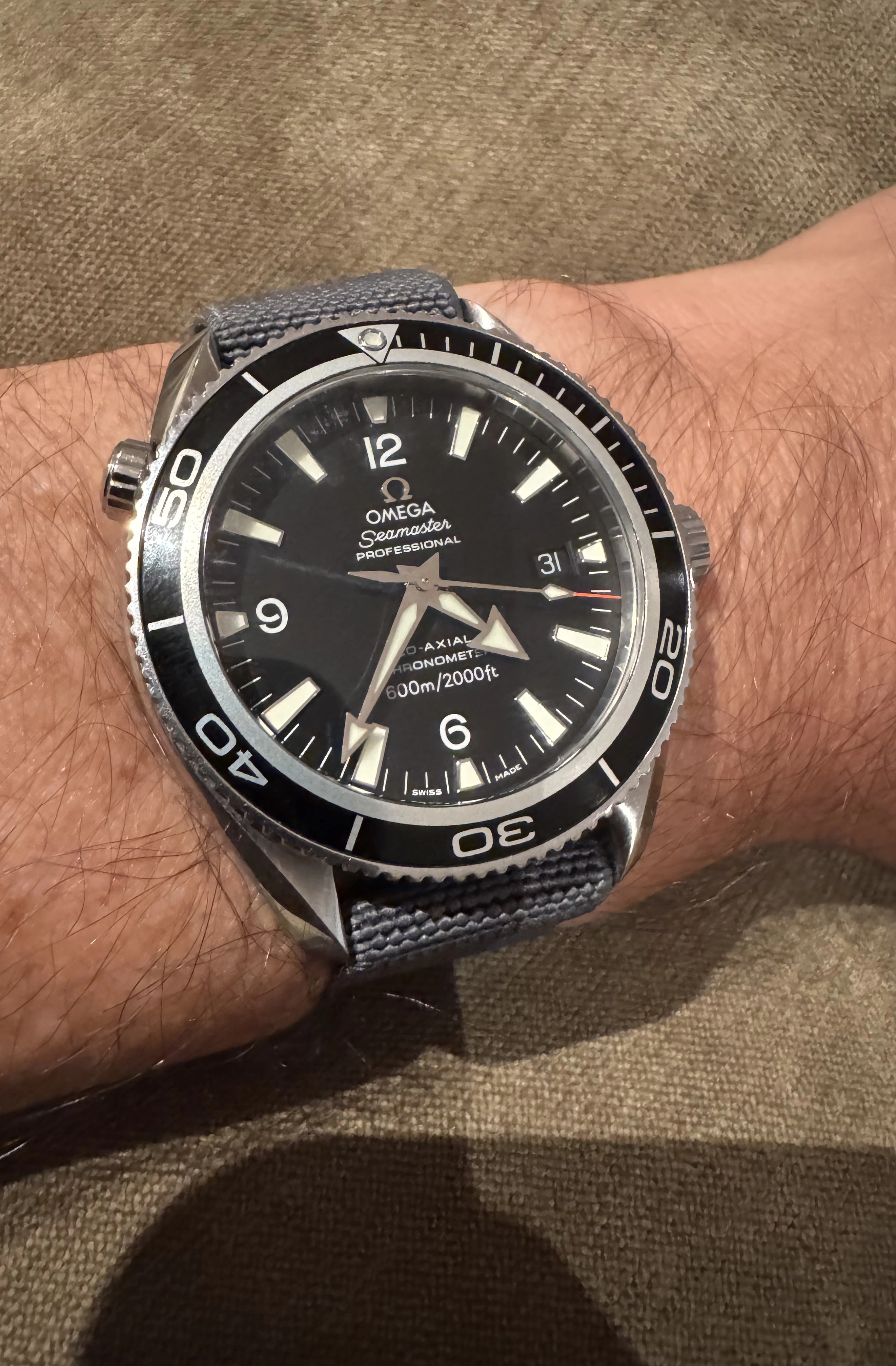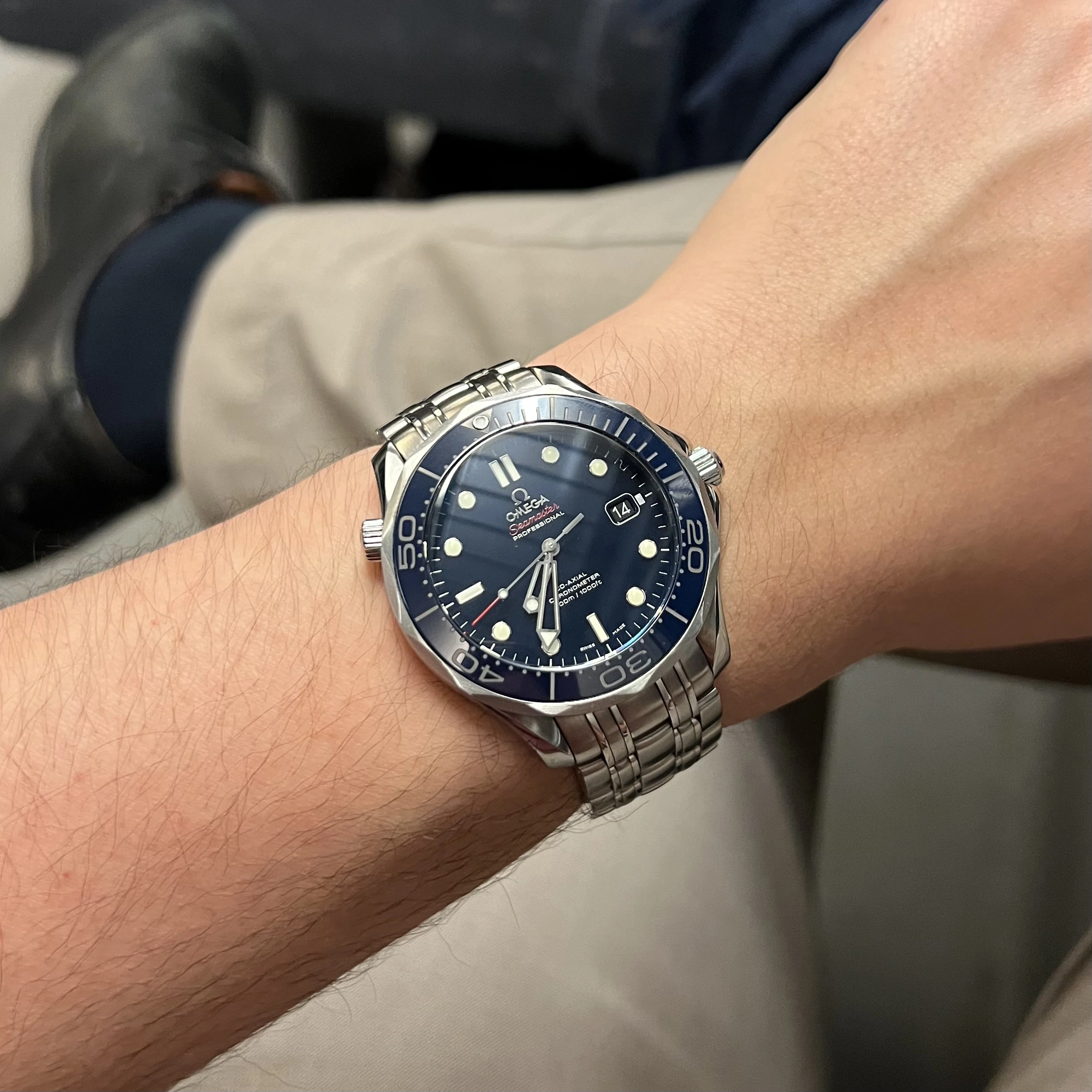 Thanks so much. Mine is the smaller 42mm version, the 2201.50. I believe Daniel Craig wore the larger 45.5mm version in his first outing as Bond in Casino Royale, on the rubber strap. Feel free to correct me if I'm wrong, as I'm no film expert lol. This is from my remembrance back when trying these on at the Boutique around 2006/2007. My wrist being 6.75", I couldn't quite pull off the larger version.