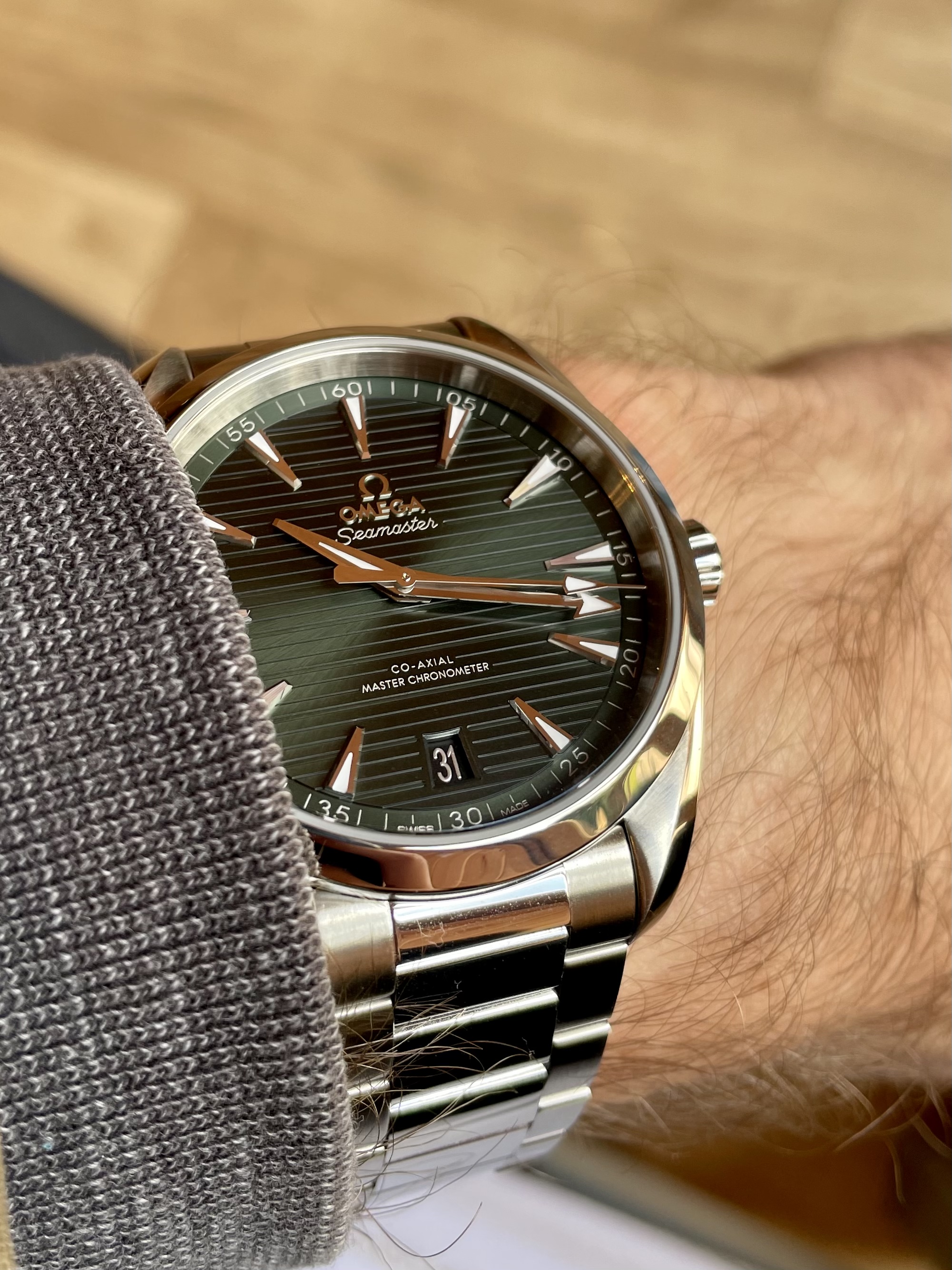 Posts 38 Likes 57 magicbadger 路May 1, 2021 Here is my new aqua terra with green dial. I also have the speedmaster 3861 in sapphire. Edit: just realised I need to set the date