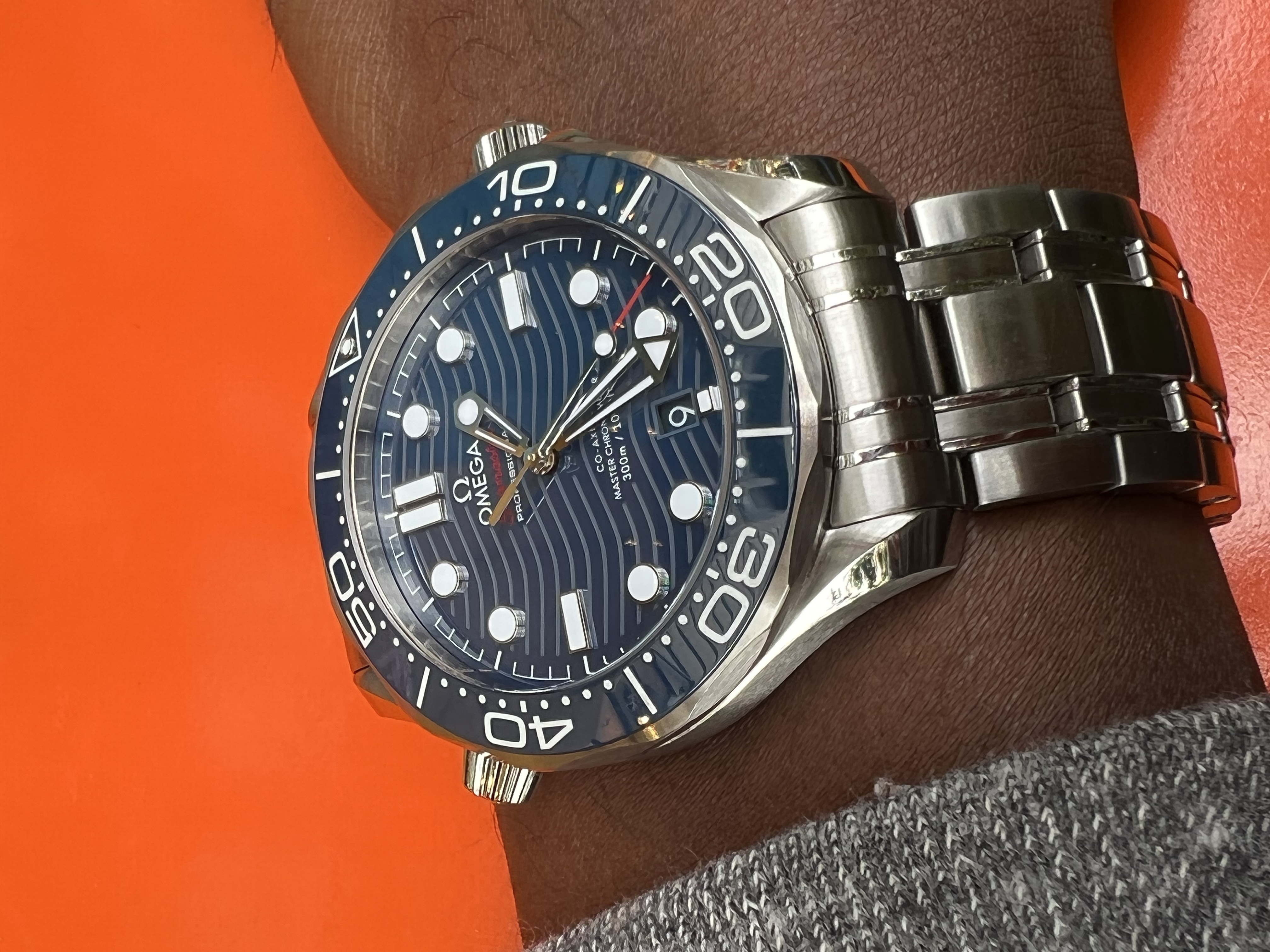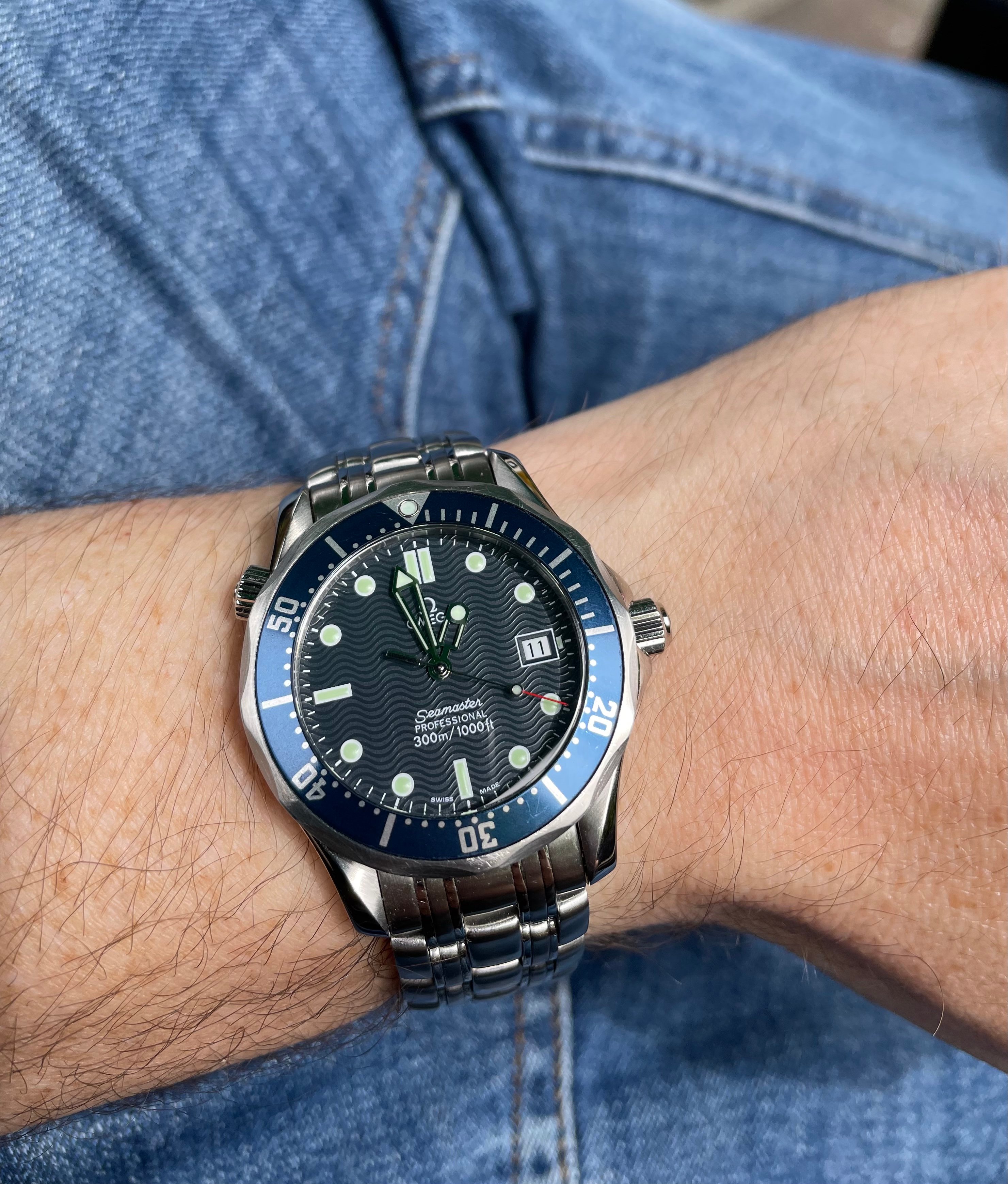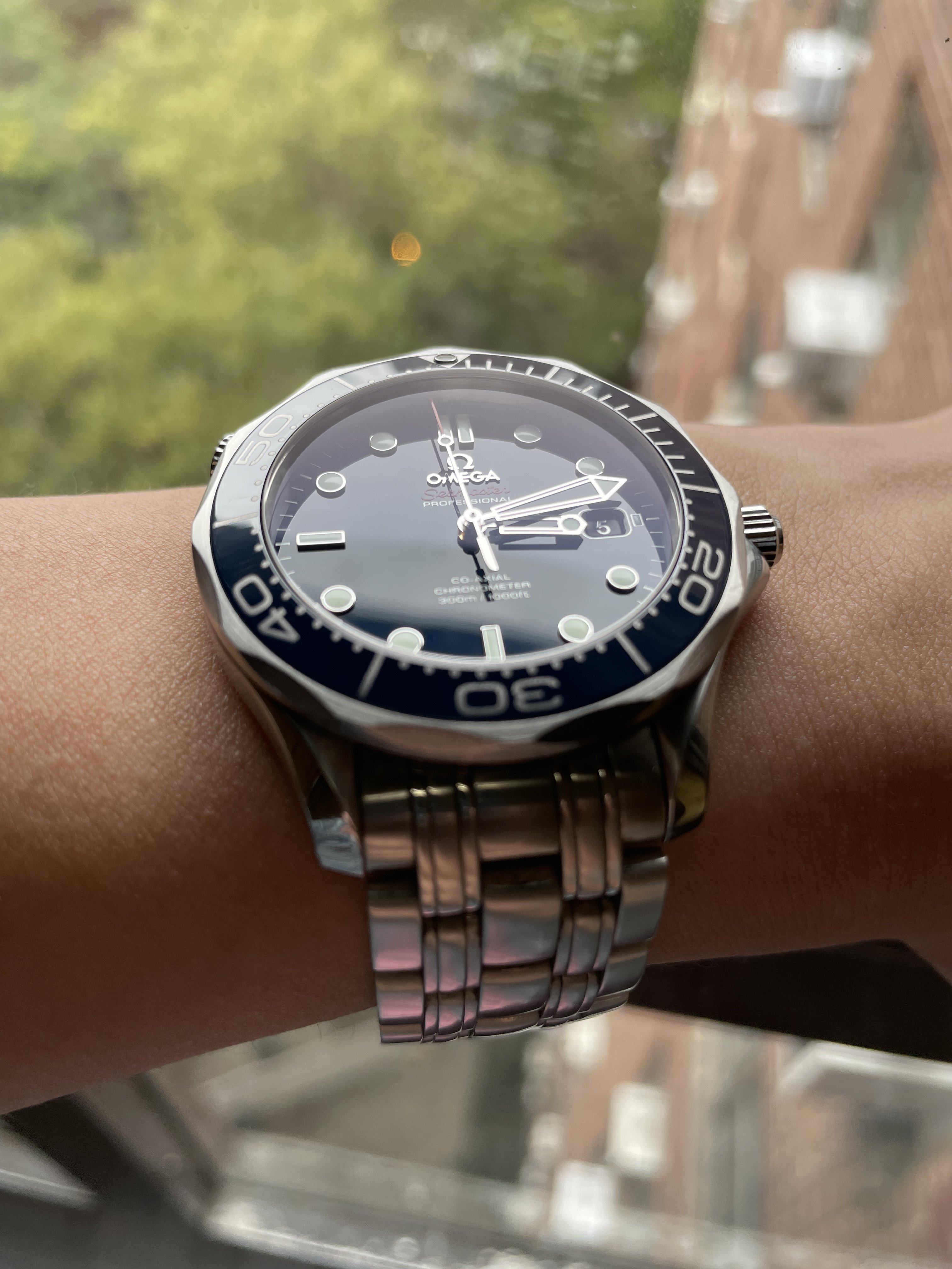 Probably my favorite version of the Seamaster Professional! The Ceramic blue bezel depending on the surrounding gives off different shades of blue or even black as shown in this picture!