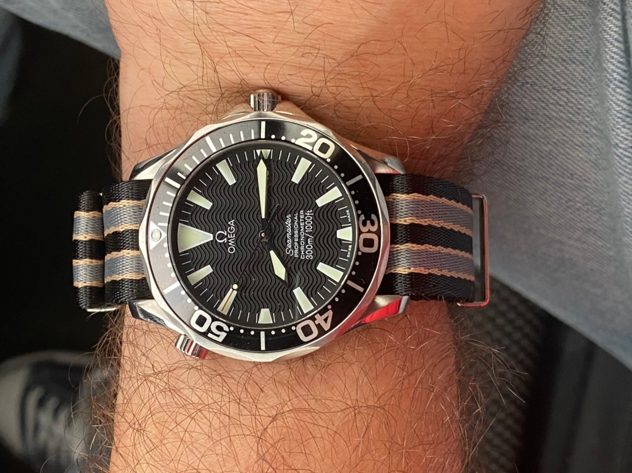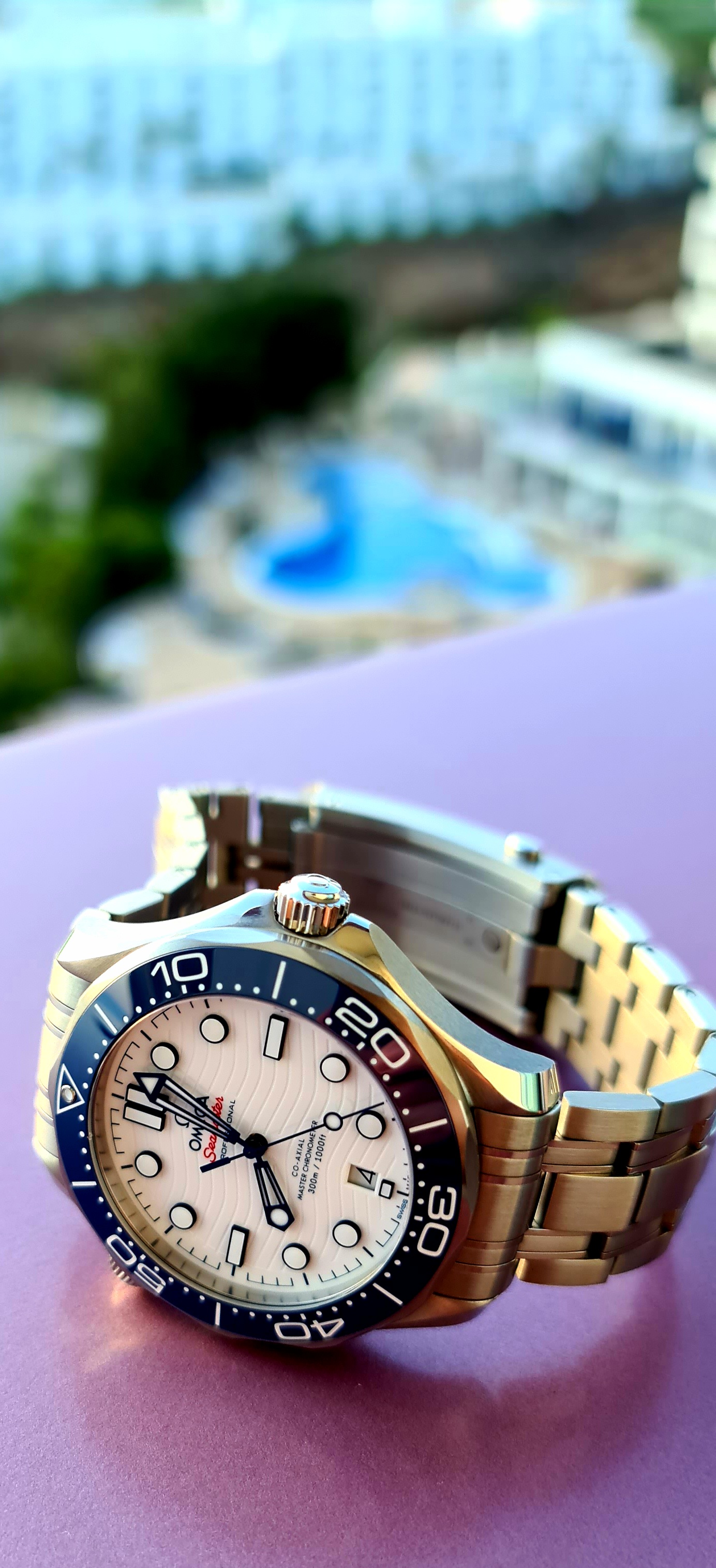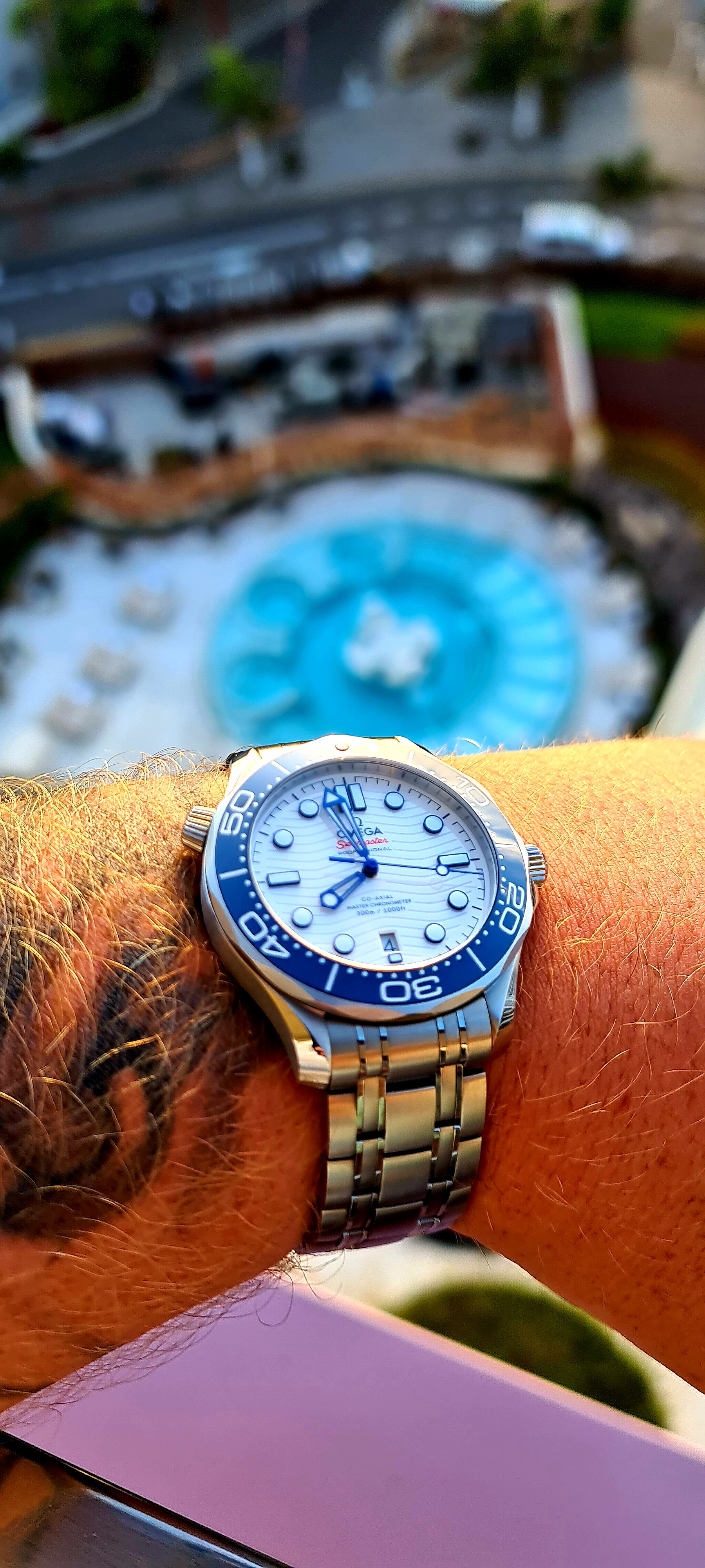 Probably my favorite version of the Seamaster Professional! The Ceramic blue bezel depending on the surrounding gives off different shades of blue or even black as shown in this picture!