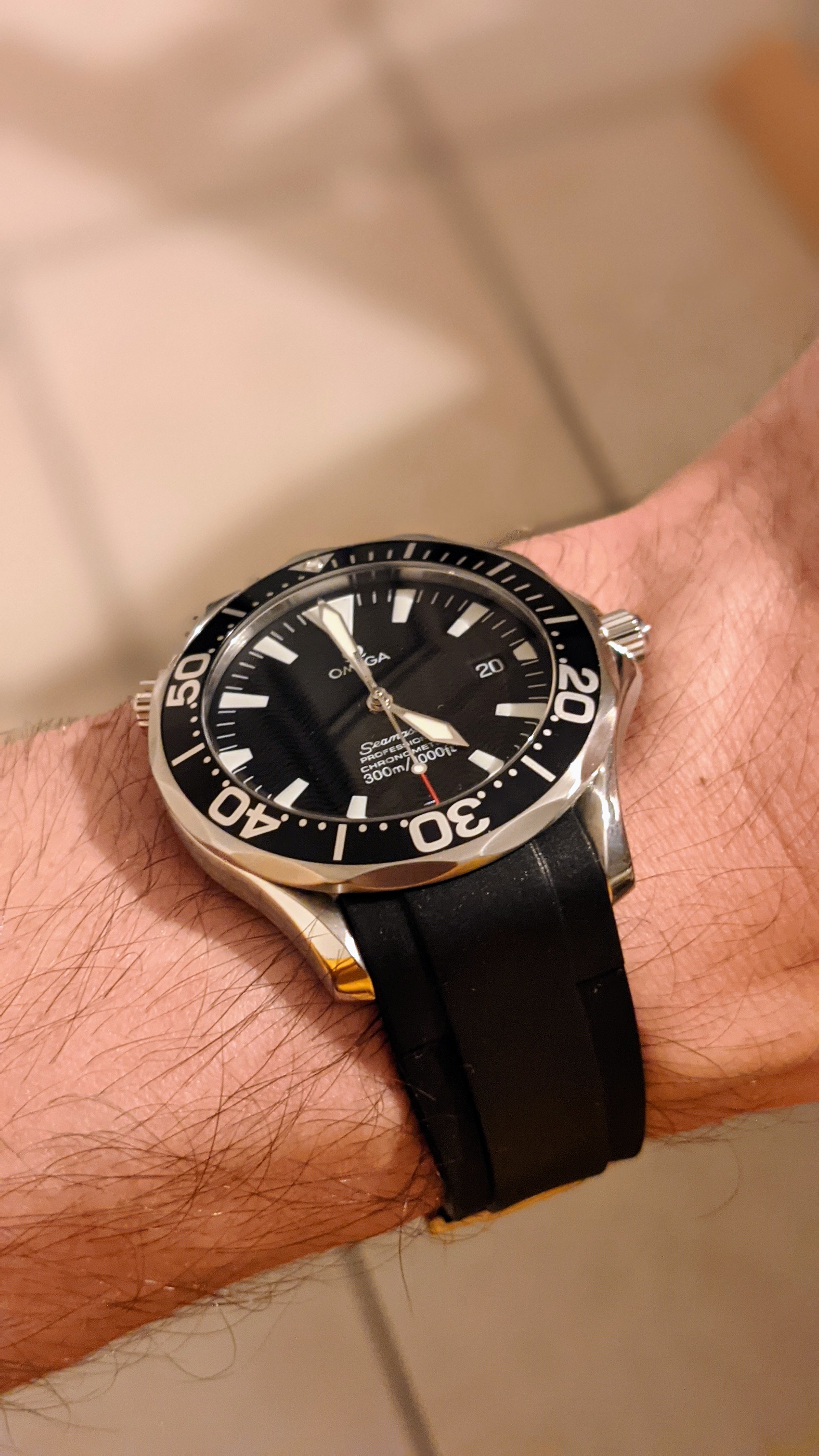 Since buying it last January, I've been wearing it on the strap because it's just so comfortable so I can't say for sure how comfortable the bracelet is. But knowing Omega and having other watches from them on the bracelet, I'm pretty sure the bracelet is just as comfortable, I'm just not a fan of how this SM300MC looks on the bracelet. I feel it was made for this nato strap and looks awesome with it. The bracelet is actually still wrapped in plastic, in the box and not even sized for my wrist 馃榿