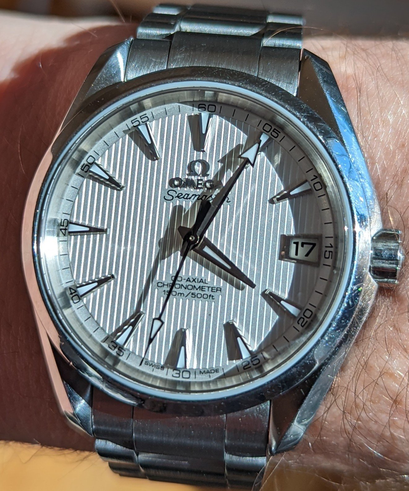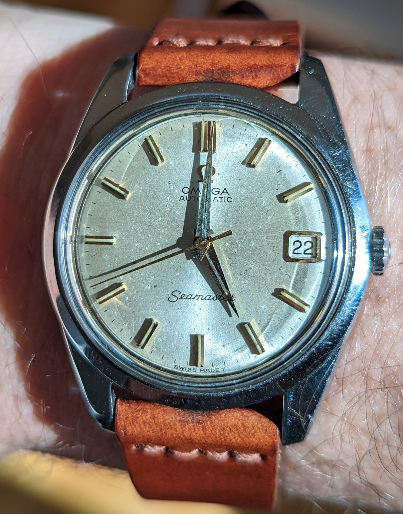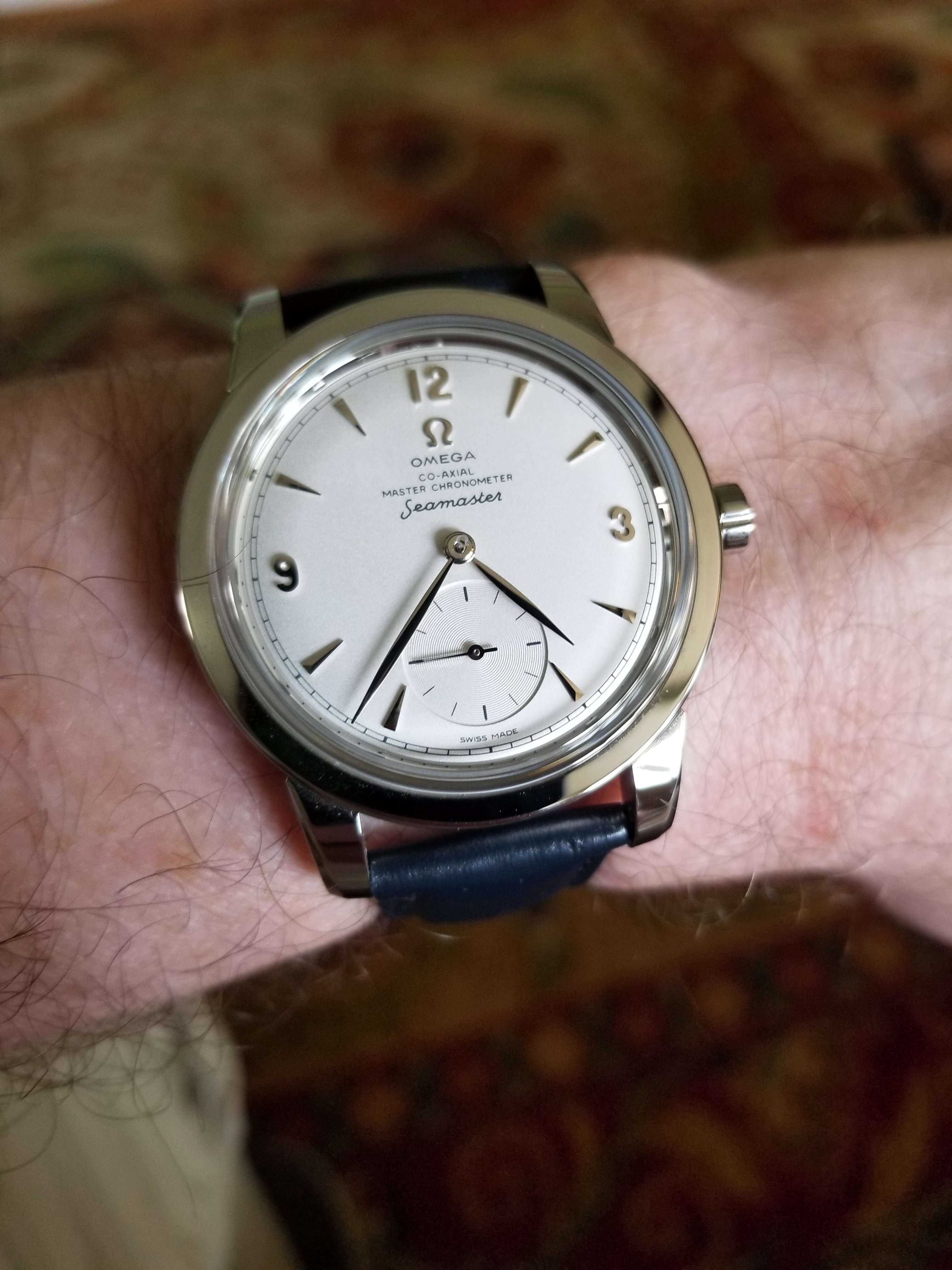 Stopped by our local Boutique today - changes are afoot. They're closing for a few months to move to a new location in the mall, and our technician is sadly departing for Europe. But we had a nice visit, and he helped me with a strap change on my 1948. Nice look for the spring.