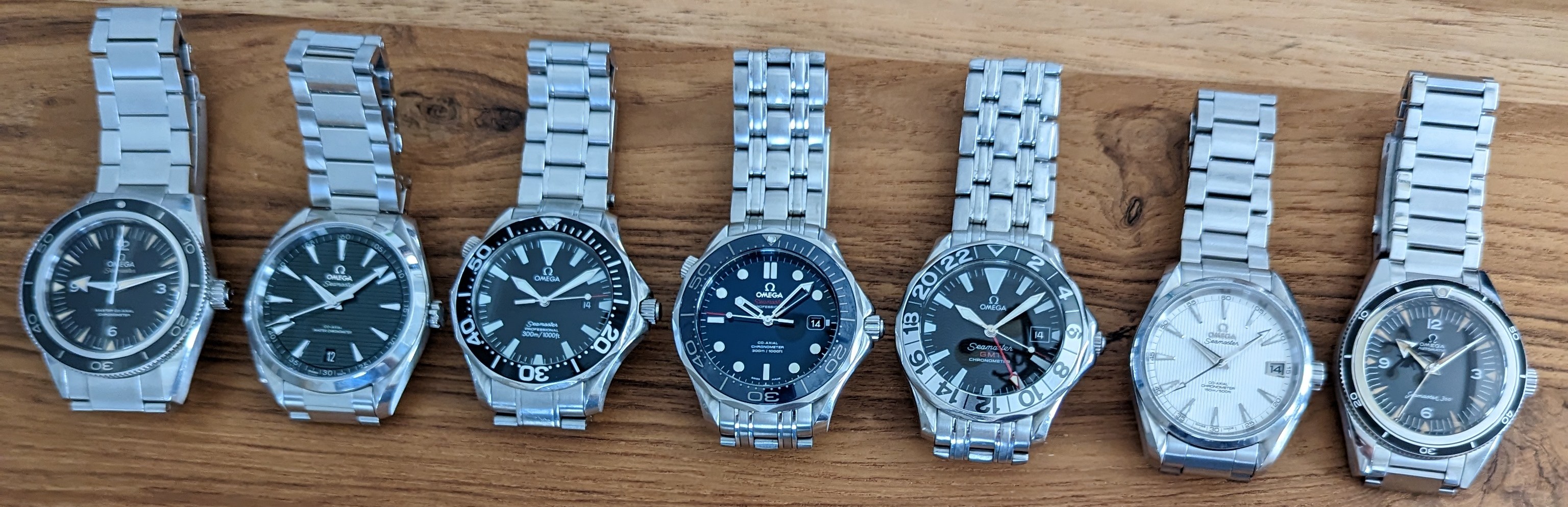 Here are mine. My first was the Trilogy, followed by the NTTD, White 300m, Blue glossy dial 300m from late 2018, a 2006 2264.50 and most recently a 2004 2531.80.