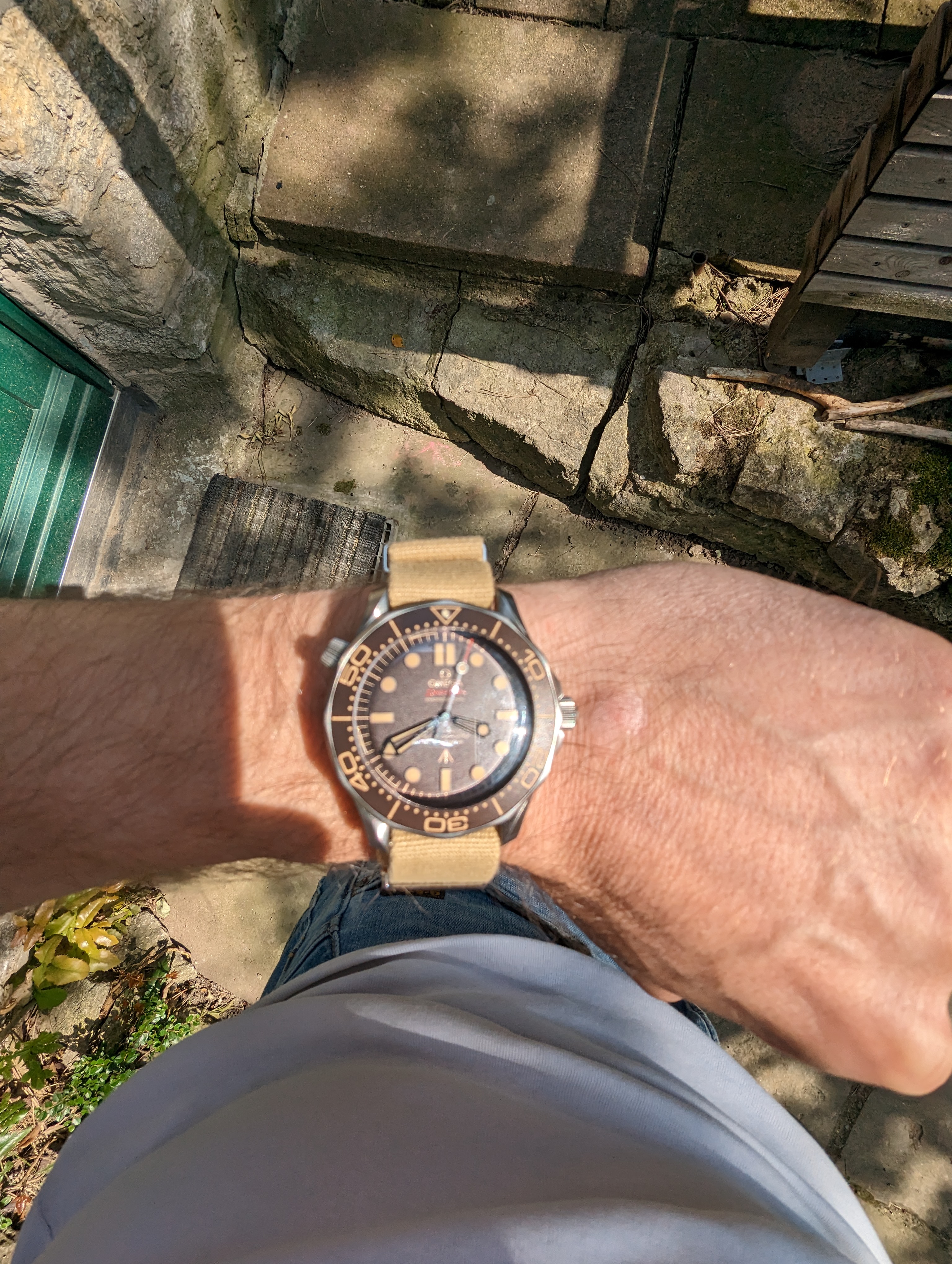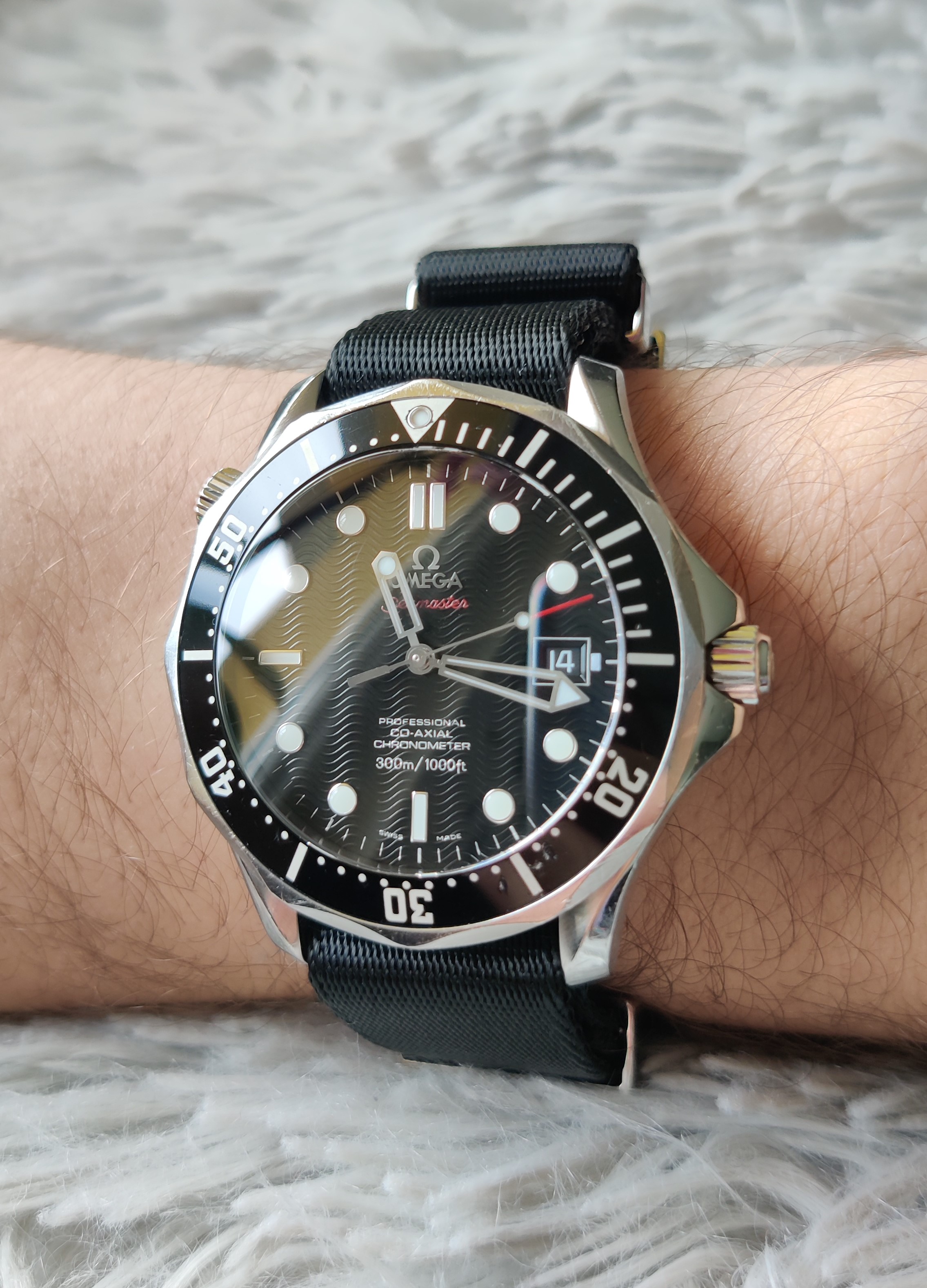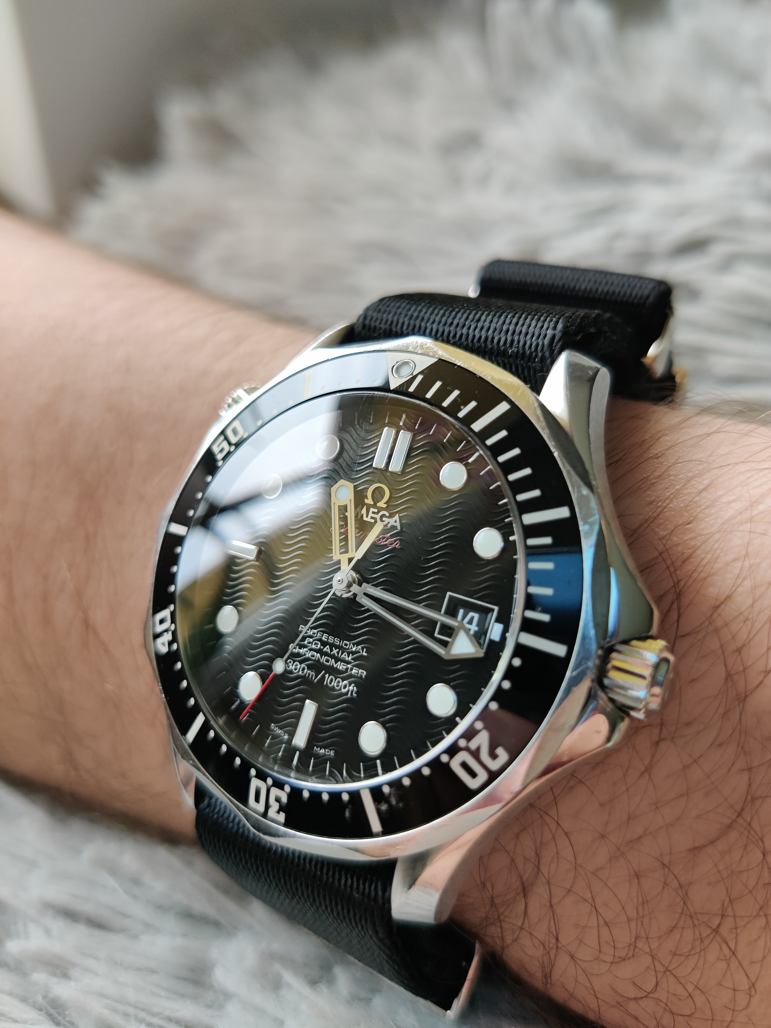 To be real, forgot i got it on hand for many years, it was "just a watch" but it witnessed all important events in my life and recently love to it rekindled because put a bracelet to change all pins and brackets (it failed before) so needed another strap. Using now official black nylon NATO and it feels like new watch. Completly different look. Black on black on black, looks amazing, great change and feeling of additional security (two points of failure) also feels good.