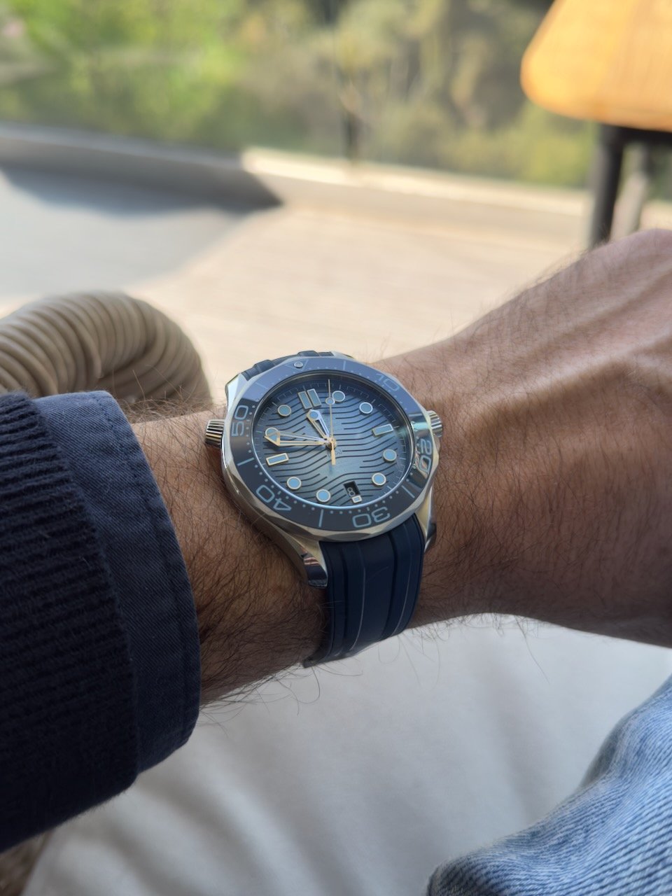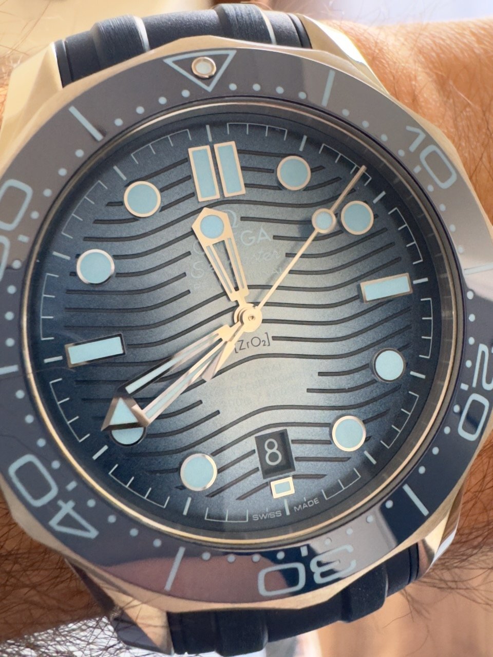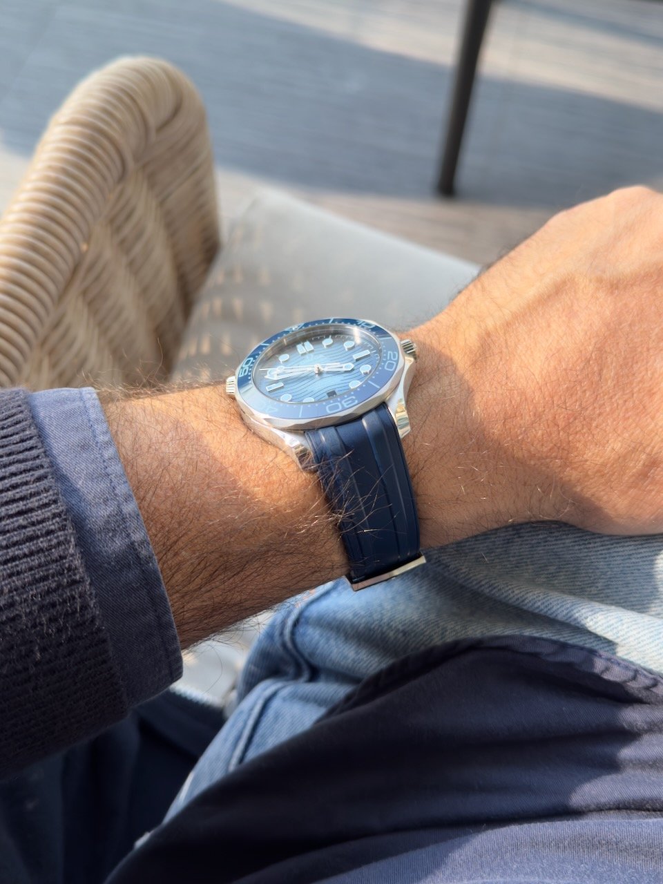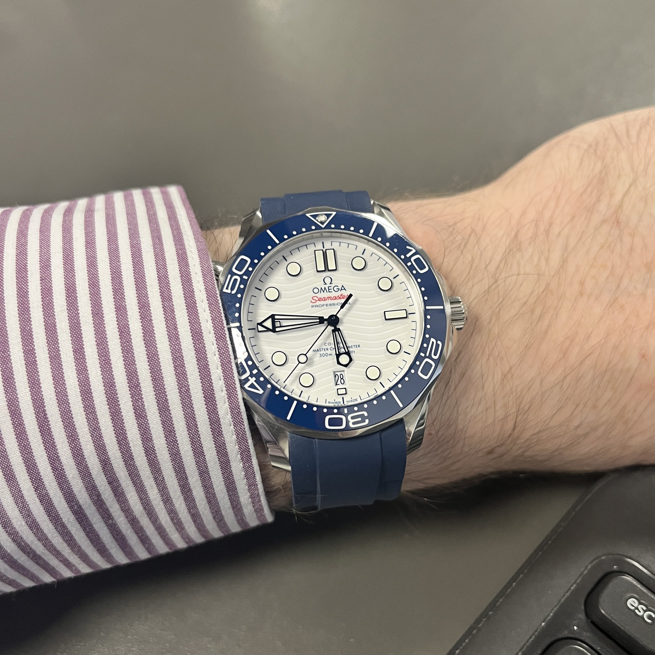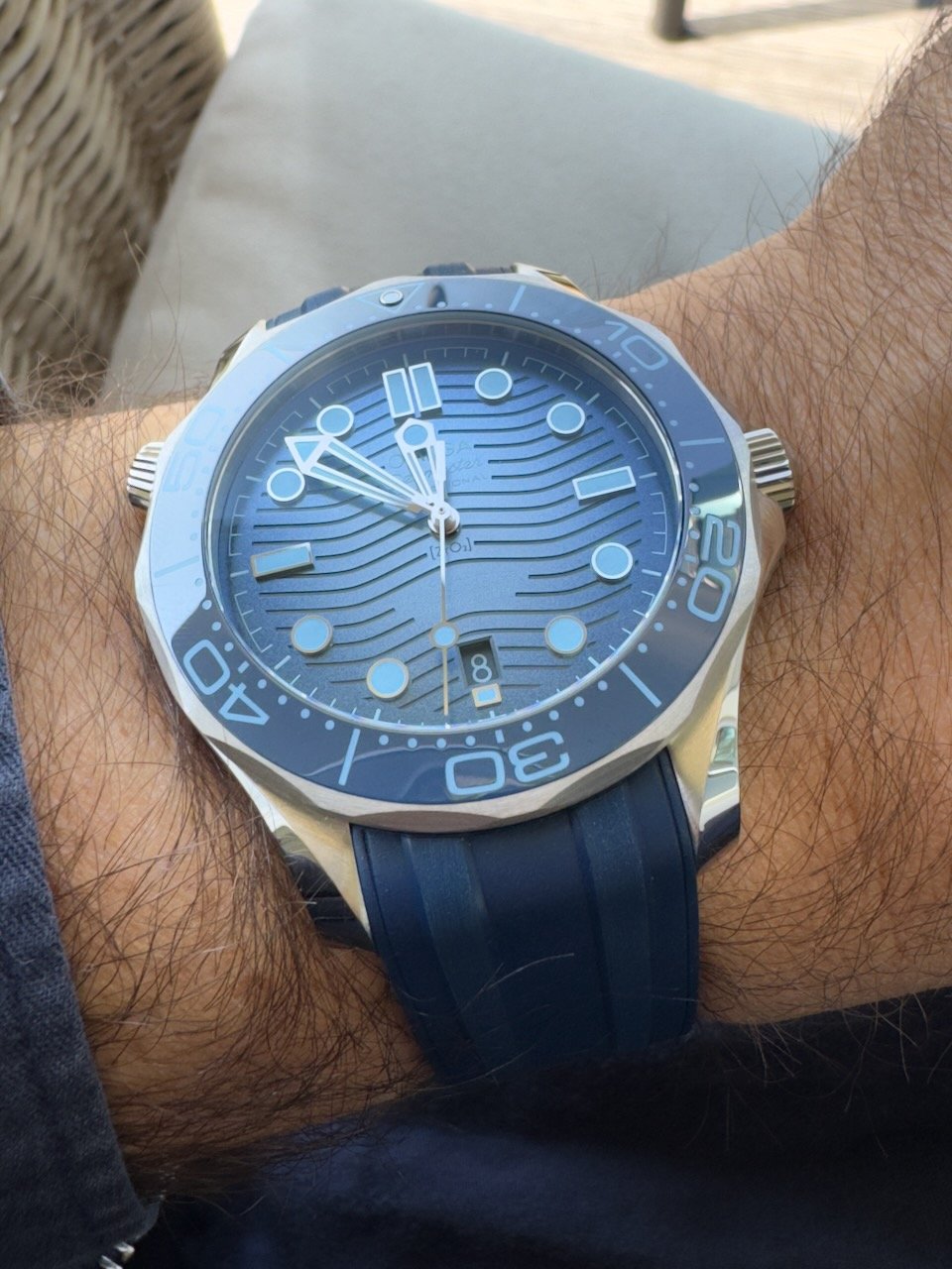 Just got a Seamaster Diver 300M Summer Blue on the rubber strap last week and I'm loving it. This is my first Omega and first post on this forum. A few thoughts and questions after owning this watch for a few days: