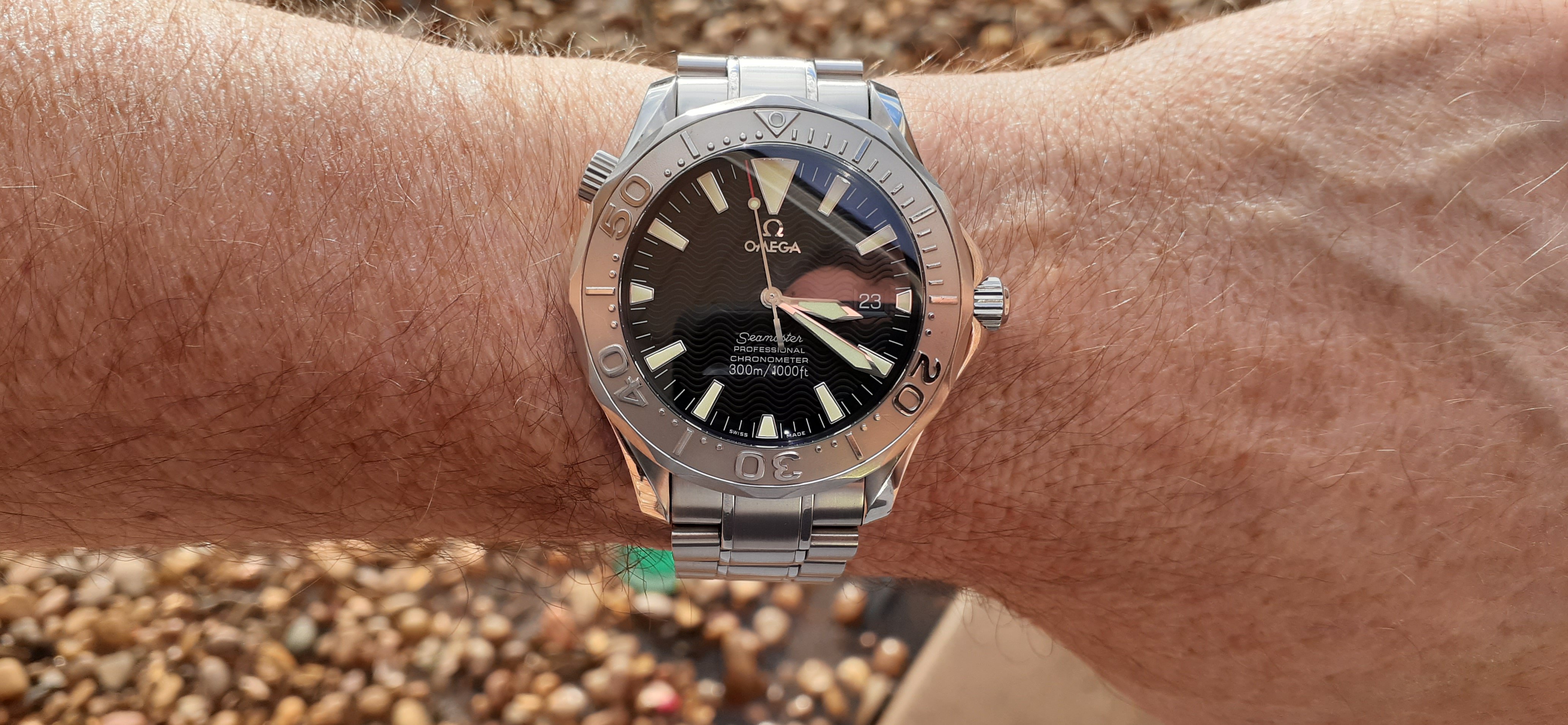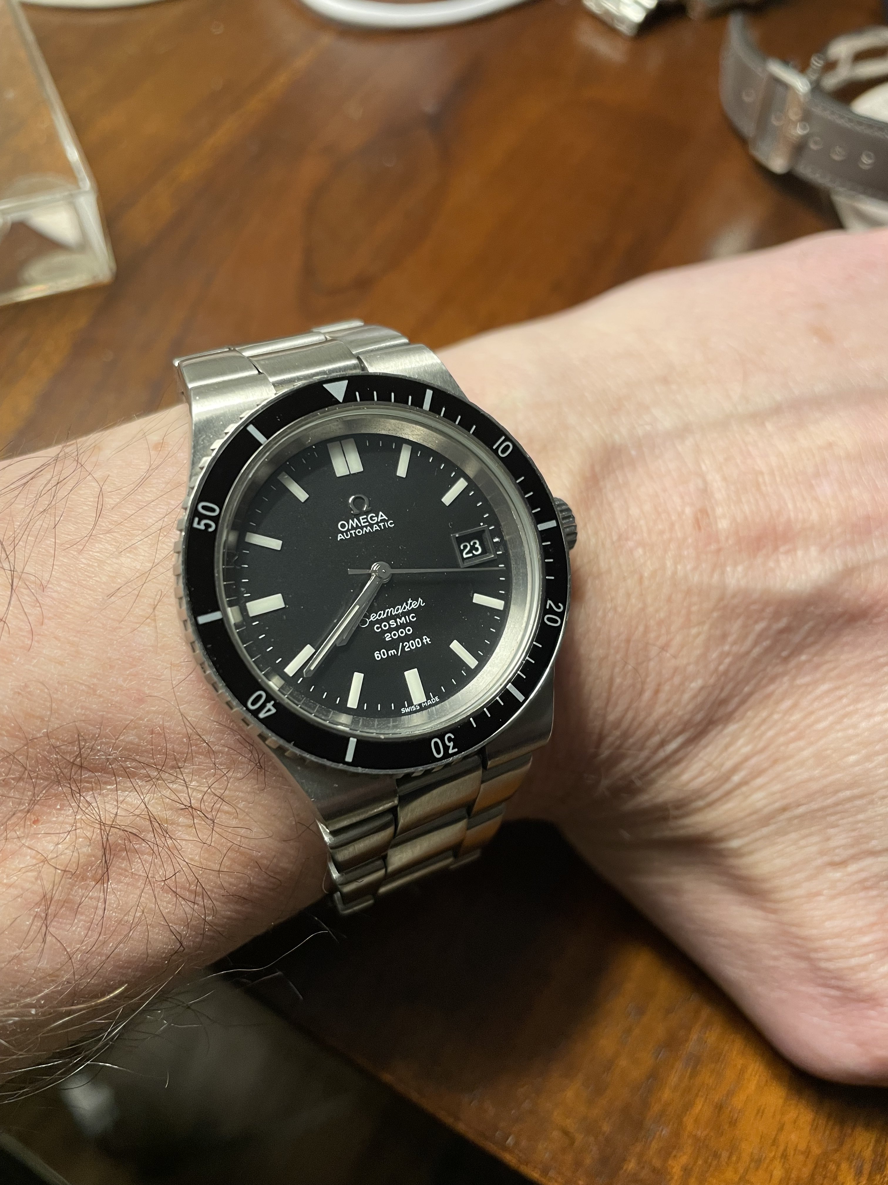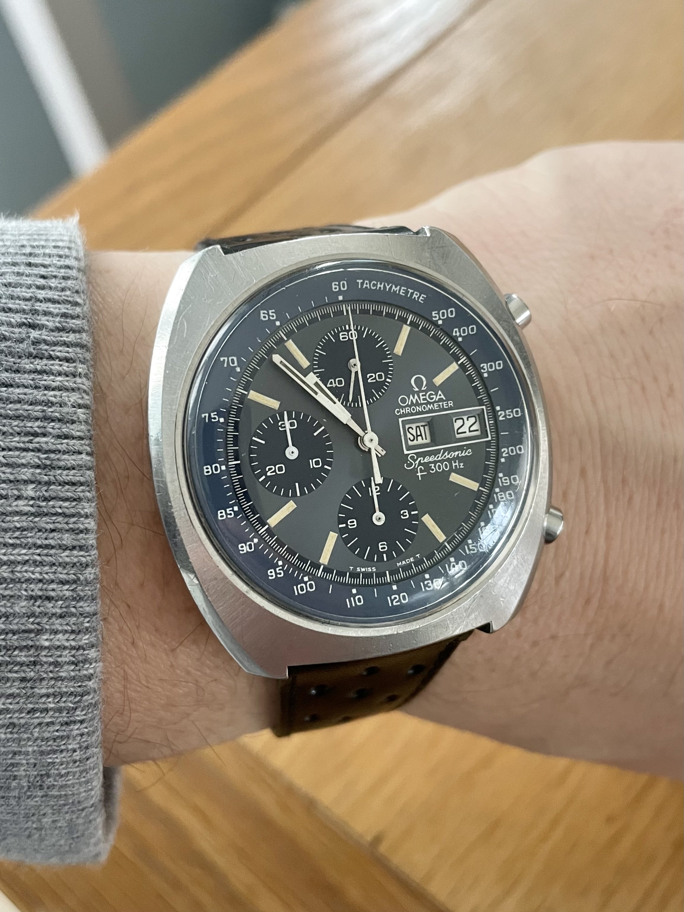 I thought I’d pop this on today for a little wrist time. I’d always wanted one since my brother showed me one of his around 10 years ago. I’m not a massive fan of the lobster case version, but the cushion case is rather nice… only pipped by the unobtainable radial dialled NASA prototype versions, which I still lust over.